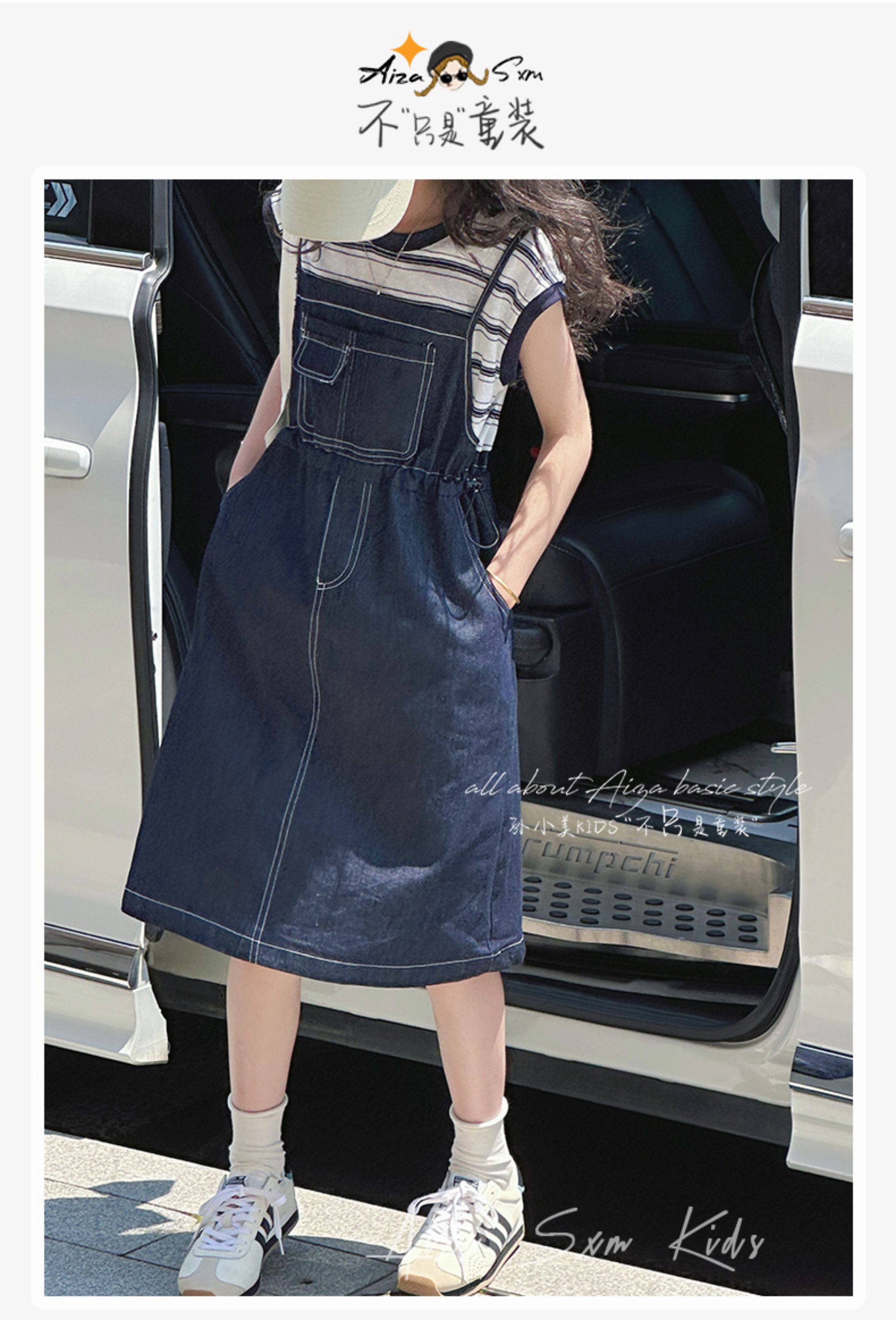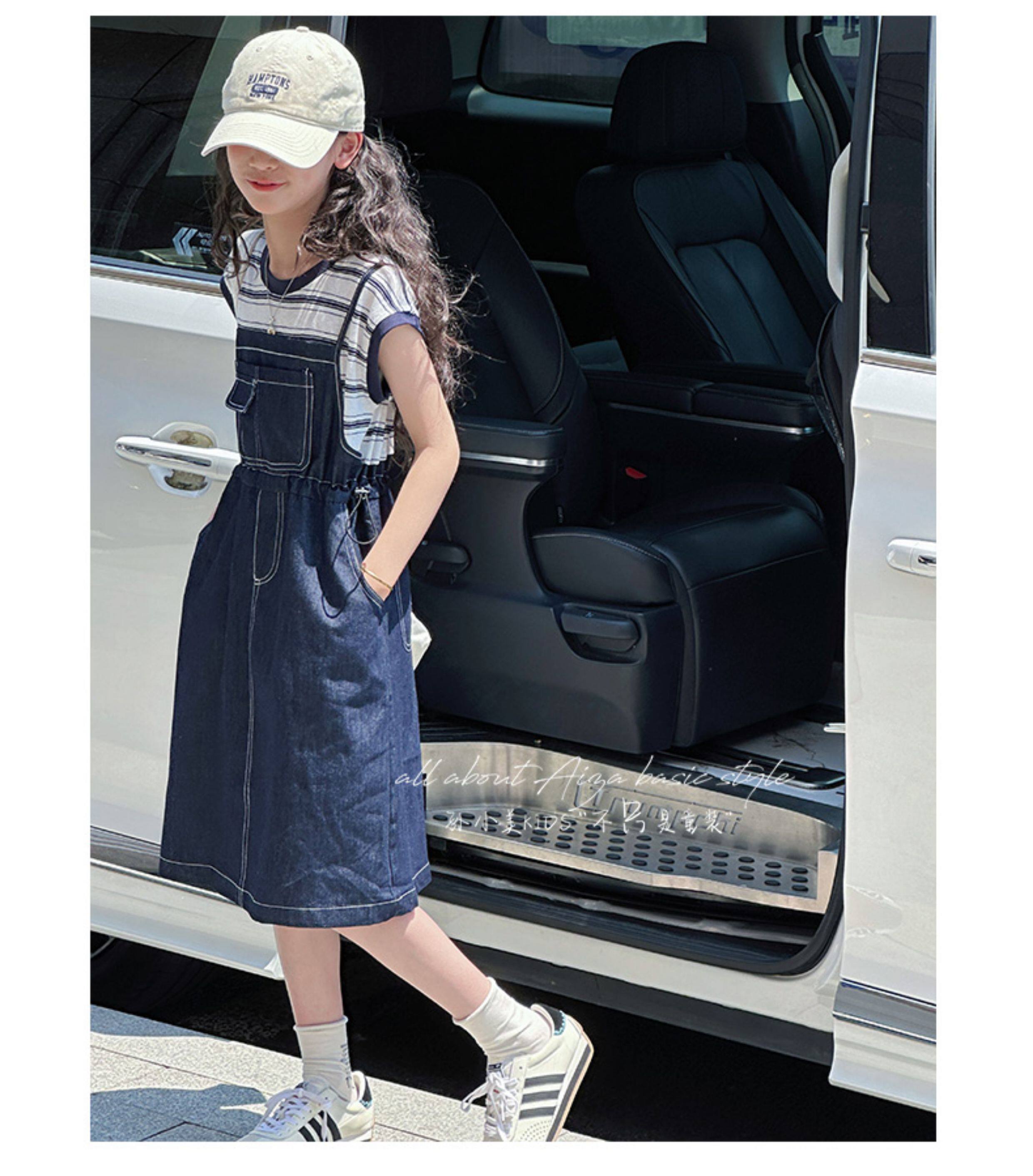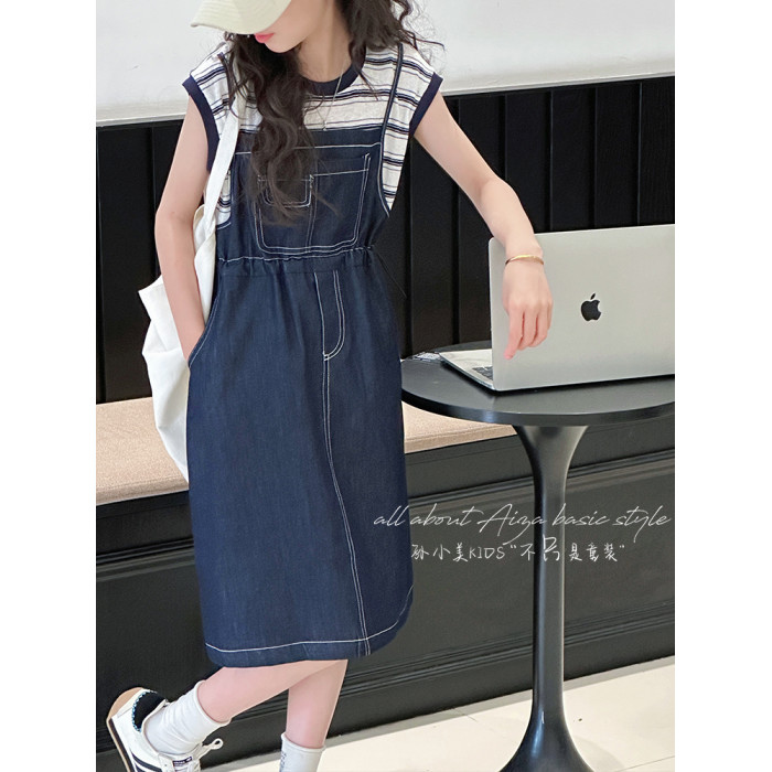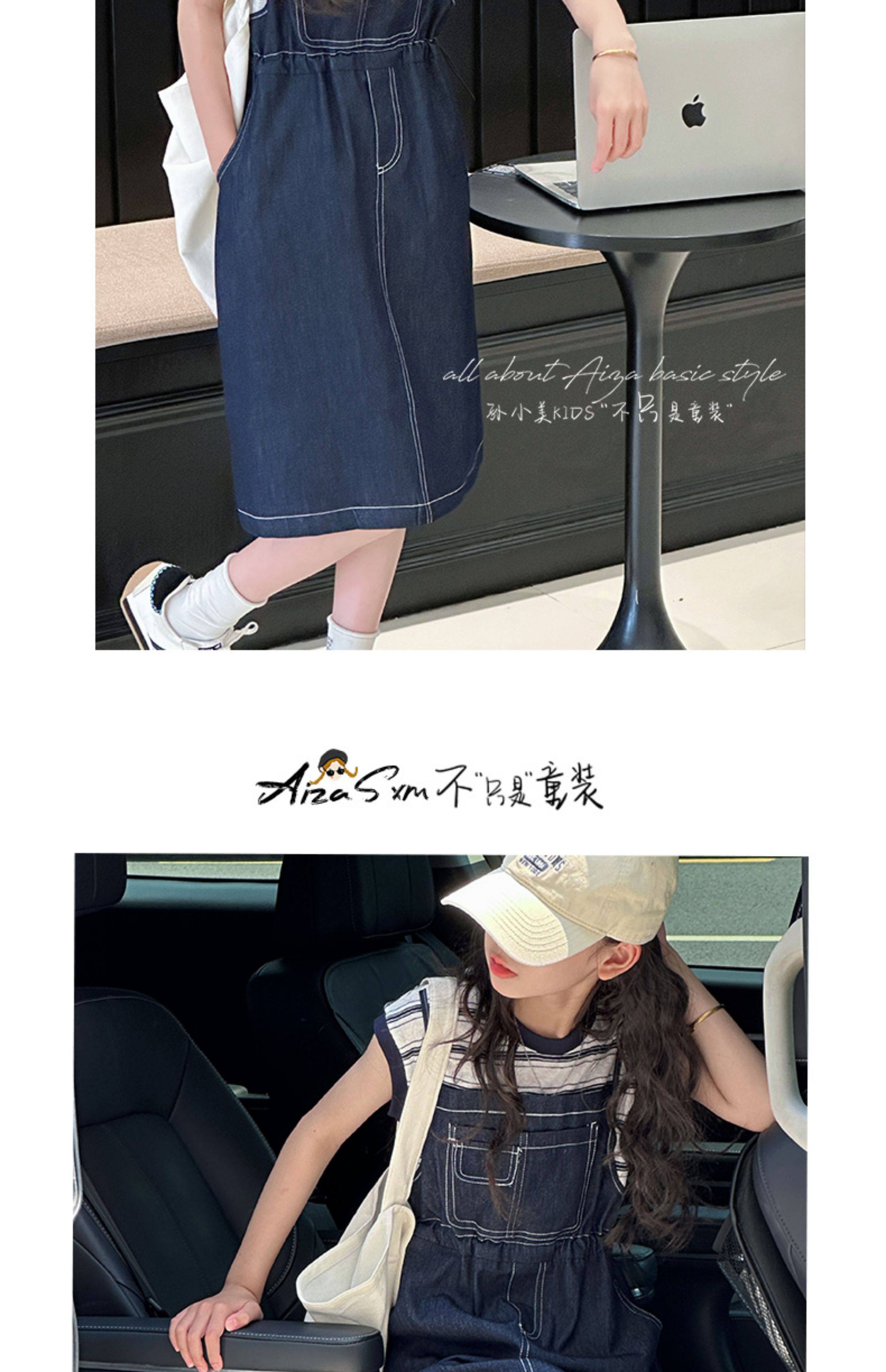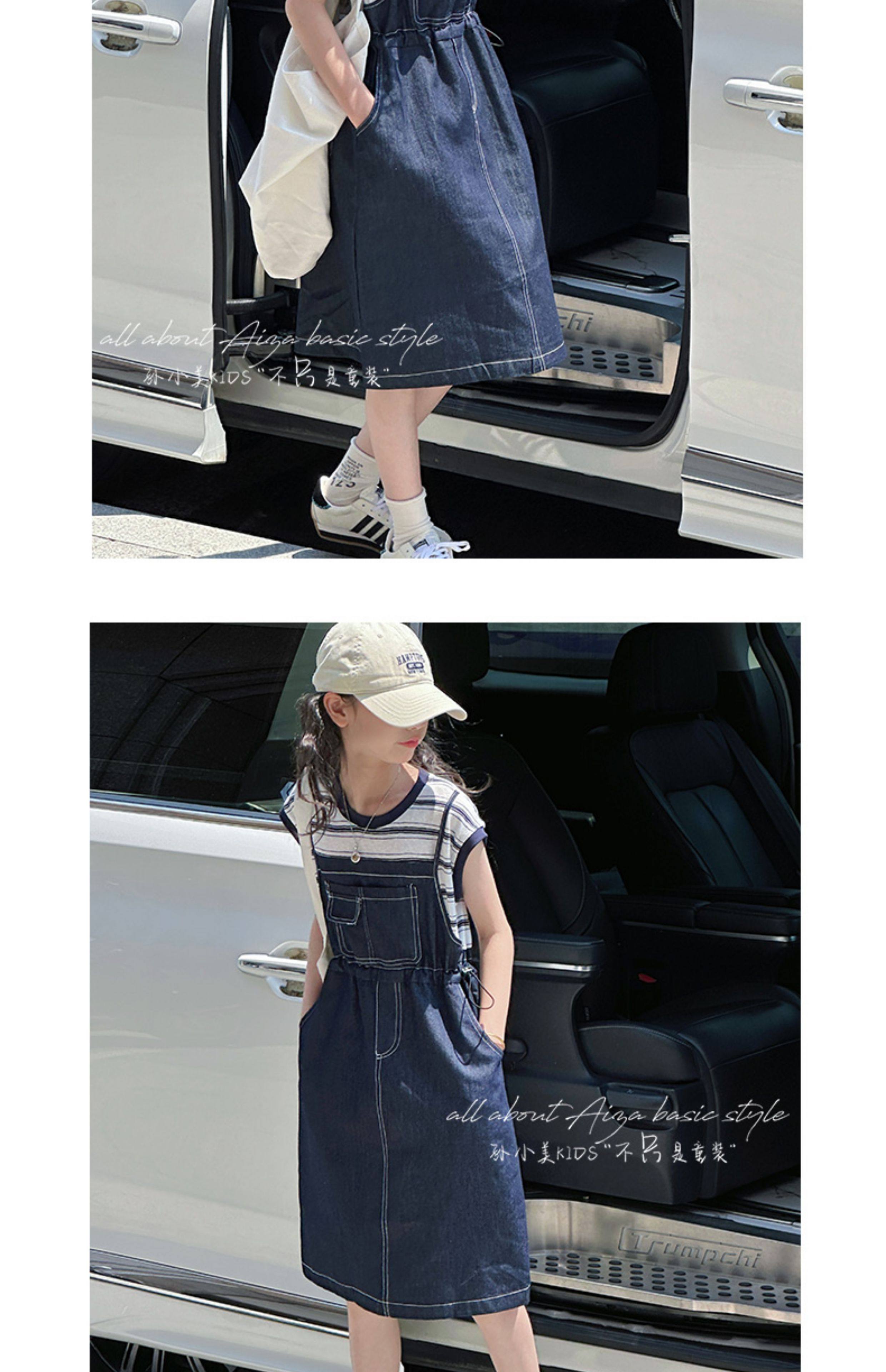 孫小美kids 假兩件女童牛仔連衣裙2025新款夏裝兒童無袖裙子時髦