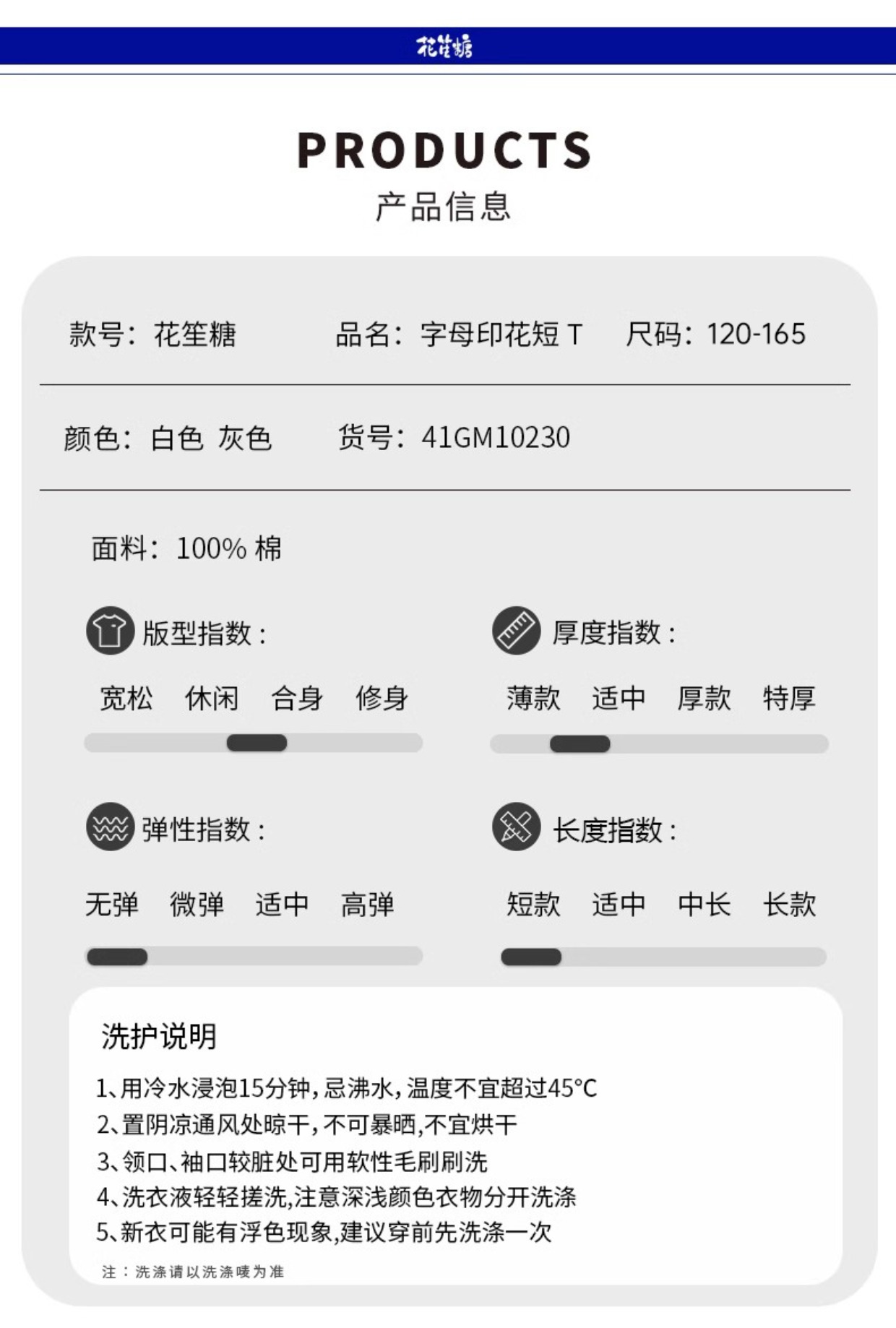 花笙糖女童字母灰色圓領短袖t恤小女孩夏裝新款柔軟休閒短款上衣