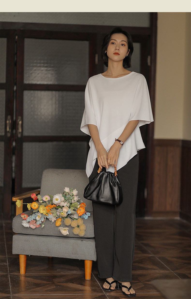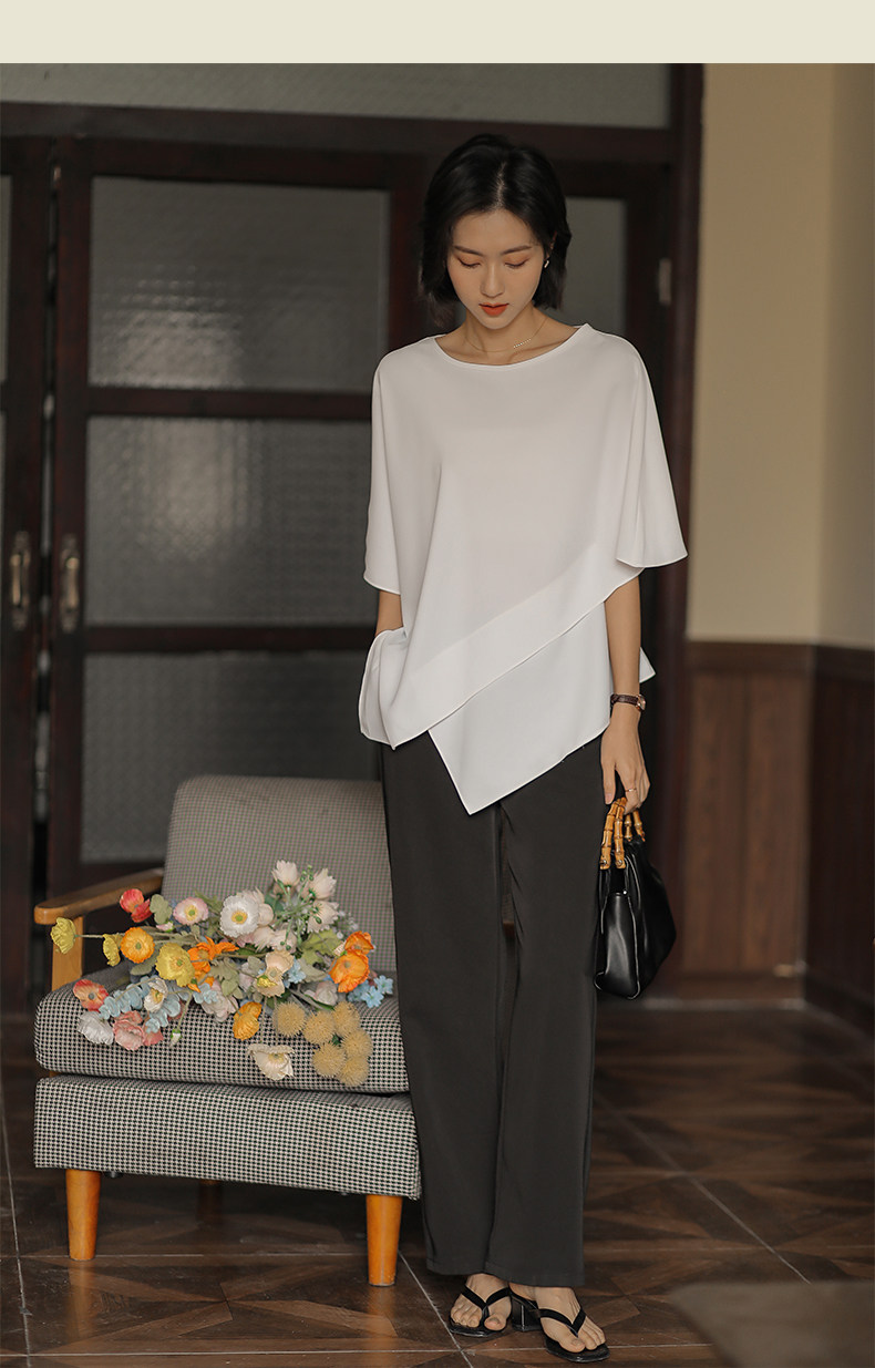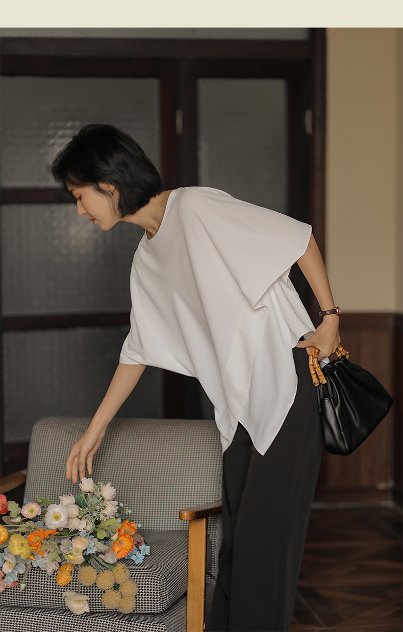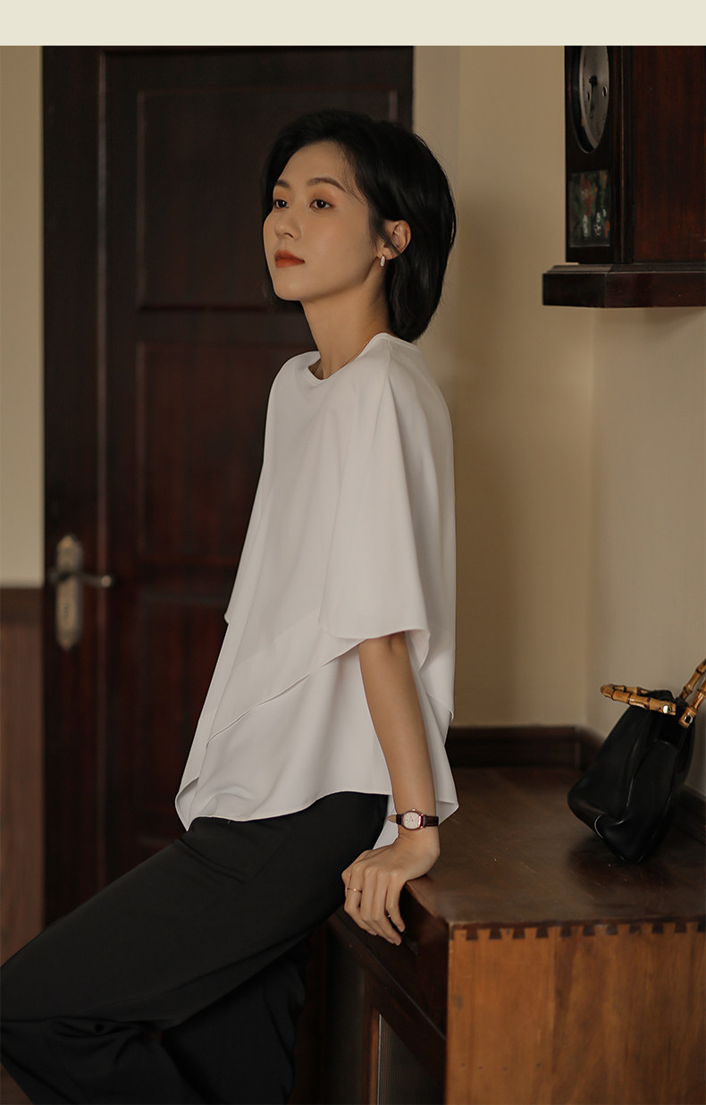無謂韓式文藝2026夏季新款女裝設計感寬鬆不規則白色雪紡衫女上衣
