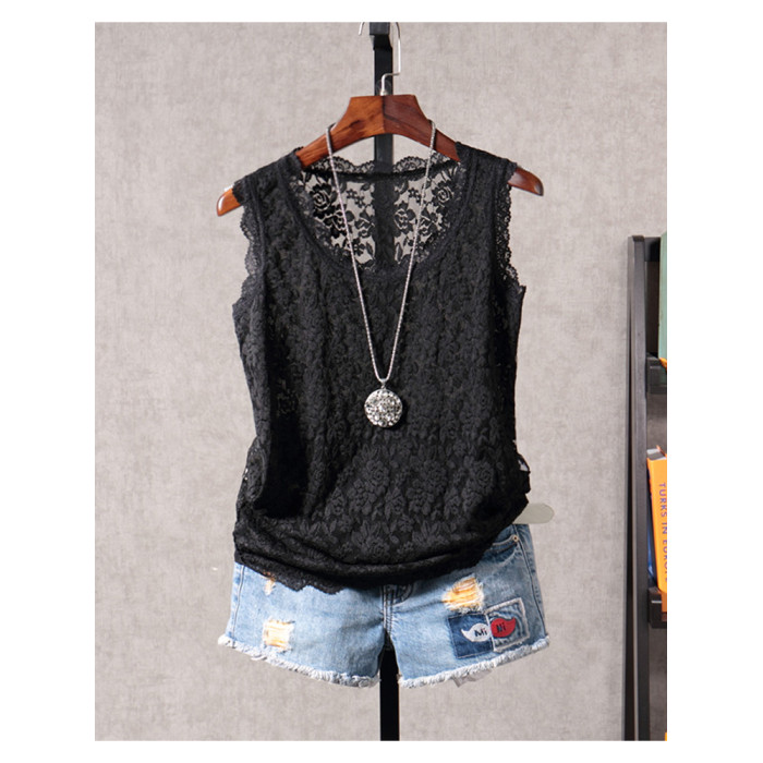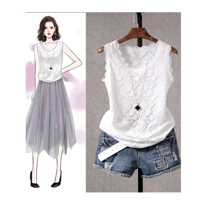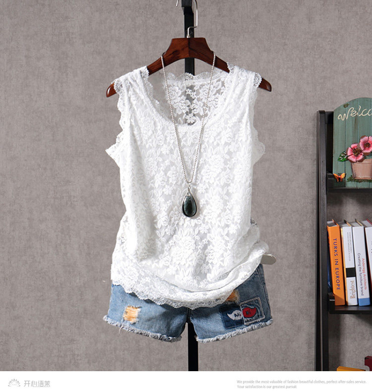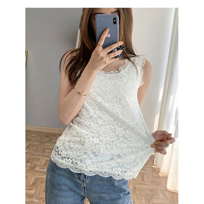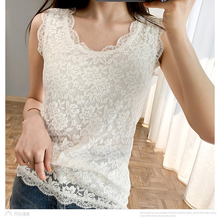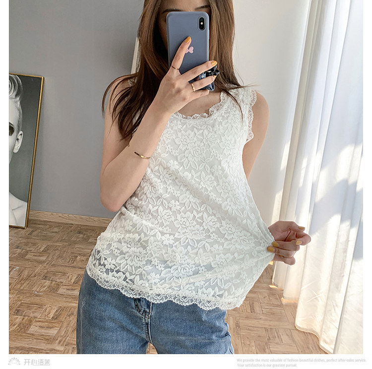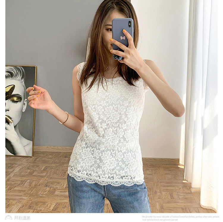 春夏新款韓版白色短款無袖蕾絲小背心外穿女修身顯瘦打底衫吊帶衫