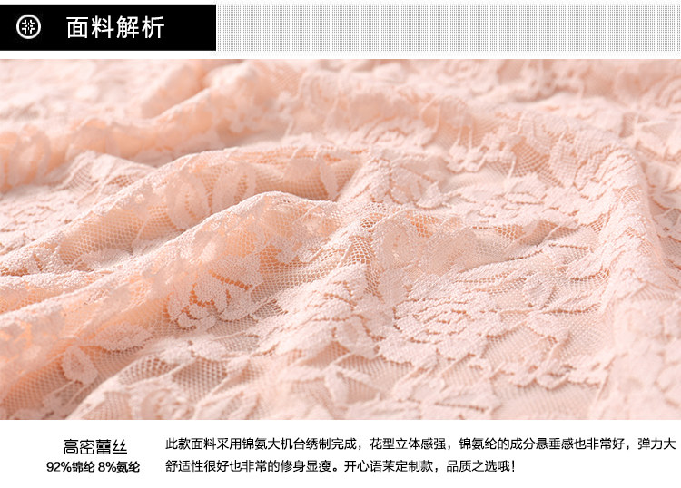 面料成分: 面料92%錦綸 8%氨綸 裡料90%錦綸 10%氨綸 花邊95%錦綸 5%氨綸