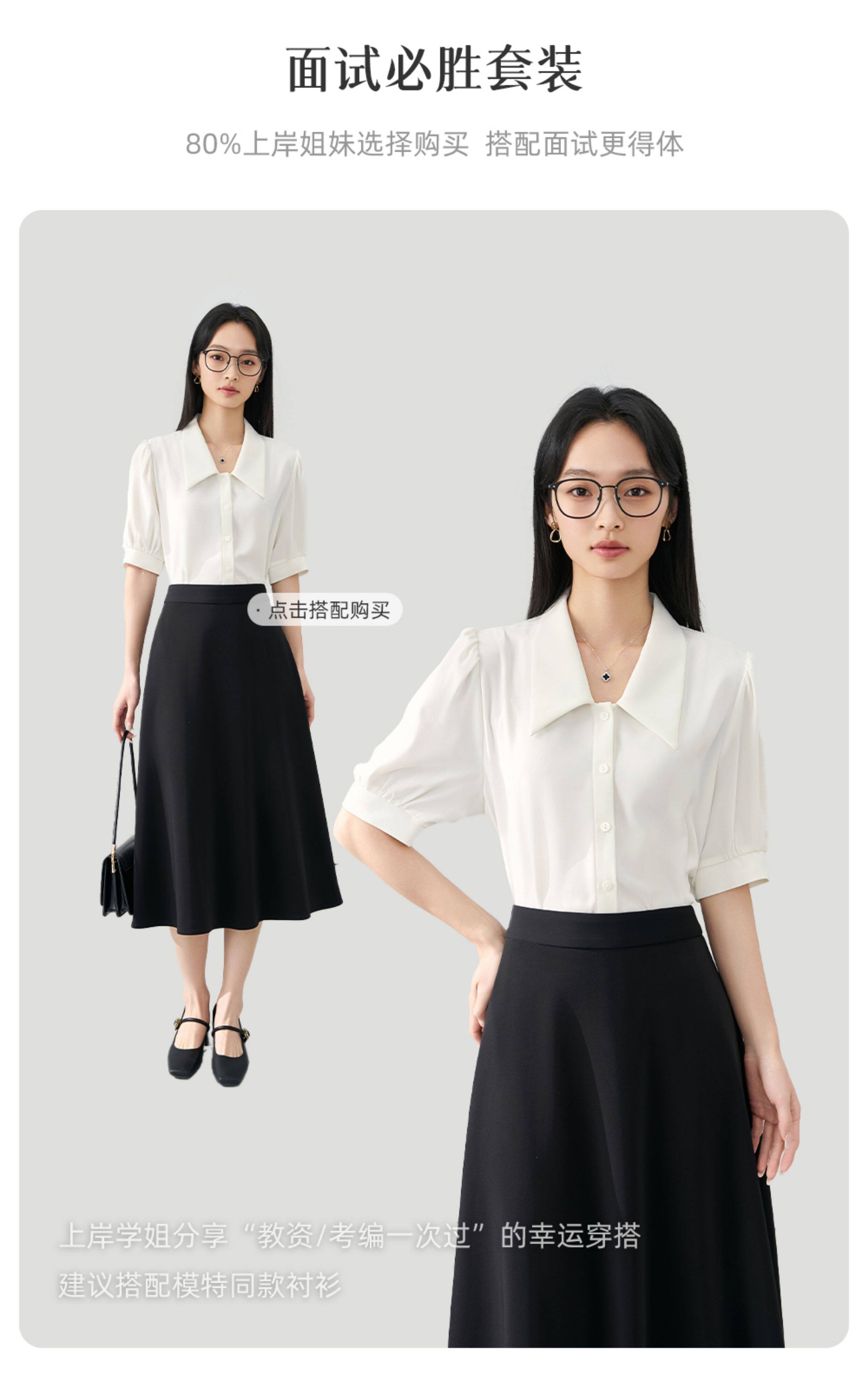 伯德小姐a字半身裙女夏小個子穿搭白色傘裙職業裝半裙面試西裝裙