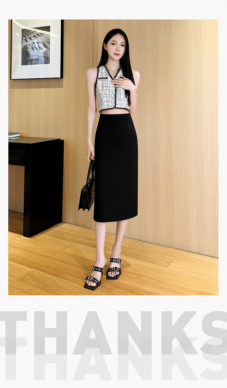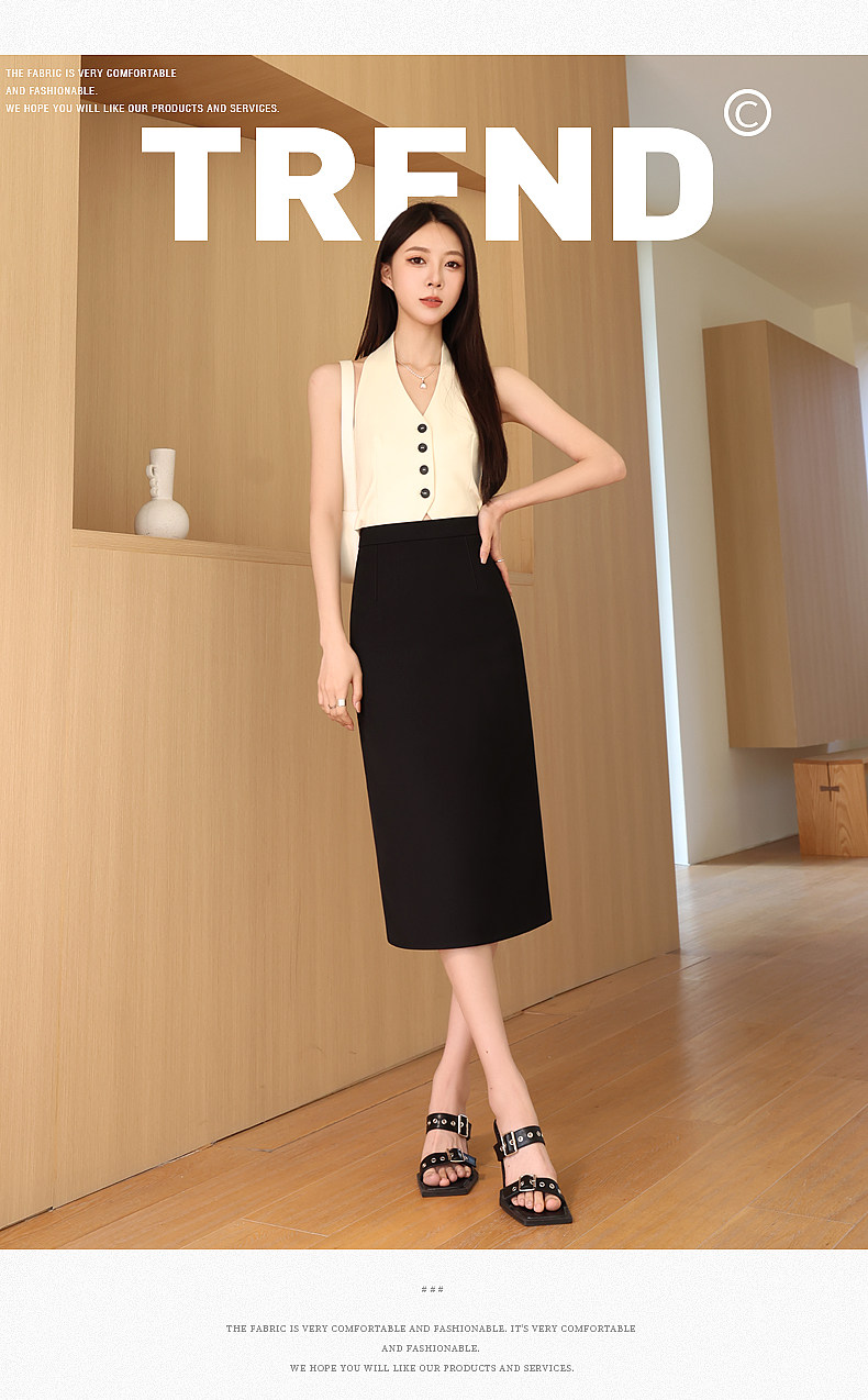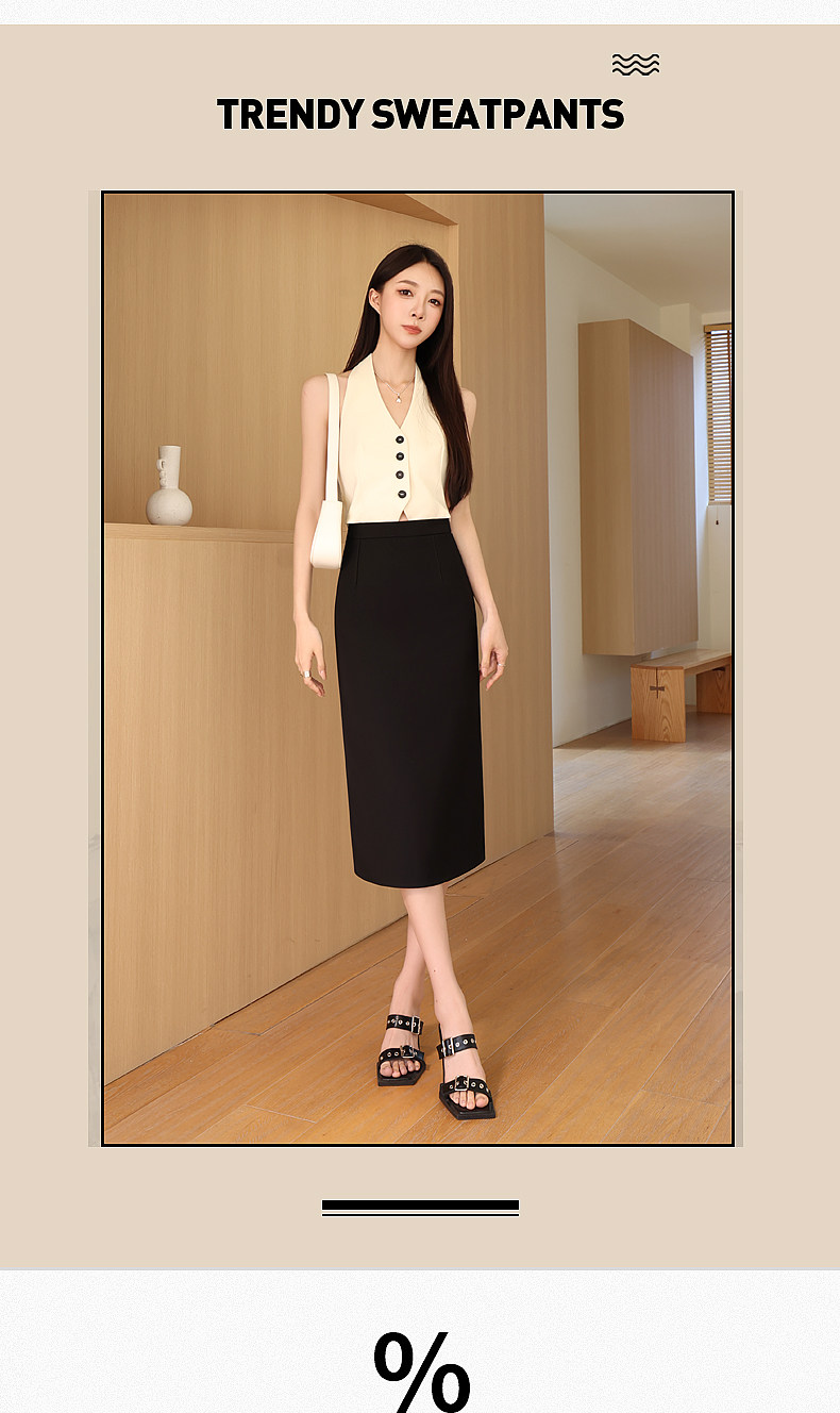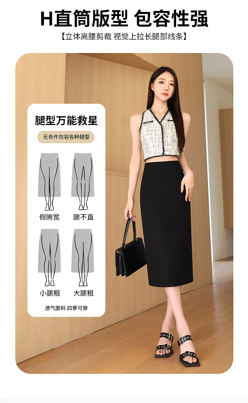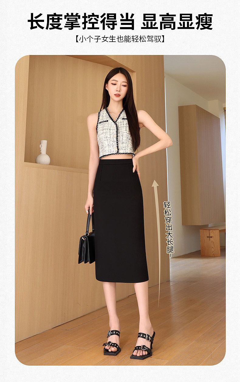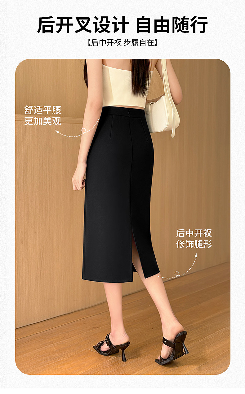 西裝半身裙女春秋季高腰氣質包臀直筒中長款垂墜感開叉黑色一步裙