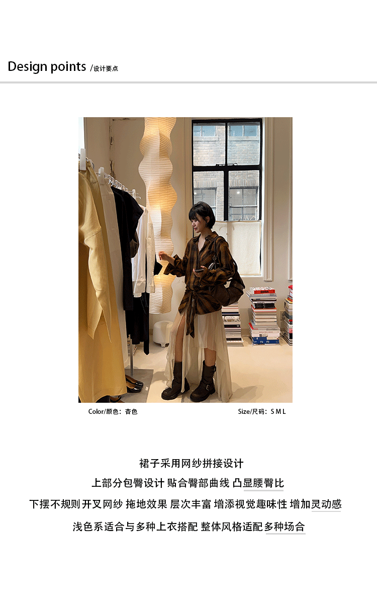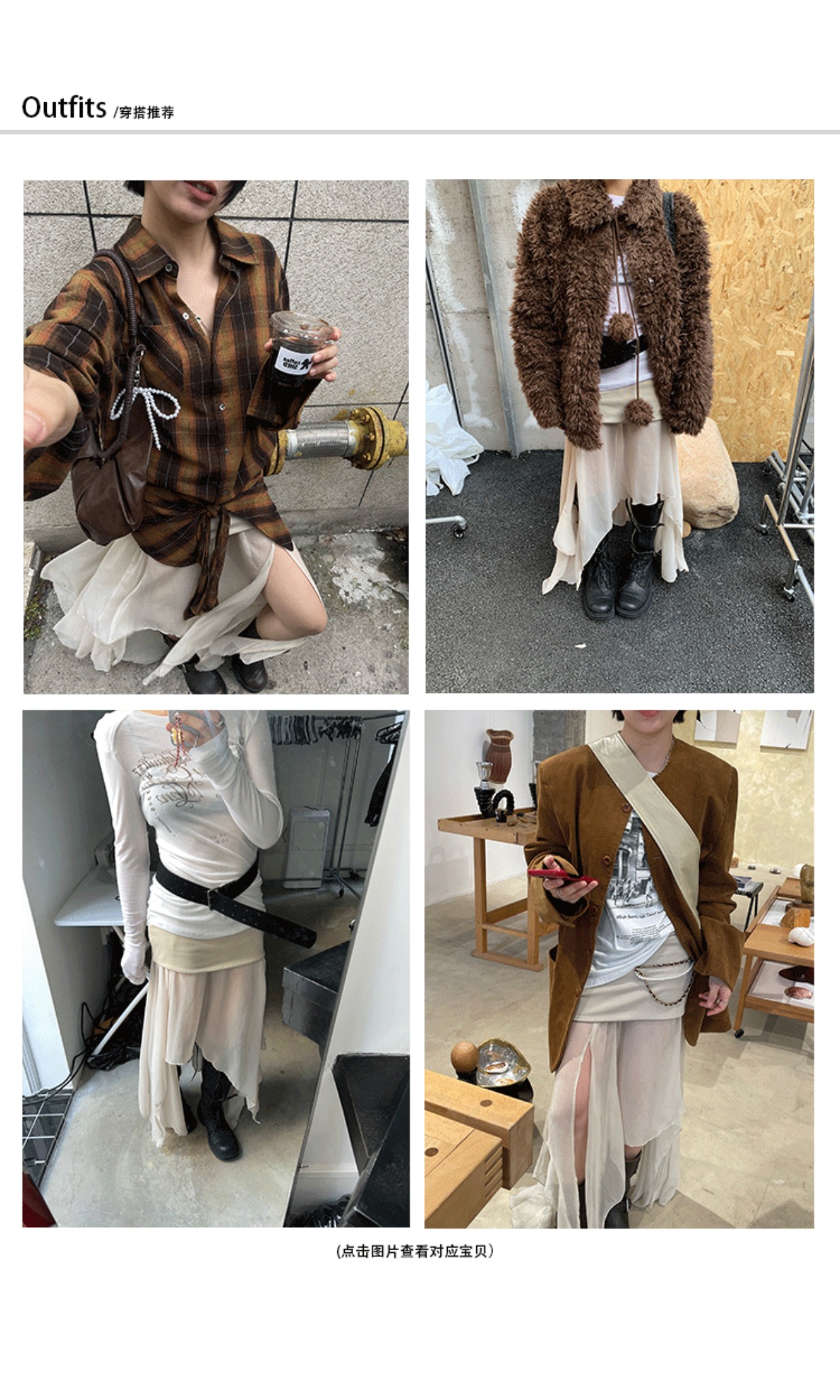 Two2不規則開衩小衆網紗輕薄包臀裙設計感仙氣微透半身裙女超短裙