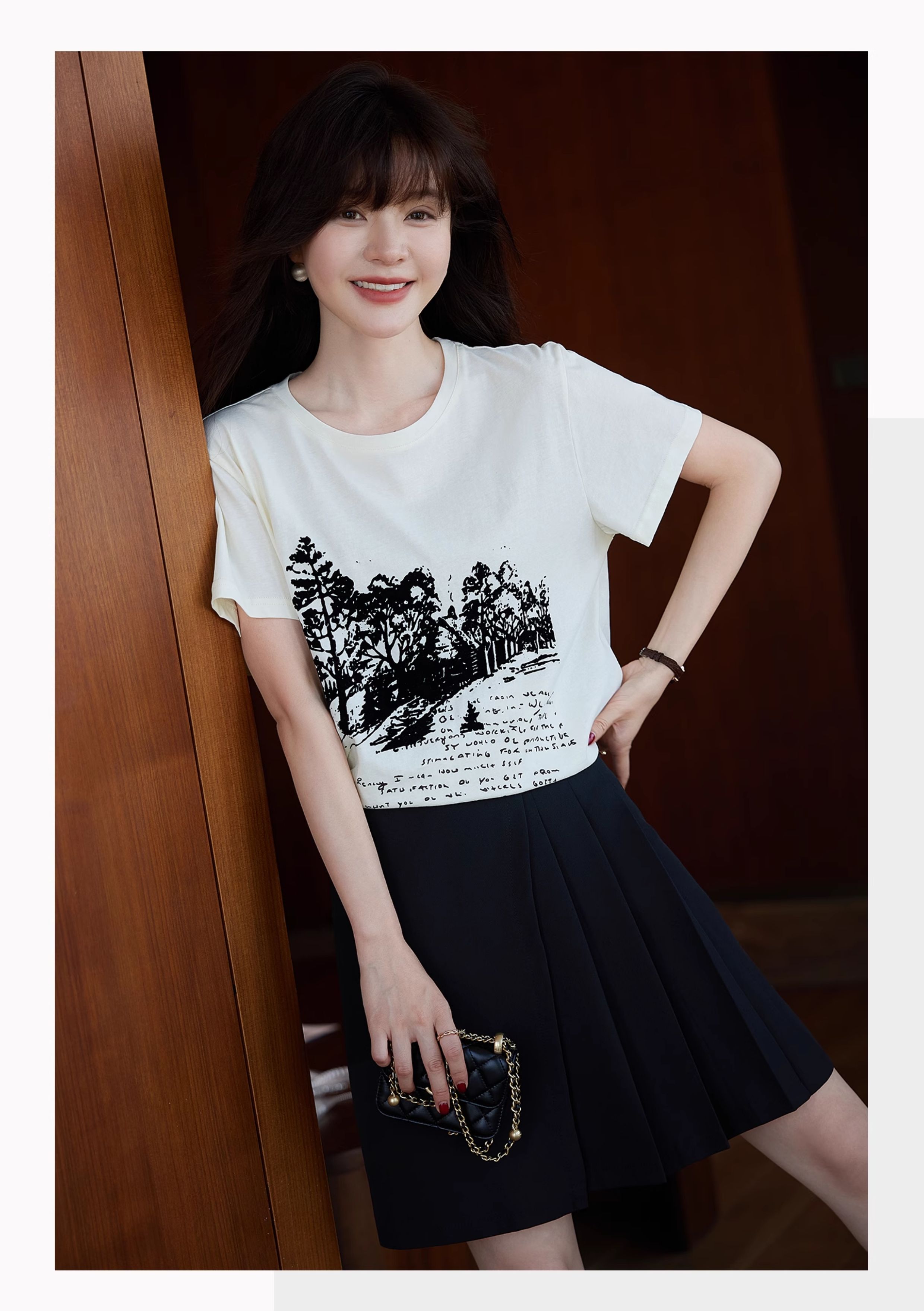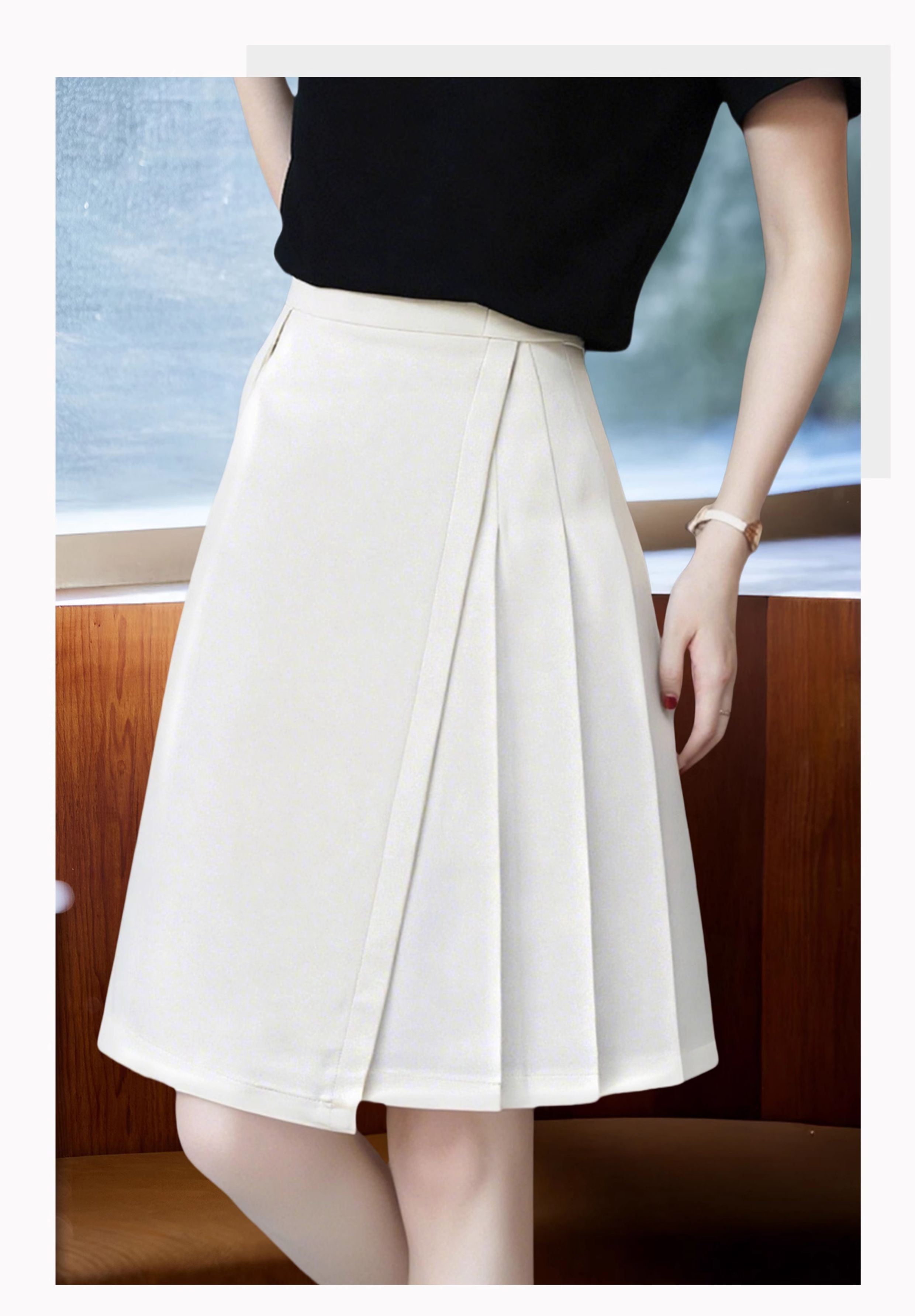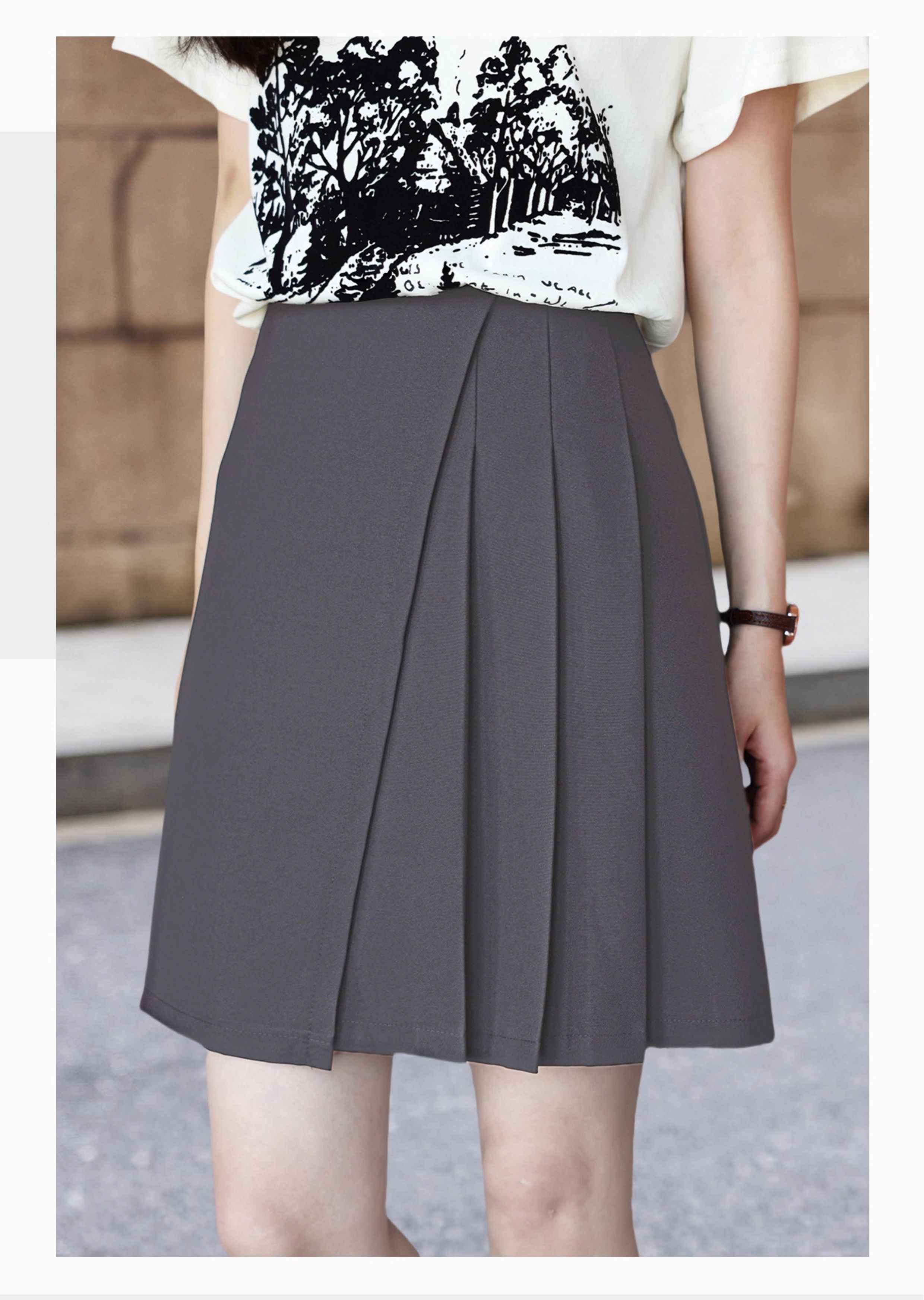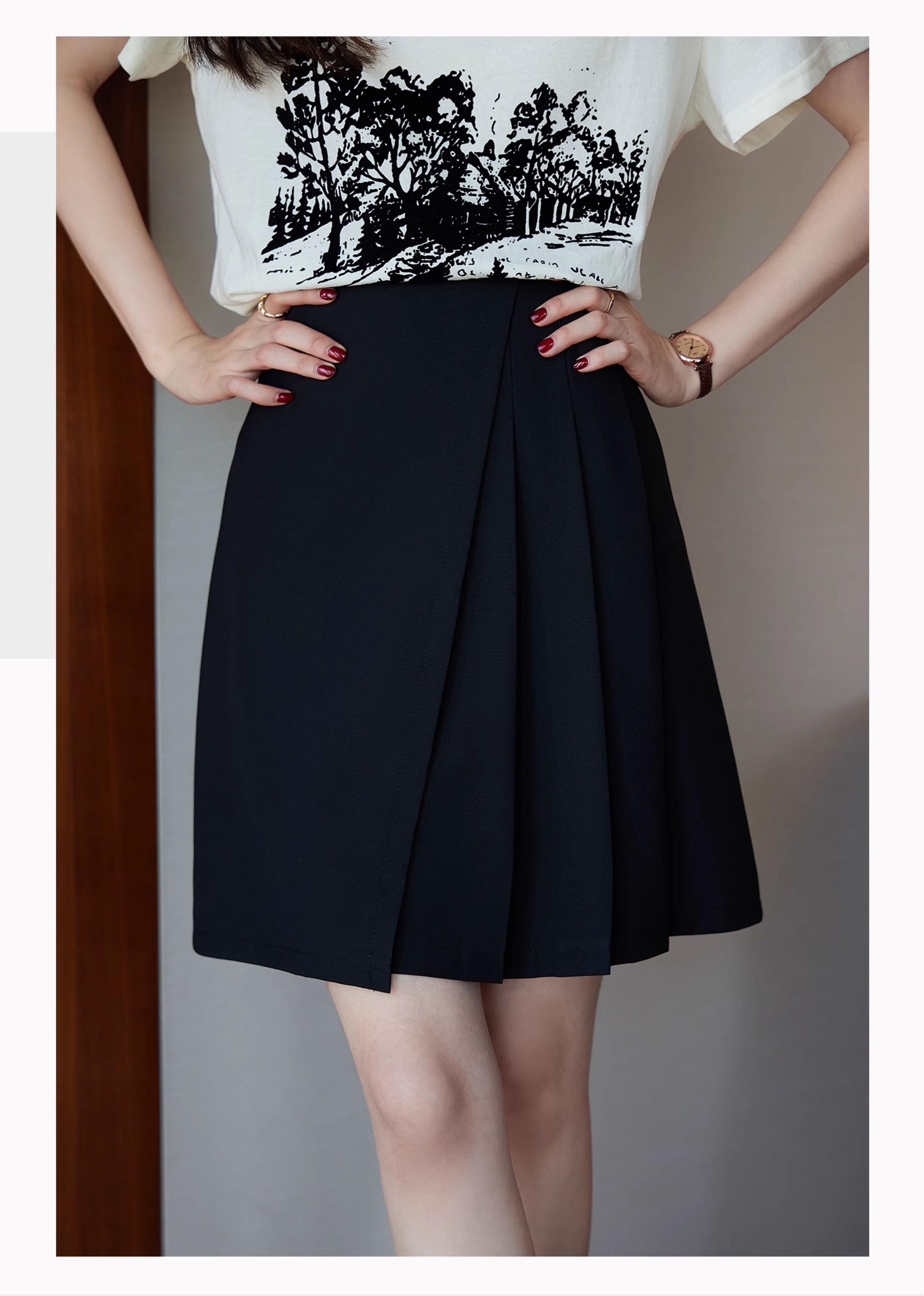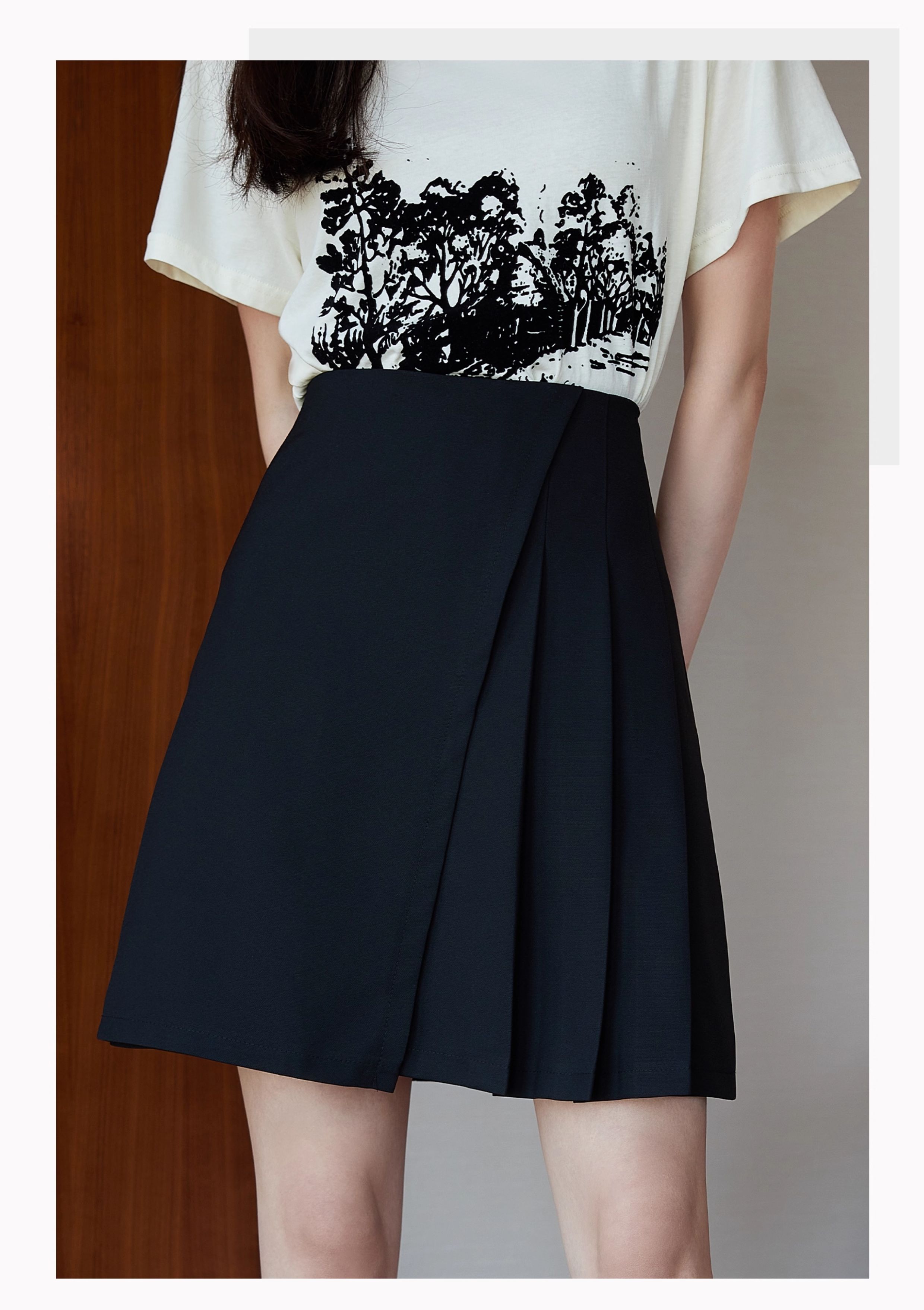 Basic House/百家好不規則黑色西裝百褶短裙女裝2025巨好看的裙子