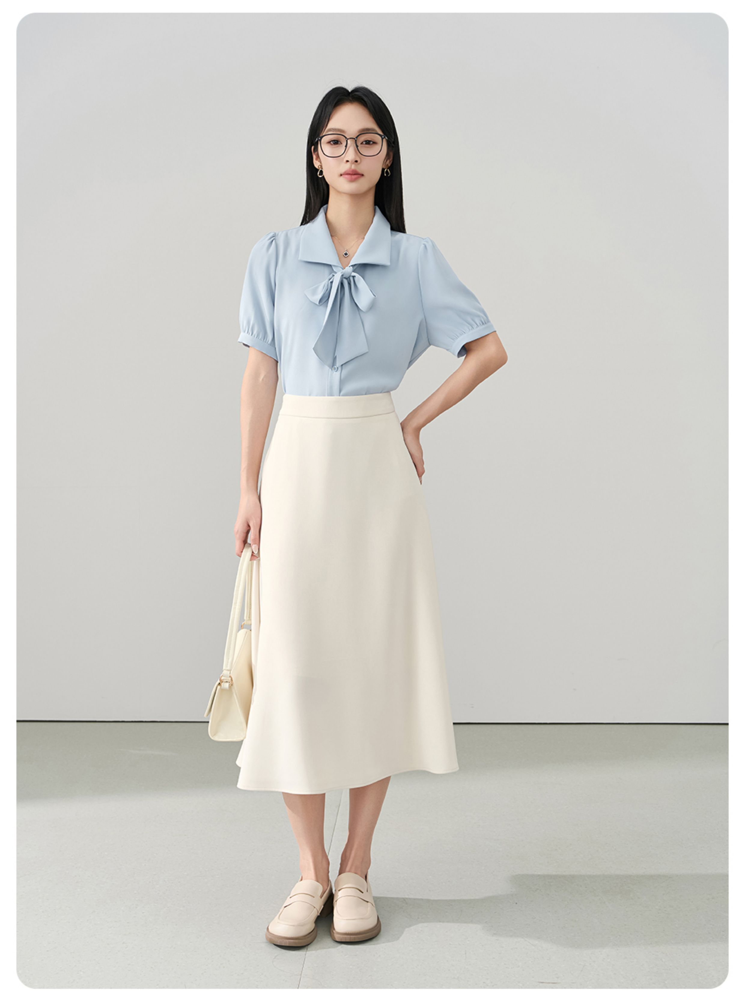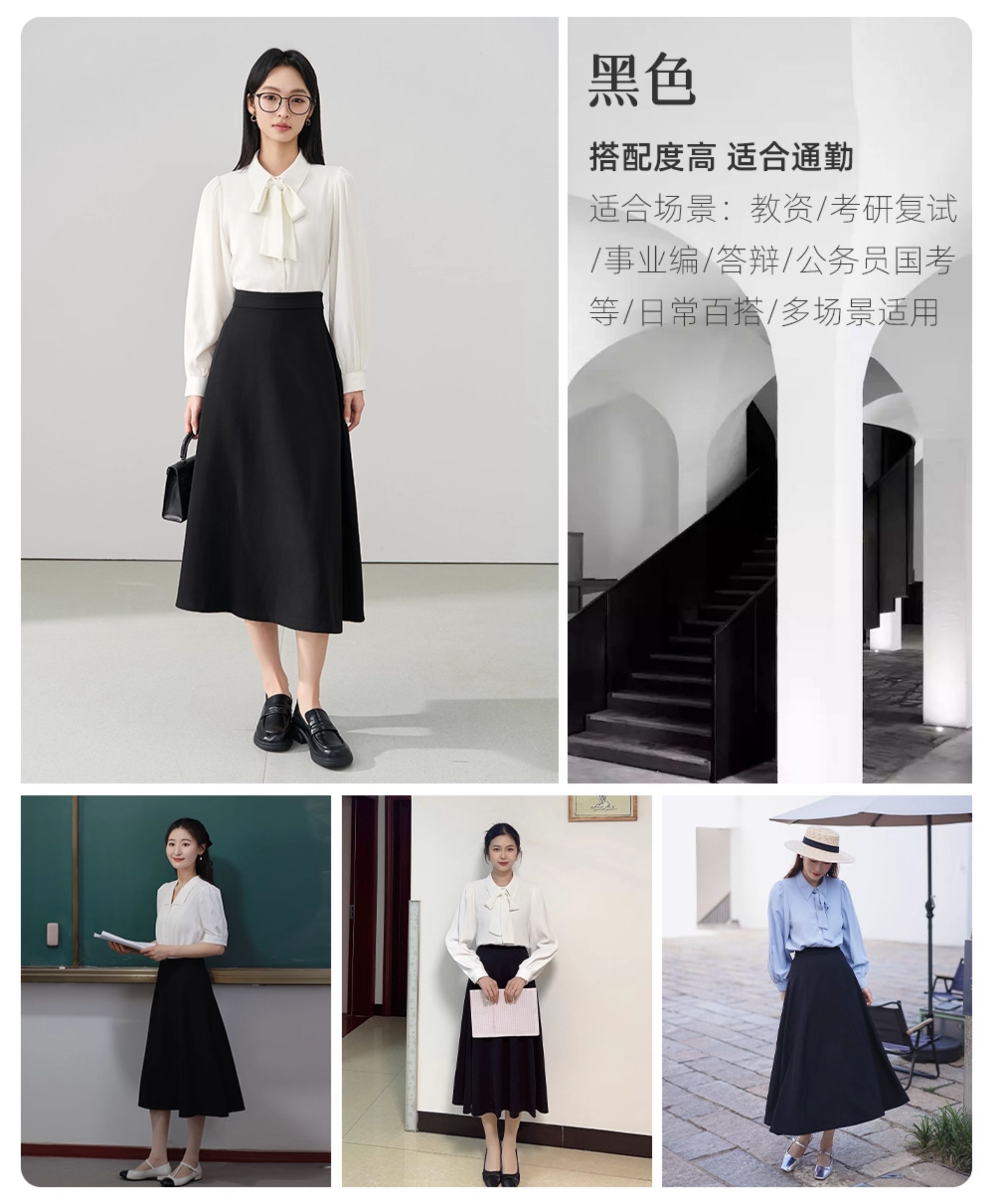 伯德小姐西裝半身裙女夏米白色a字半裙教資面試長裙職業正裝裙子