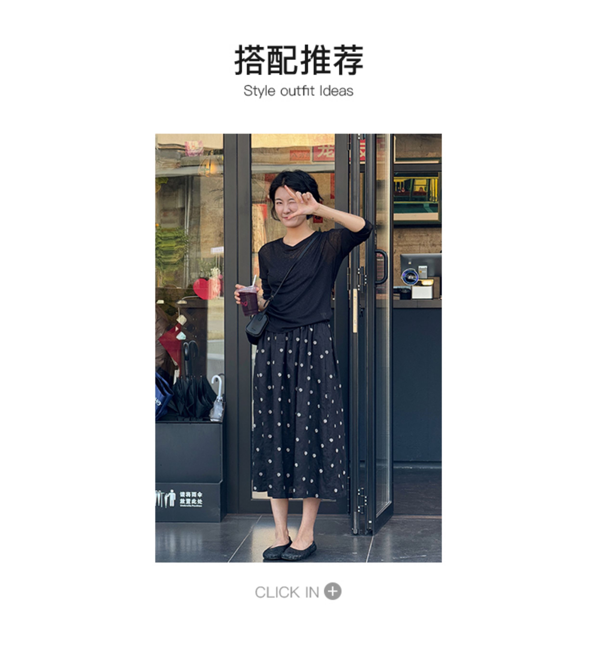 浪清 100亞麻波點半身裙女夏薄款顯瘦裙子小個子A字中長裙大擺裙