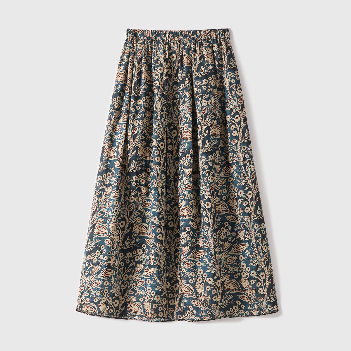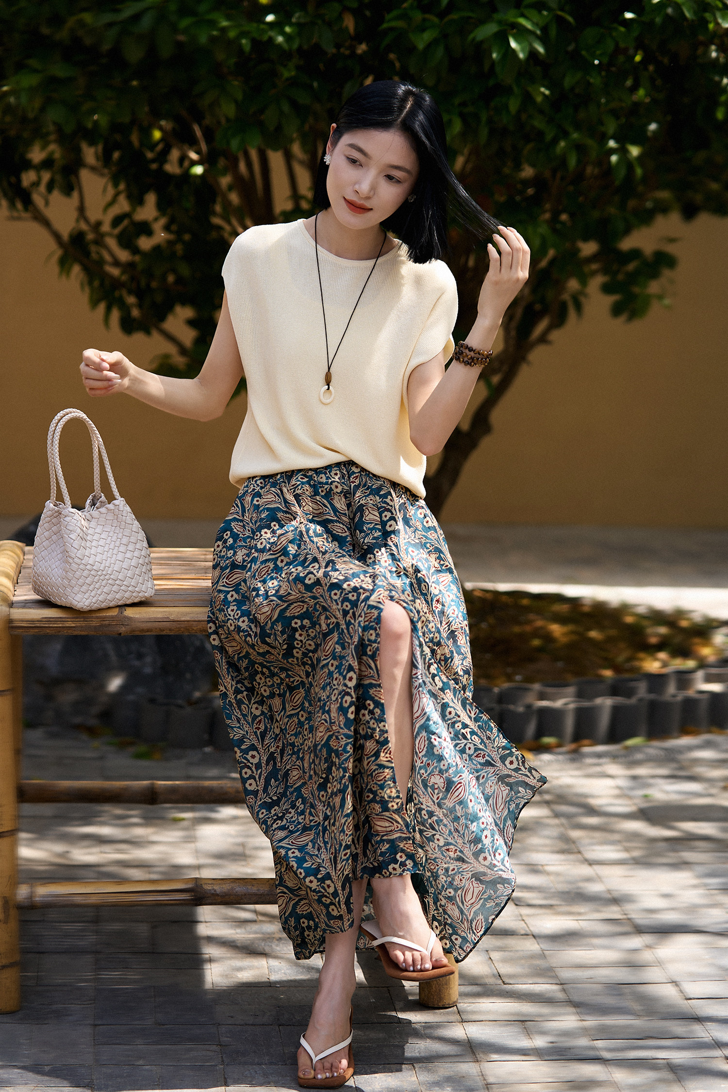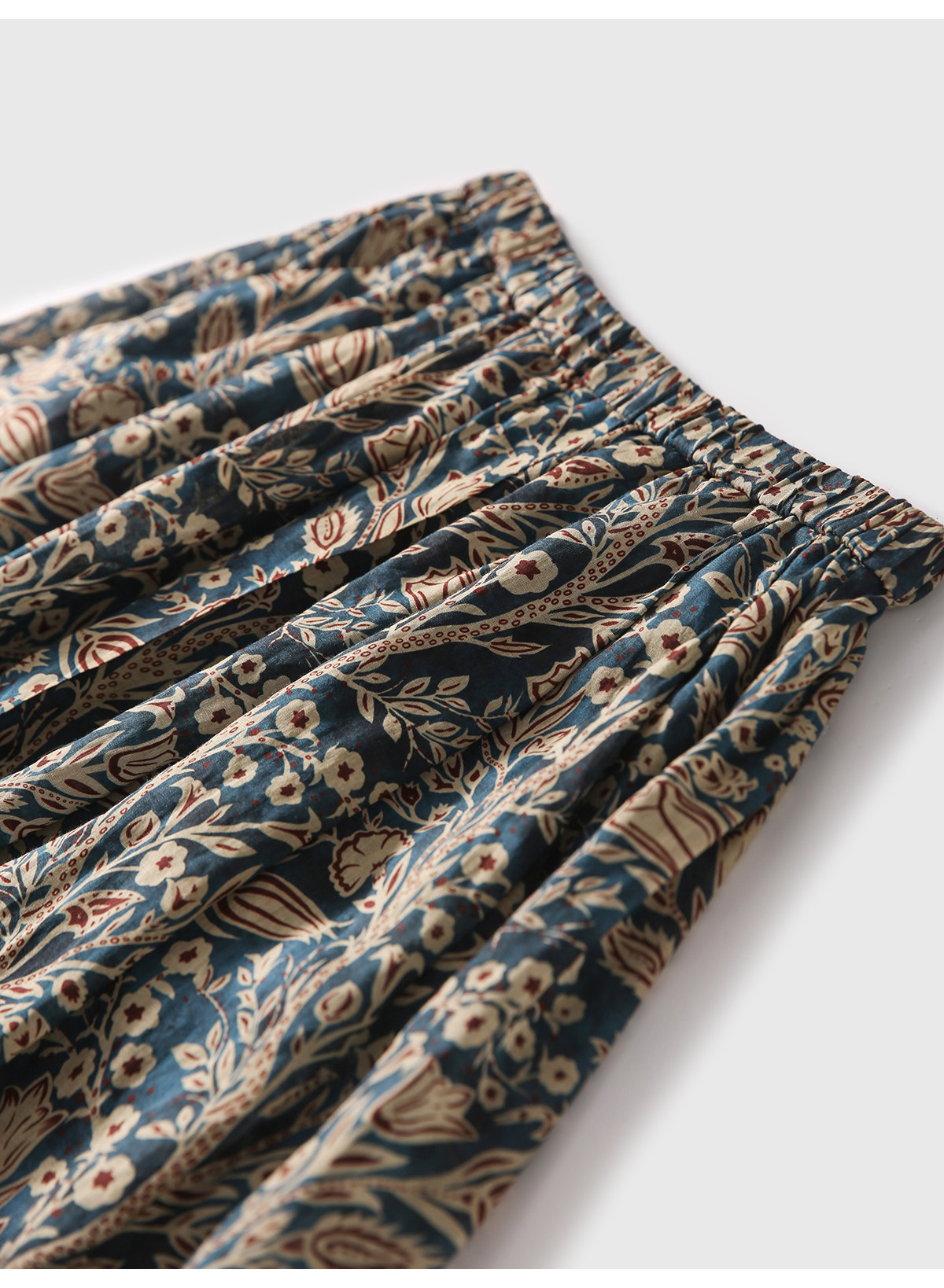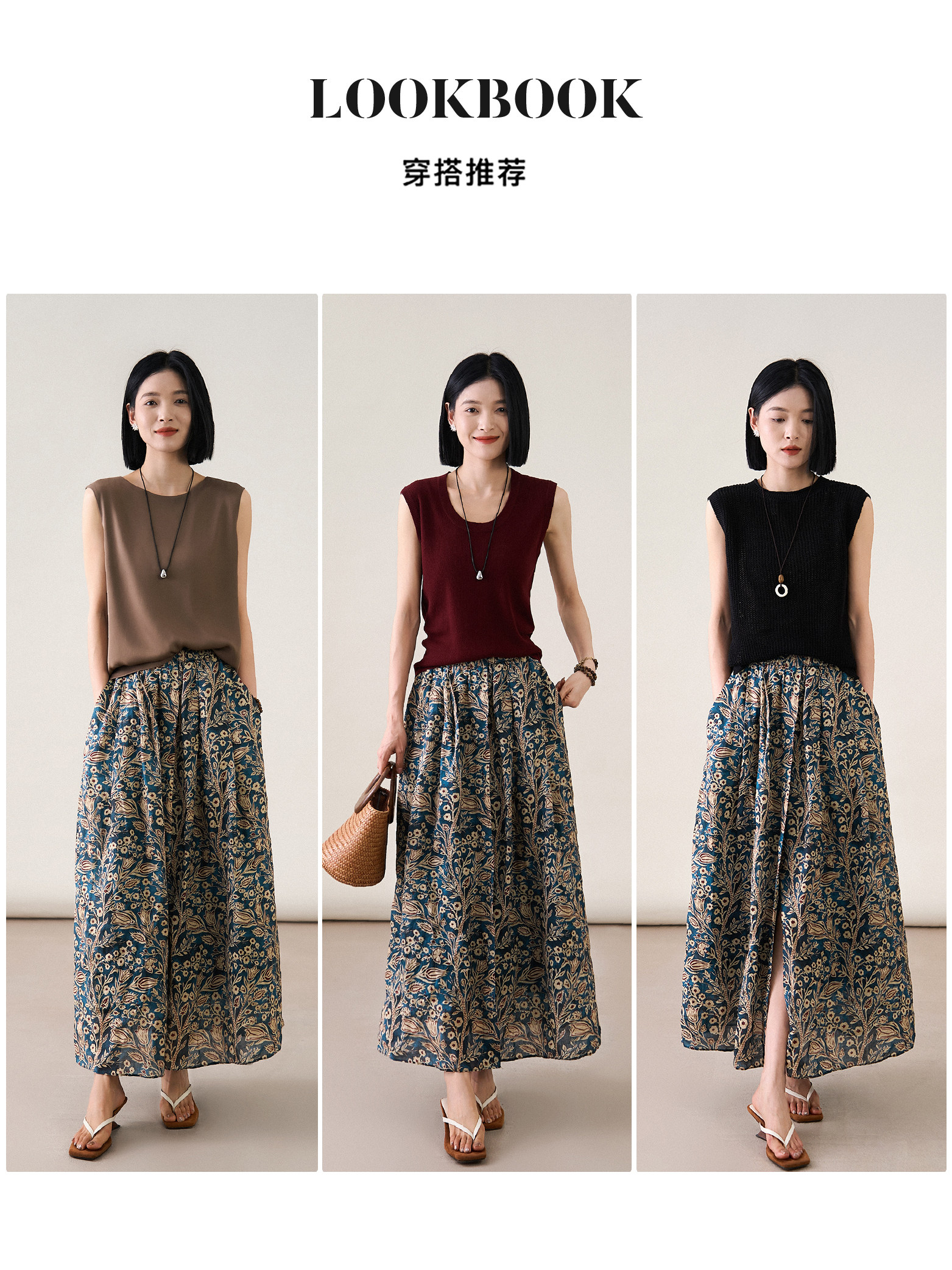 「步履生香」前後開叉設計+100%苧麻+珮斯利印花A字半身裙25年夏