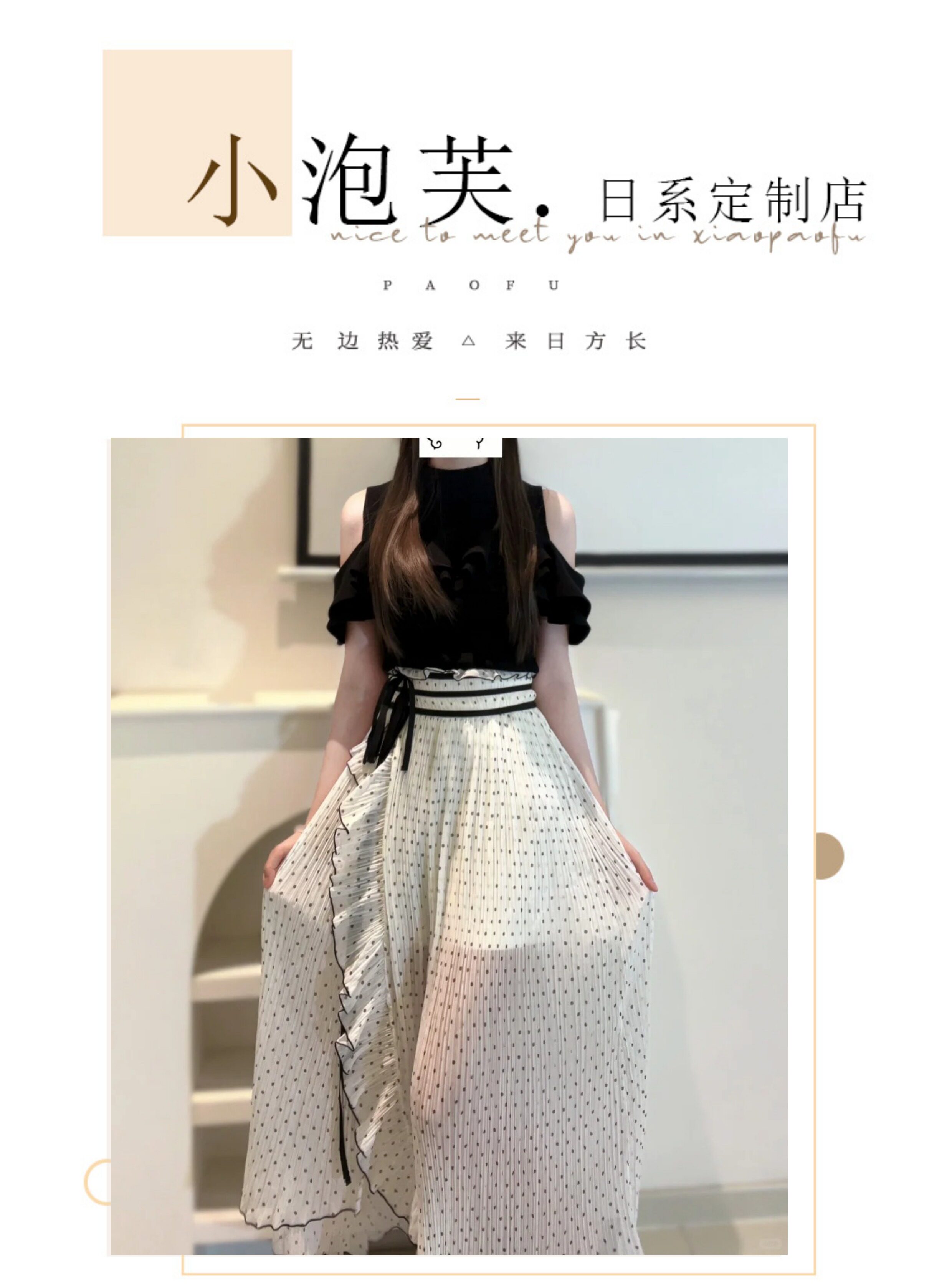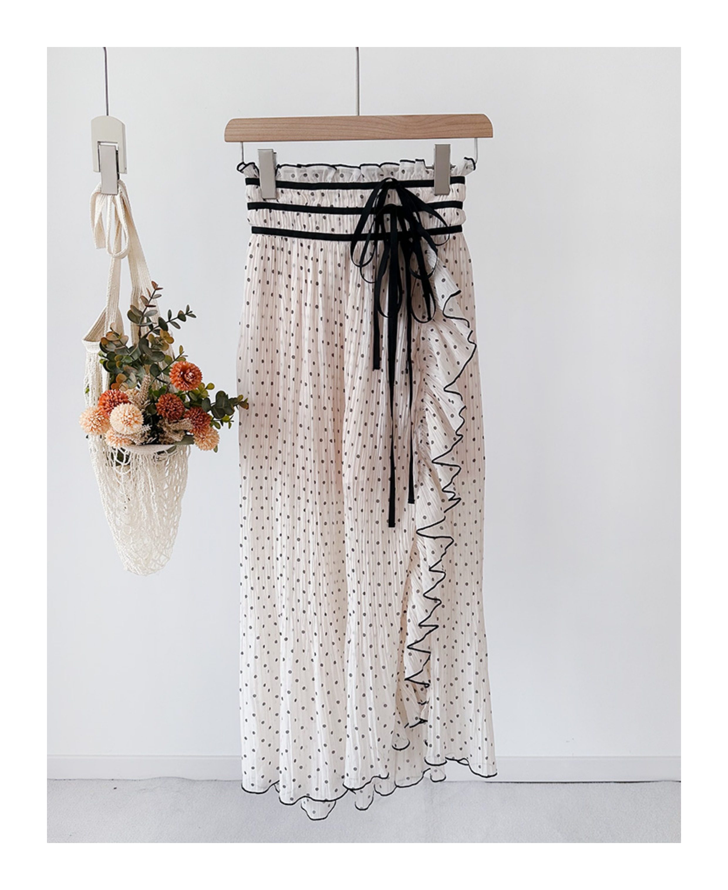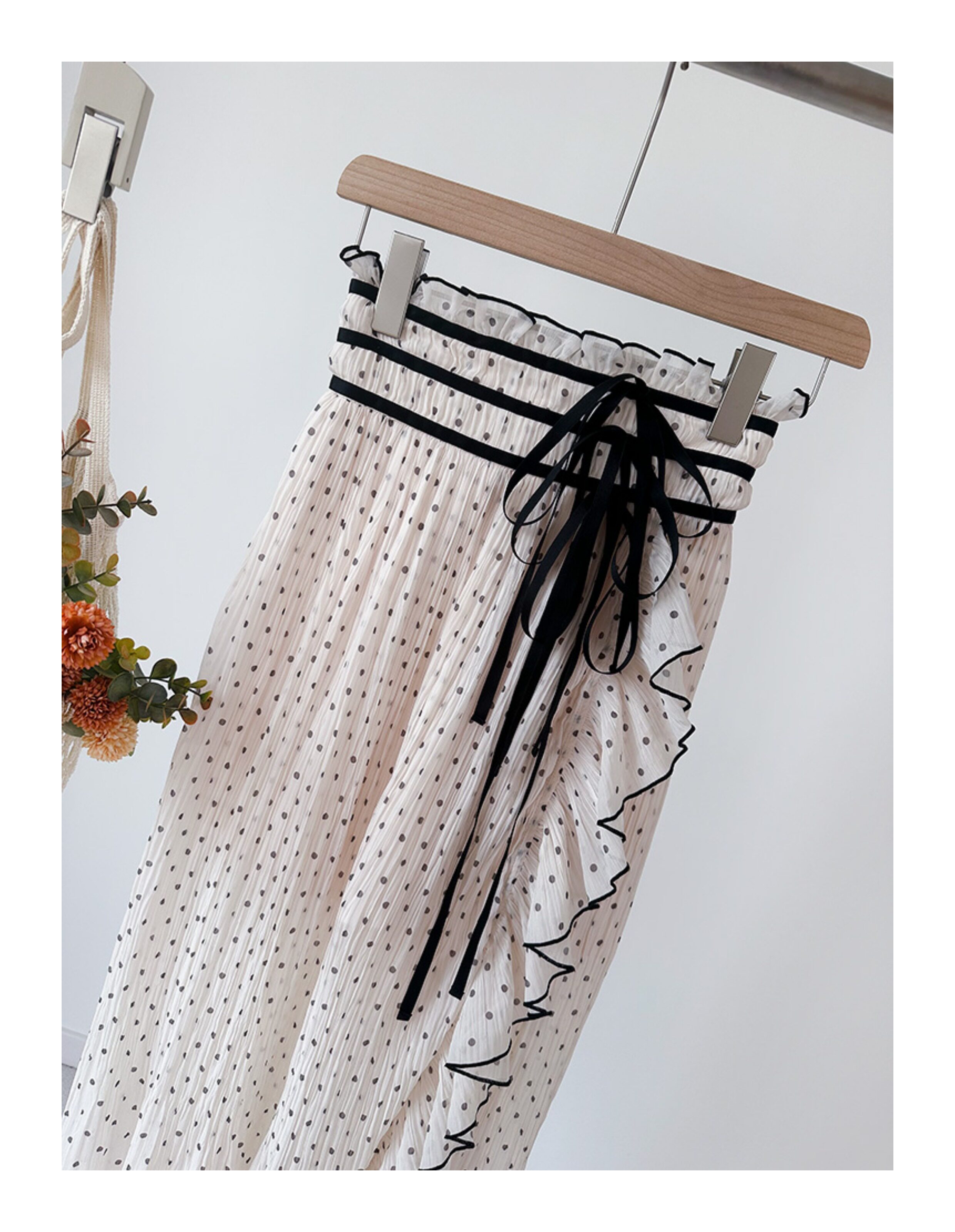 小泡芙日系夏季新款女裝甜美高腰綁帶荷葉邊不規則圓點裙褲半身裙