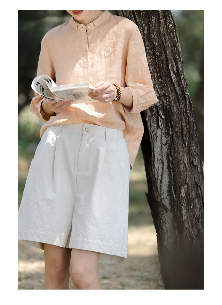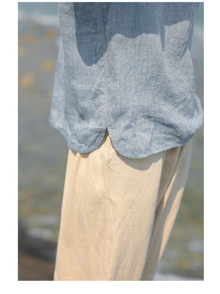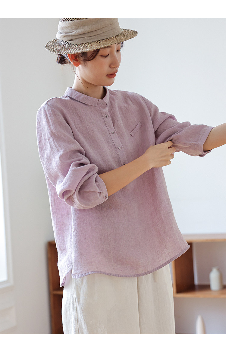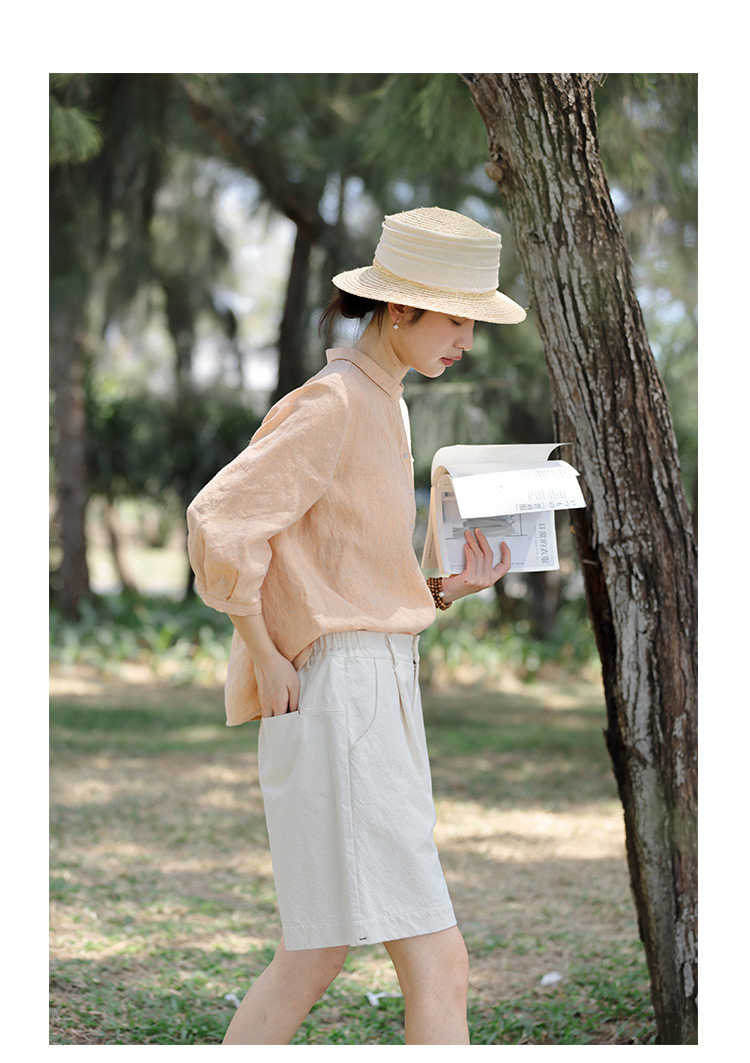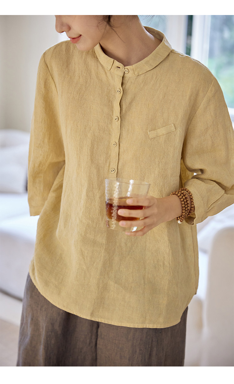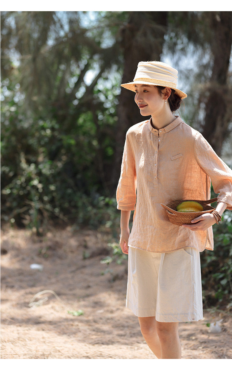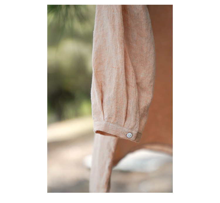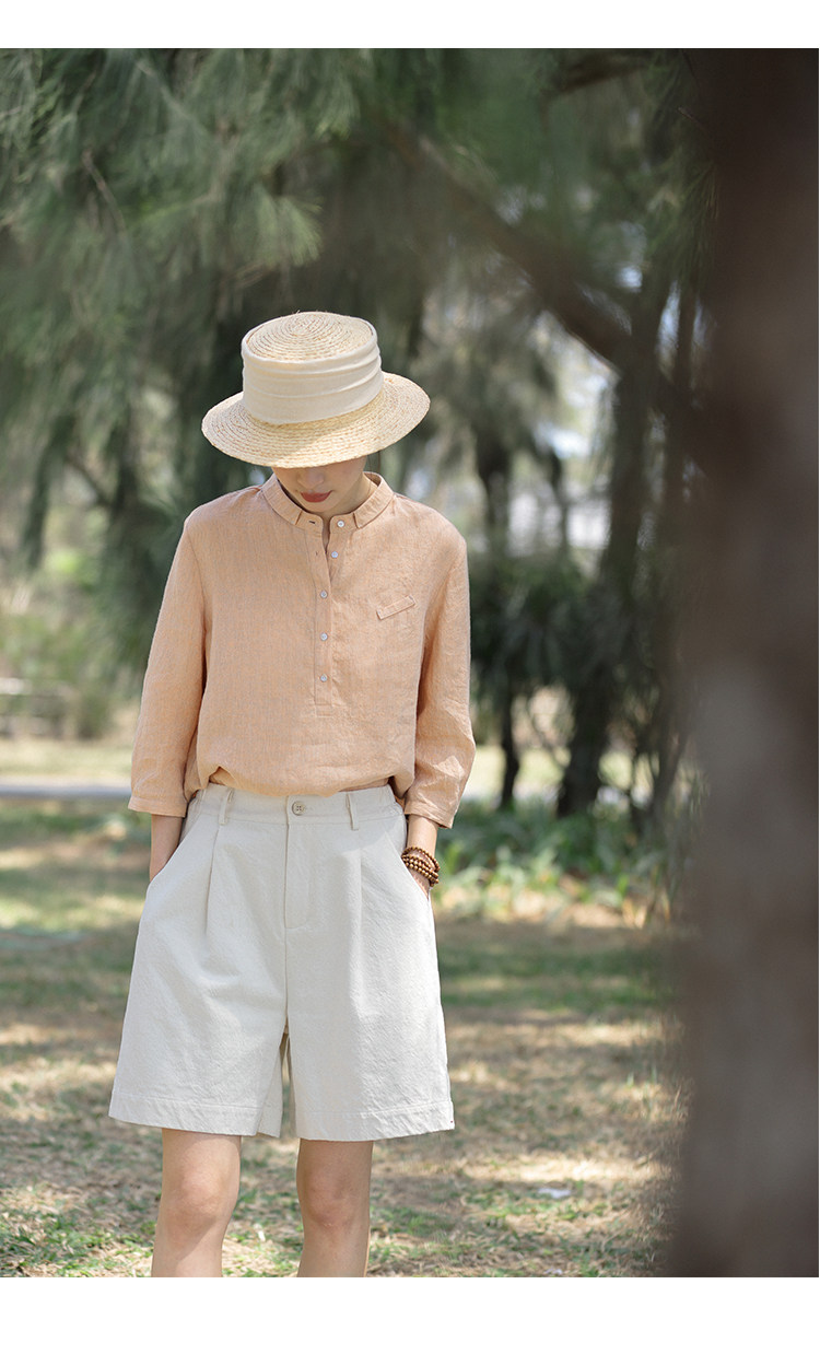 100%法國進口高級色織亞麻襯衫法式寬鬆復古套頭煜安可然原創