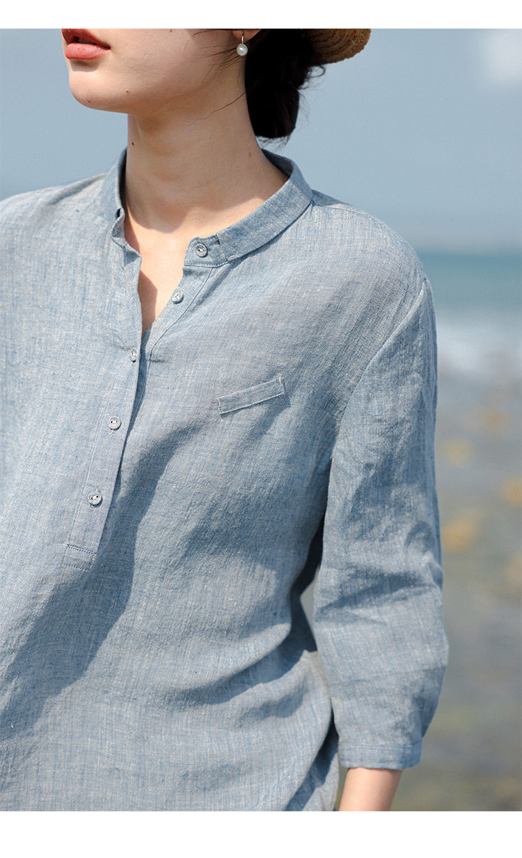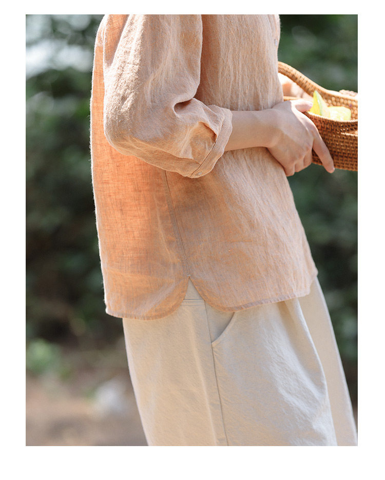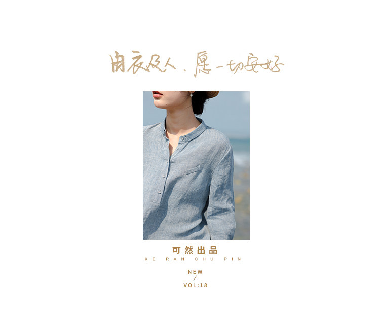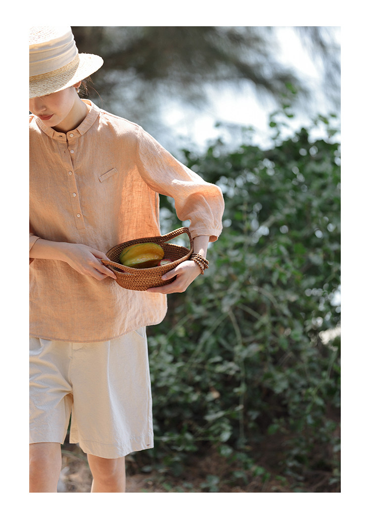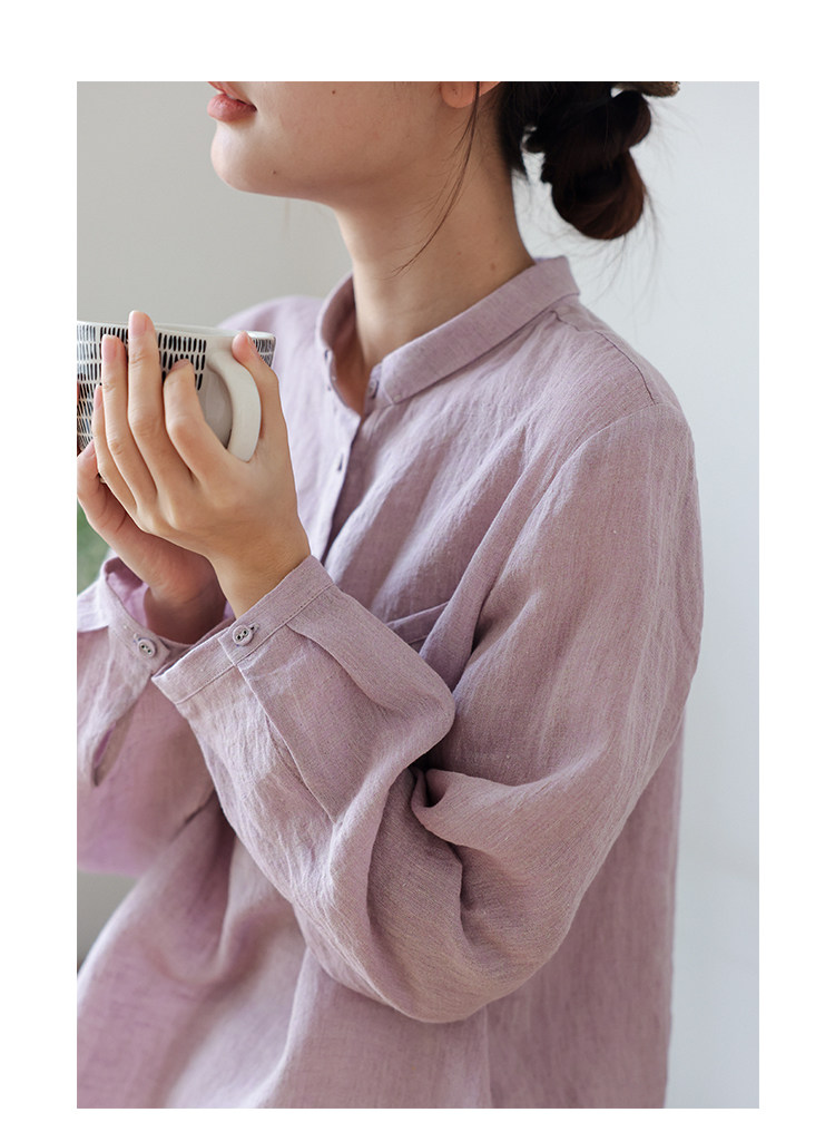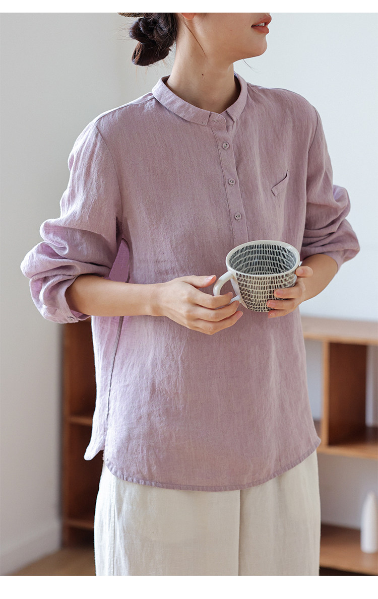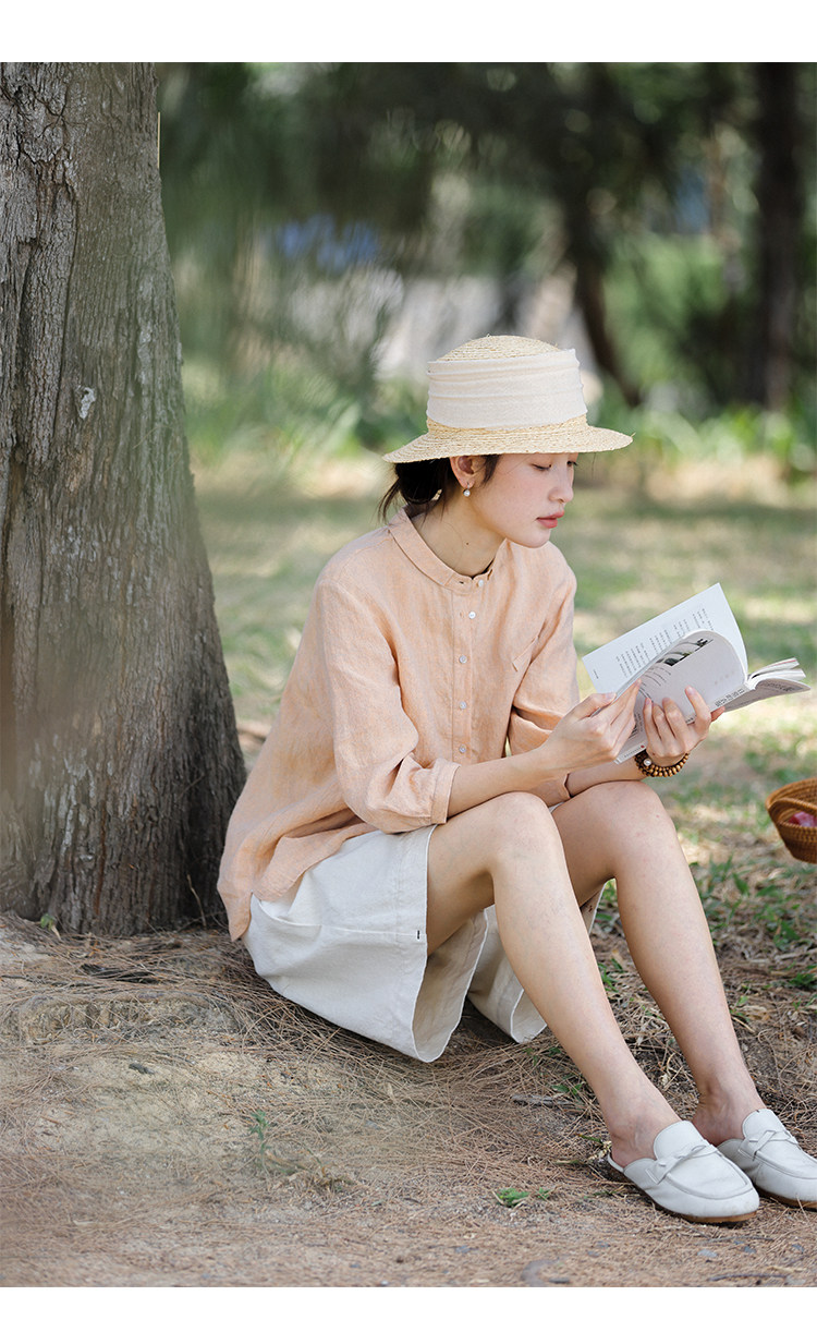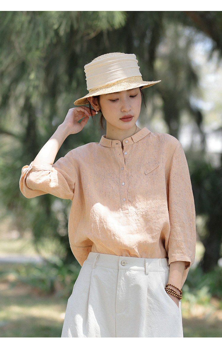 100%法國進口高級色織亞麻襯衫法式寬鬆復古套頭煜安可然原創