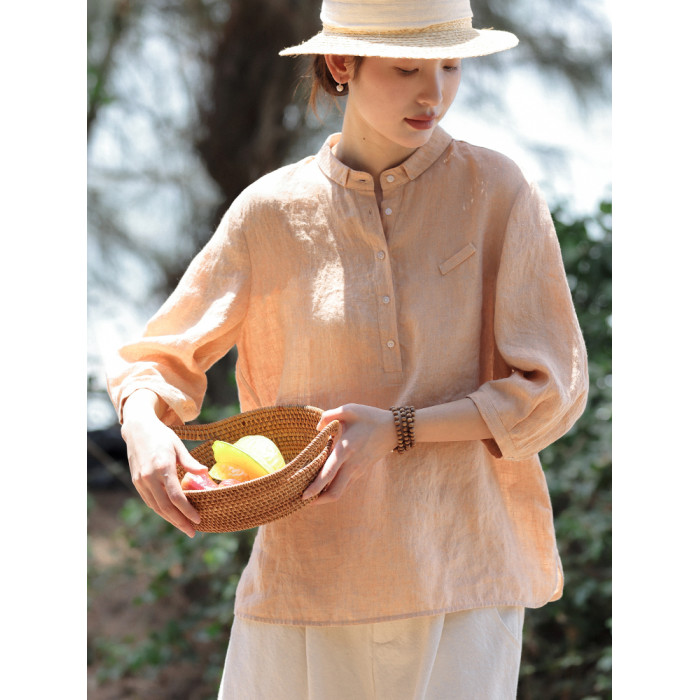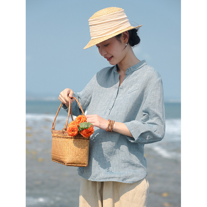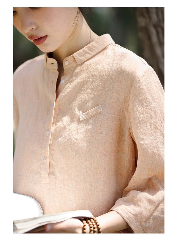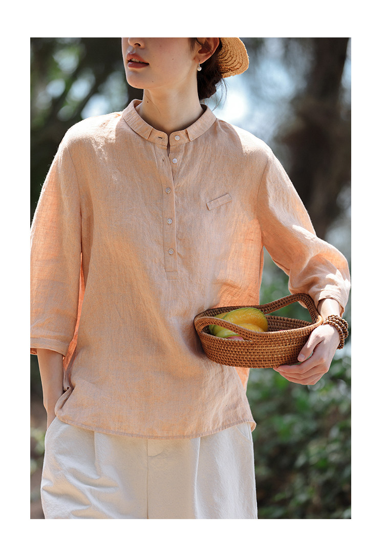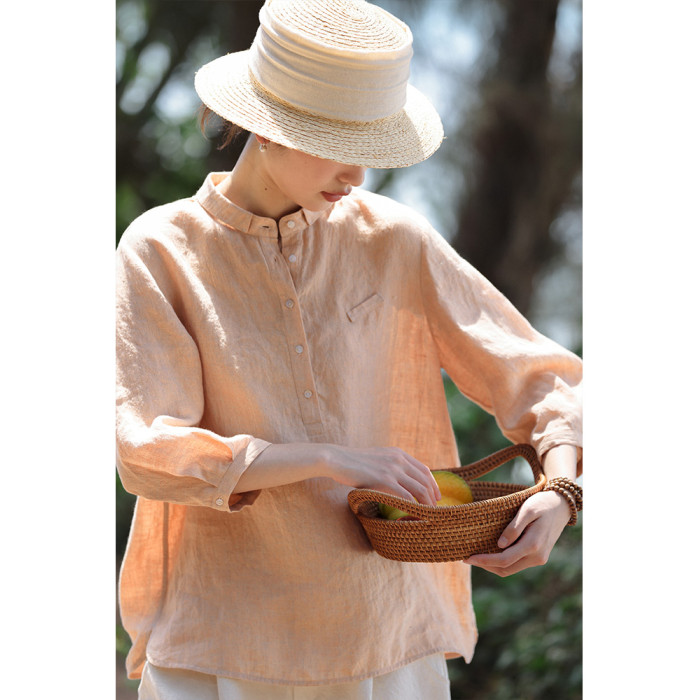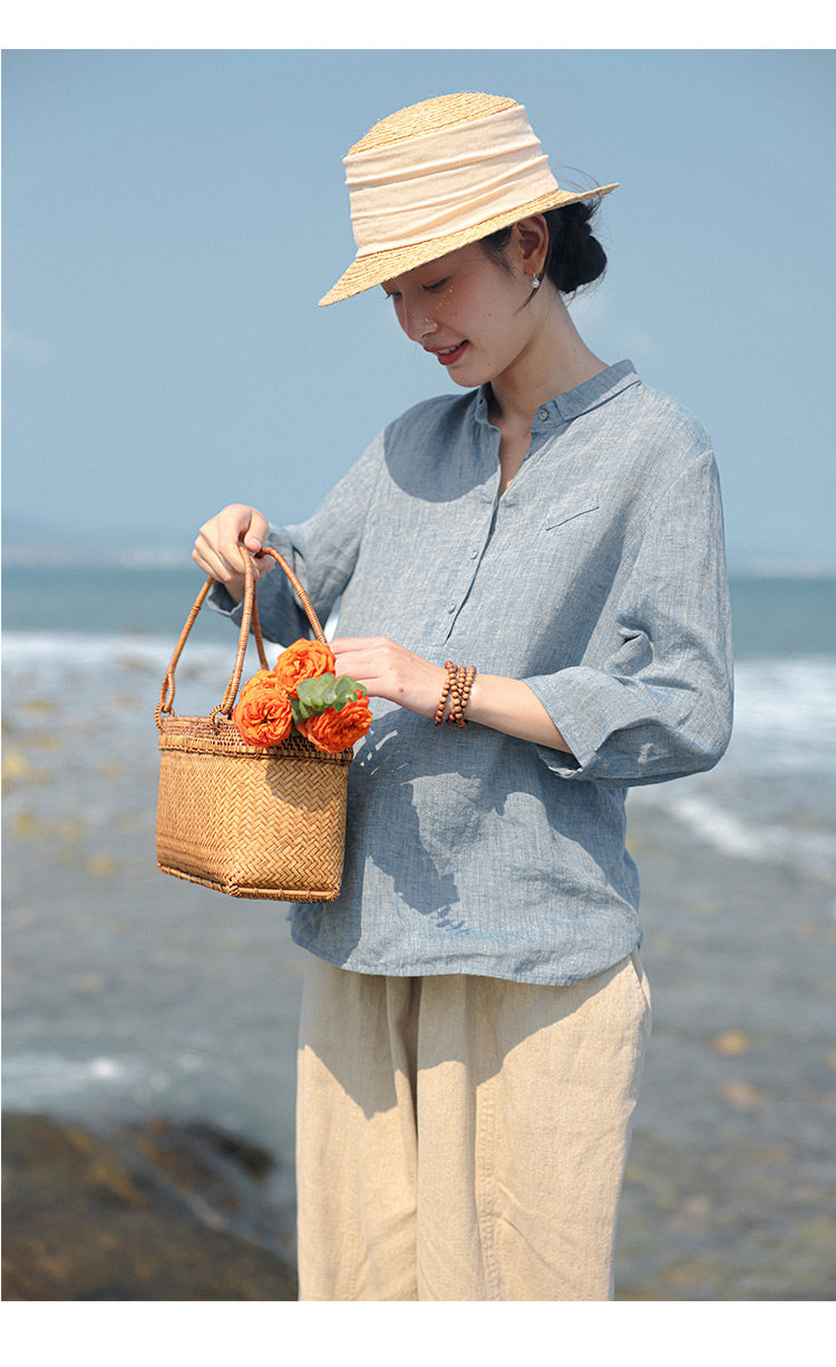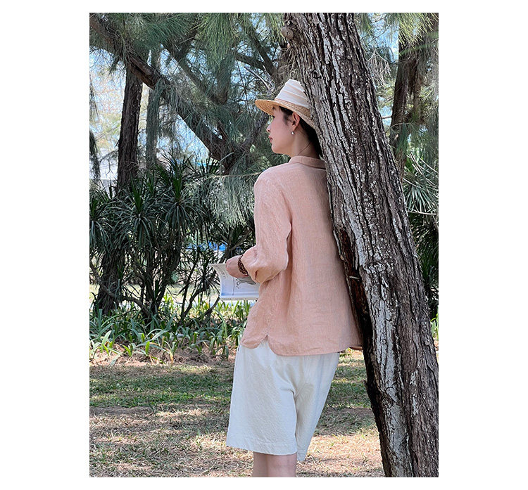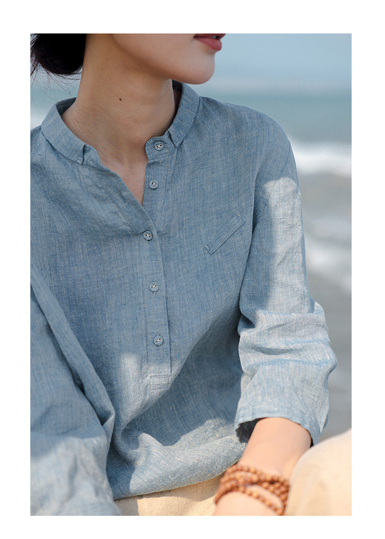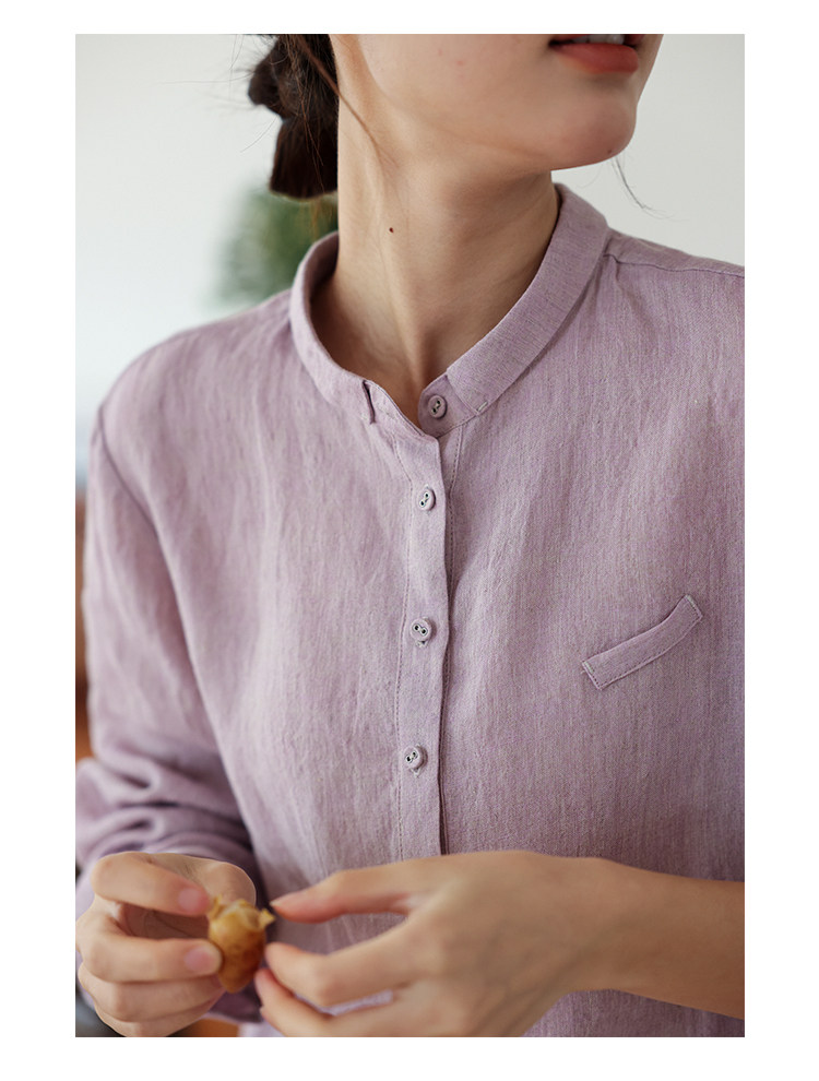 100%法國進口高級色織亞麻襯衫法式寬鬆復古套頭煜安可然原創