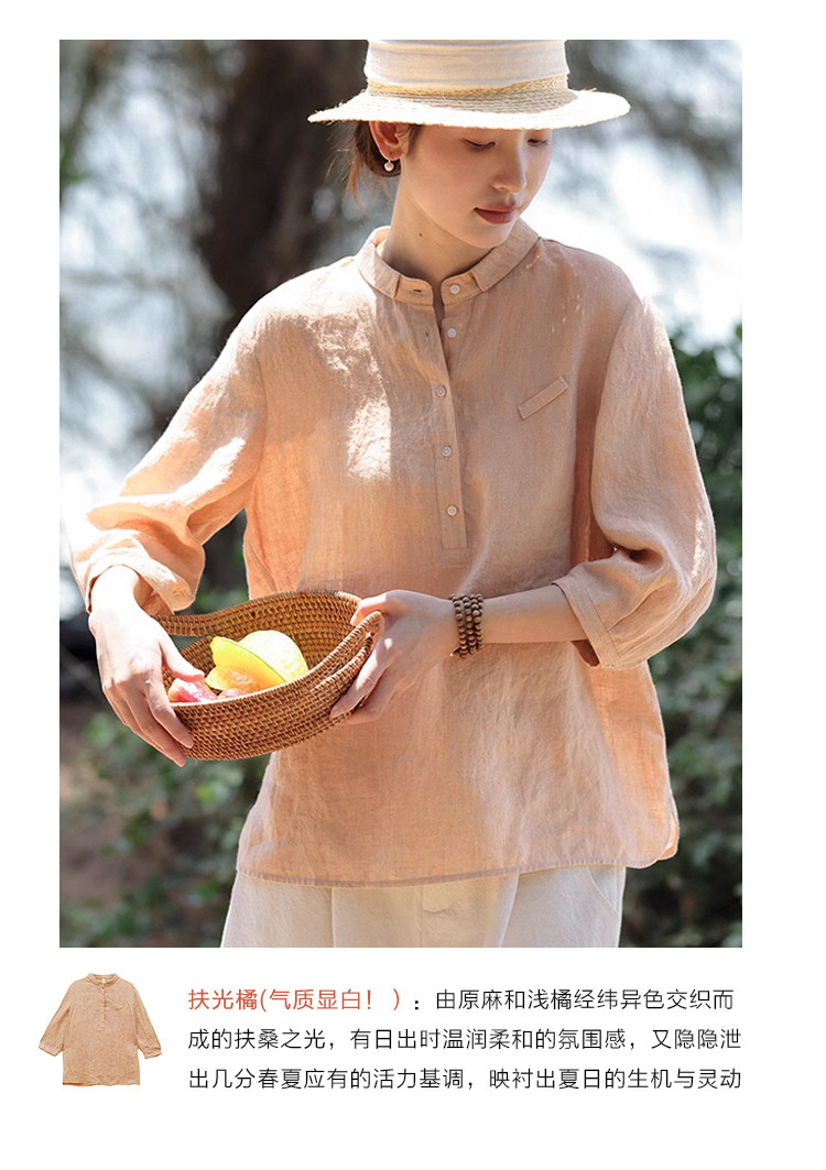 顔色:扶光橘 品月藍 淡繭黃 藤蘿紫(長袖)
