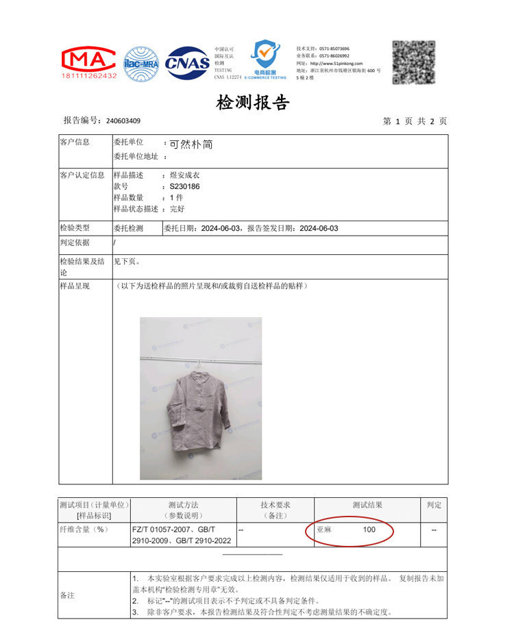| 材質成分 | 亞麻100% |