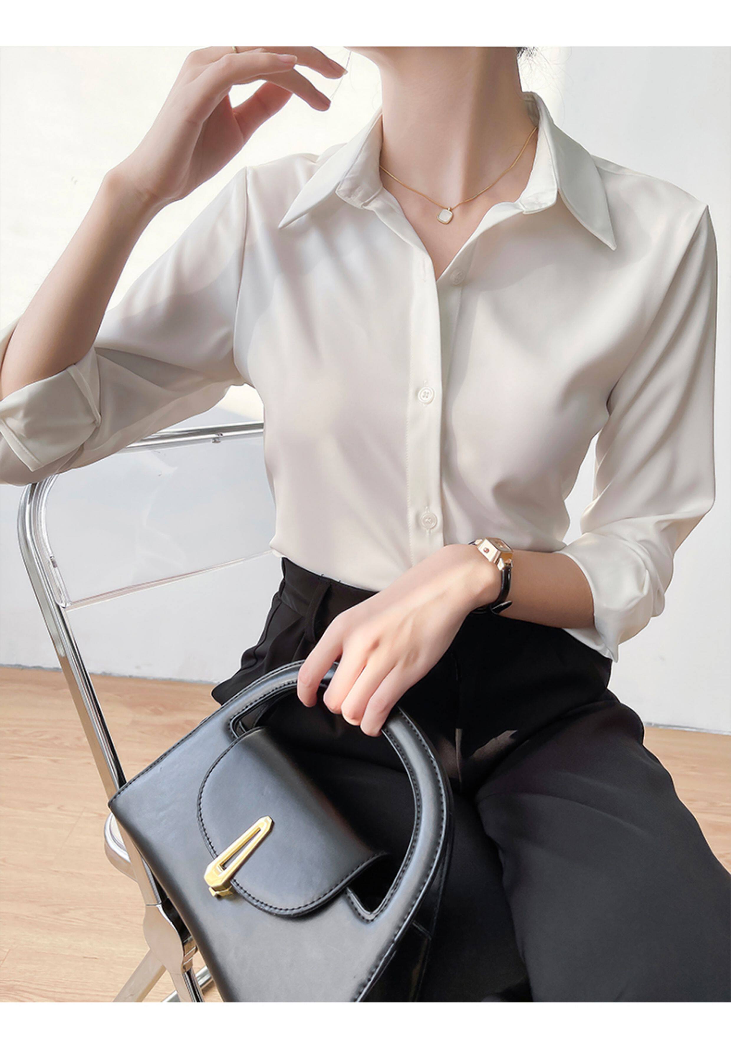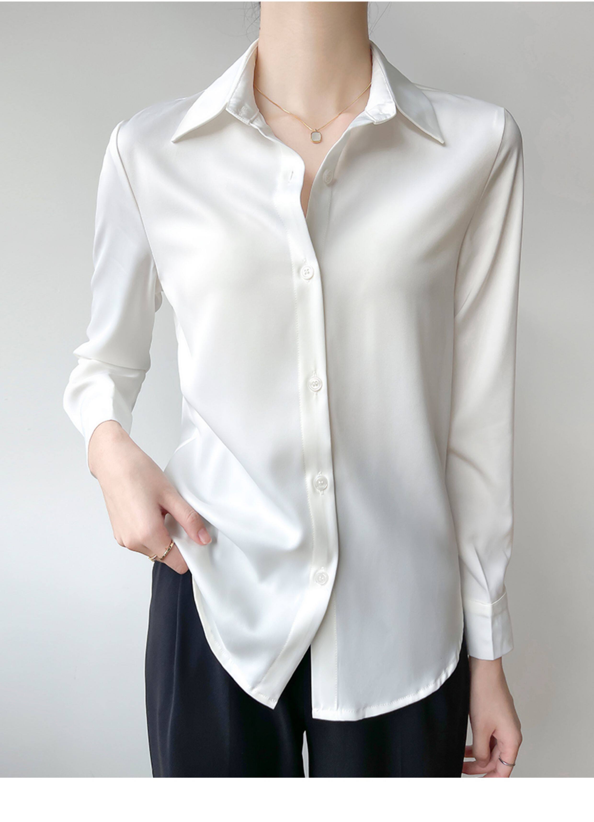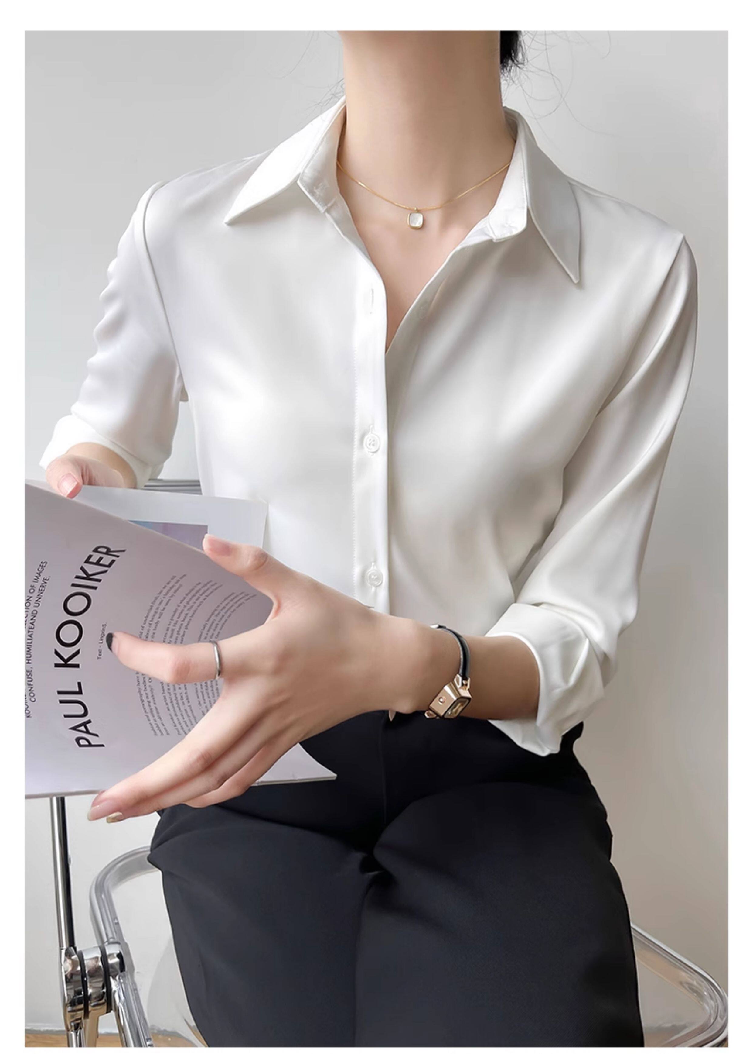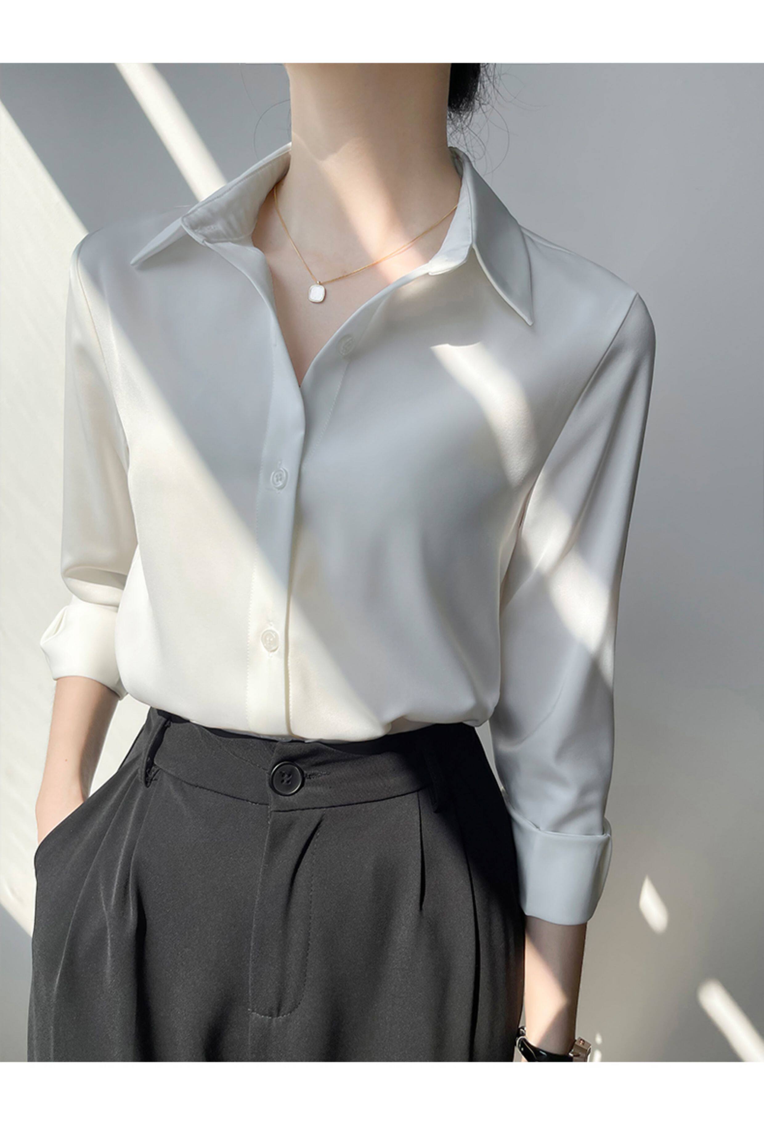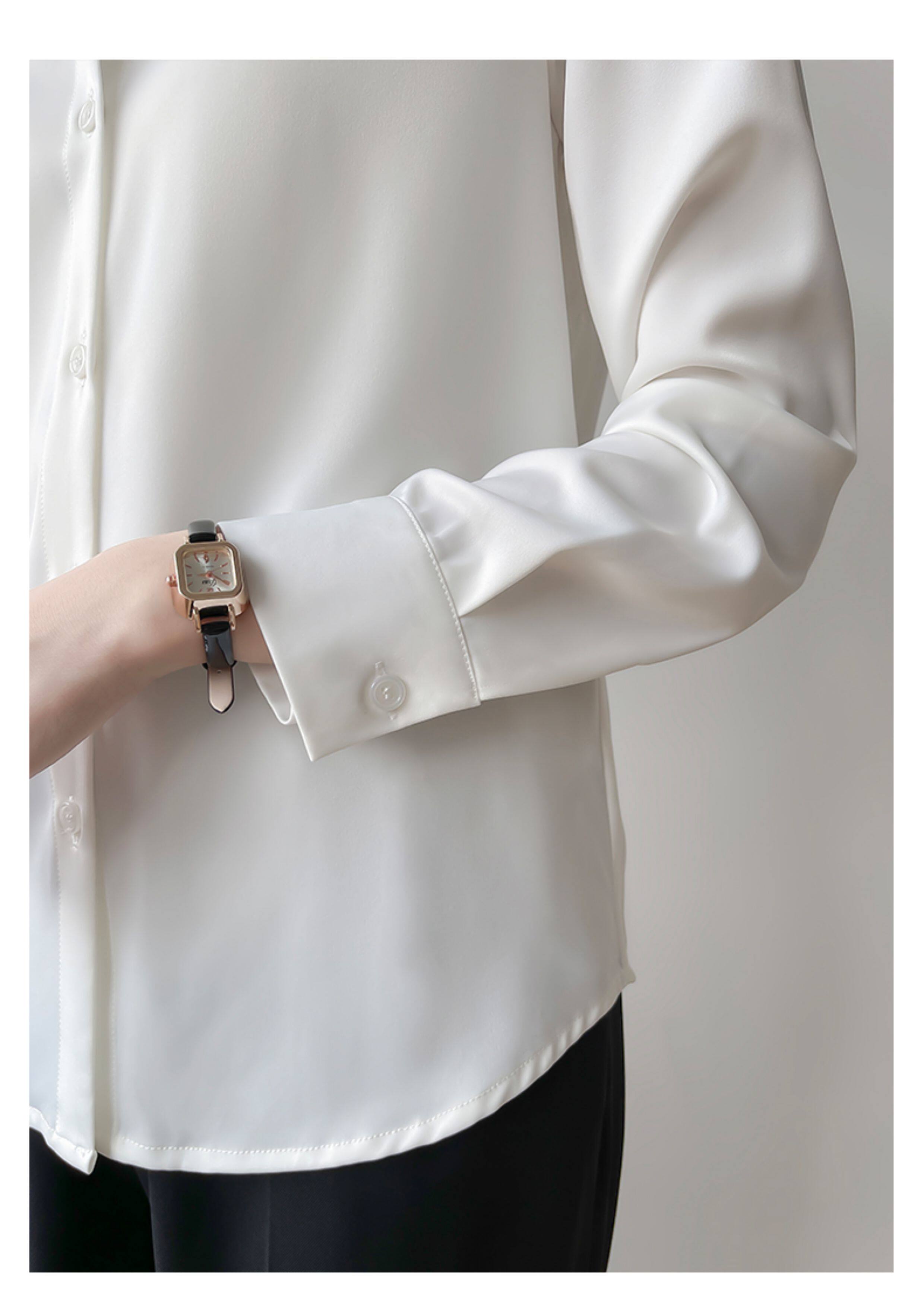 韓帛雅緞面白色襯衫女士內搭打底曡穿通勤職業公務員教資面試上衣