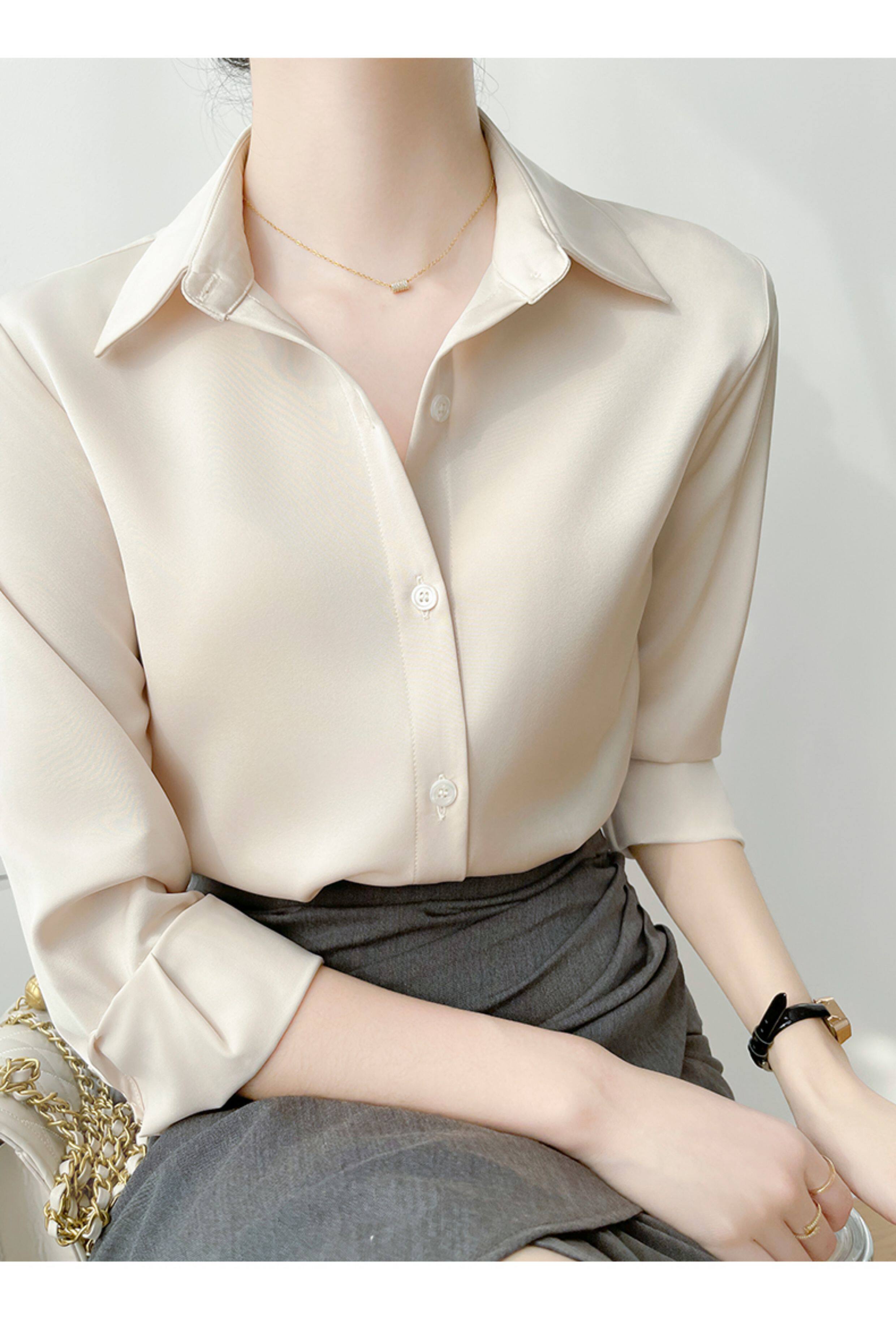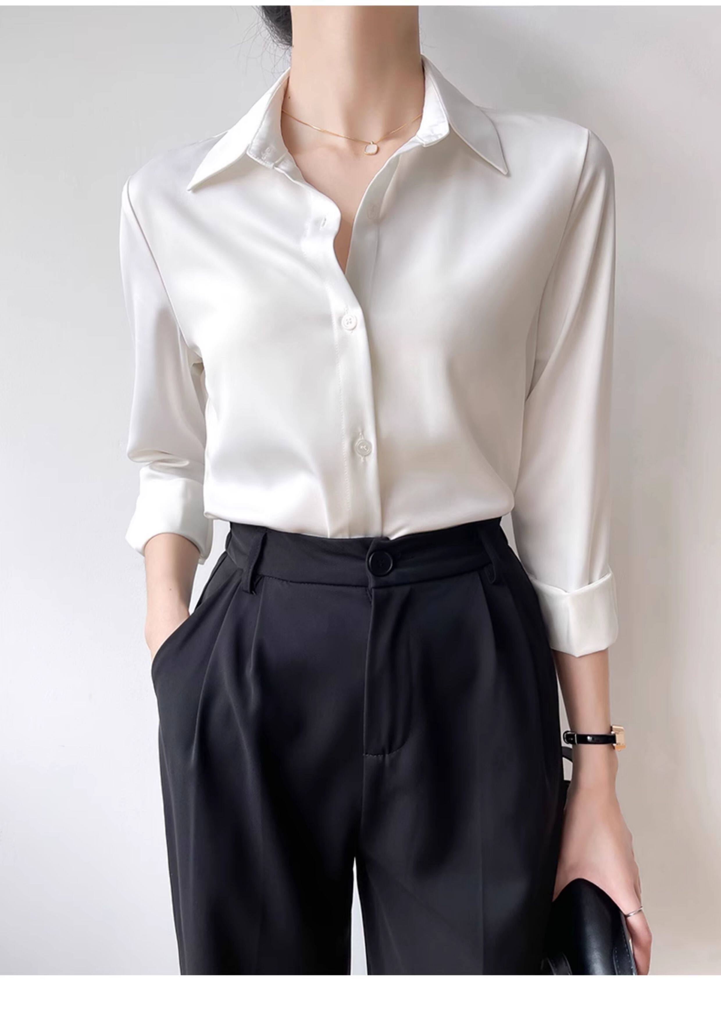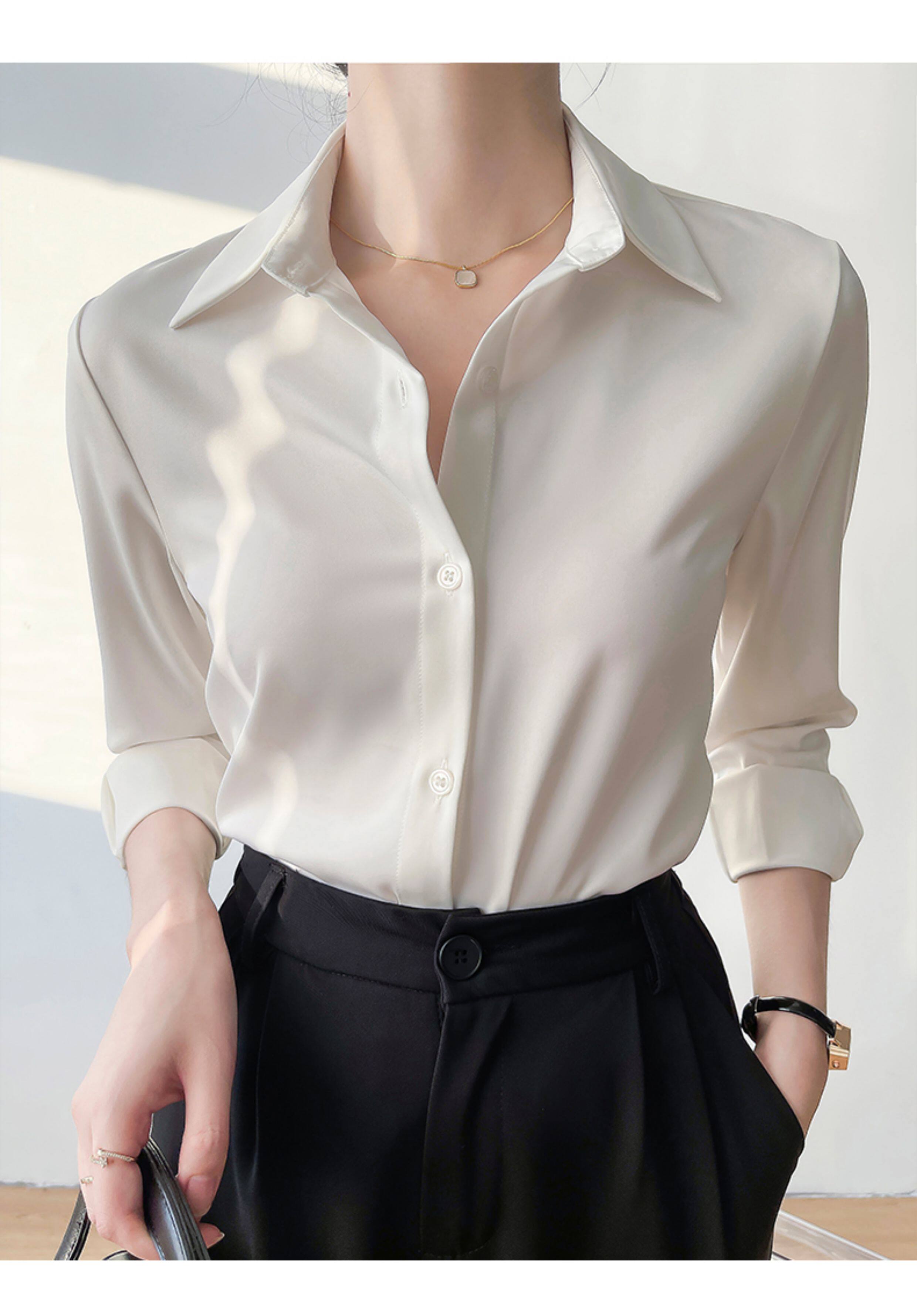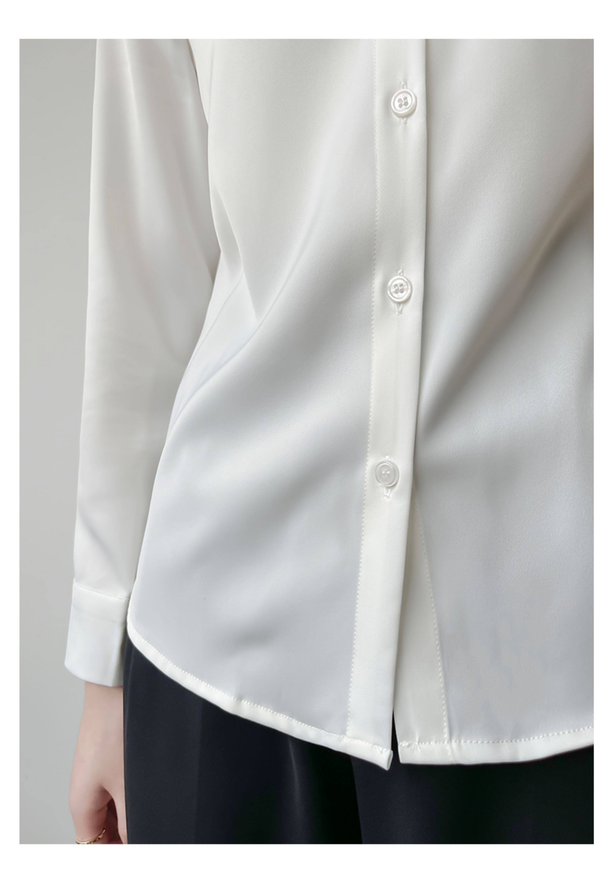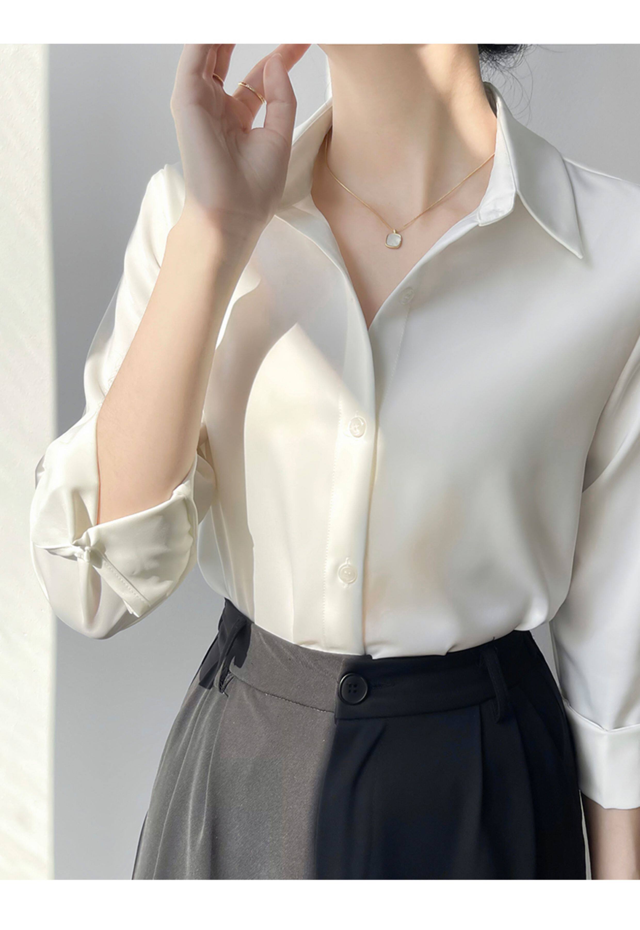 韓帛雅緞面白色襯衫女士內搭打底曡穿通勤職業公務員教資面試上衣