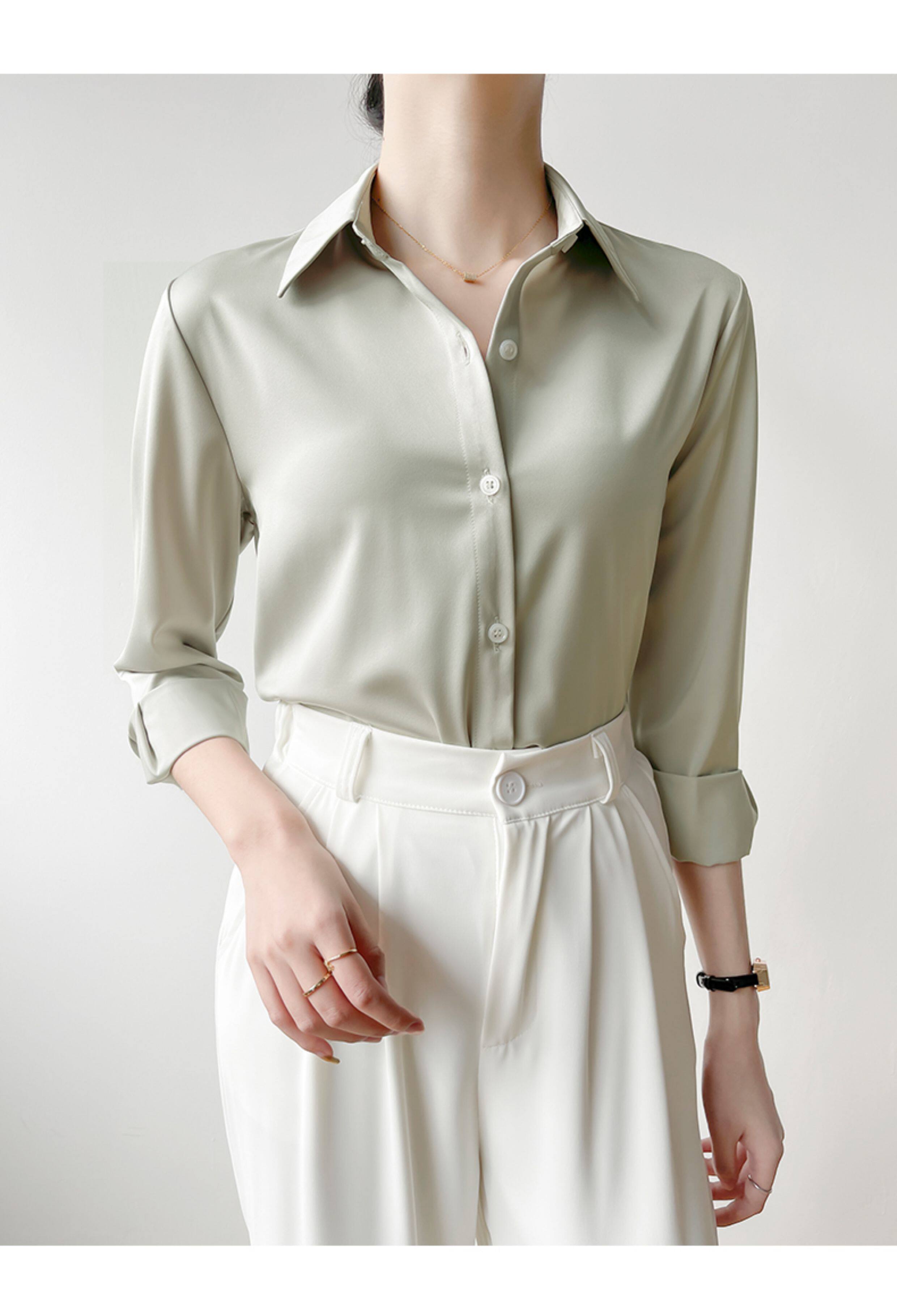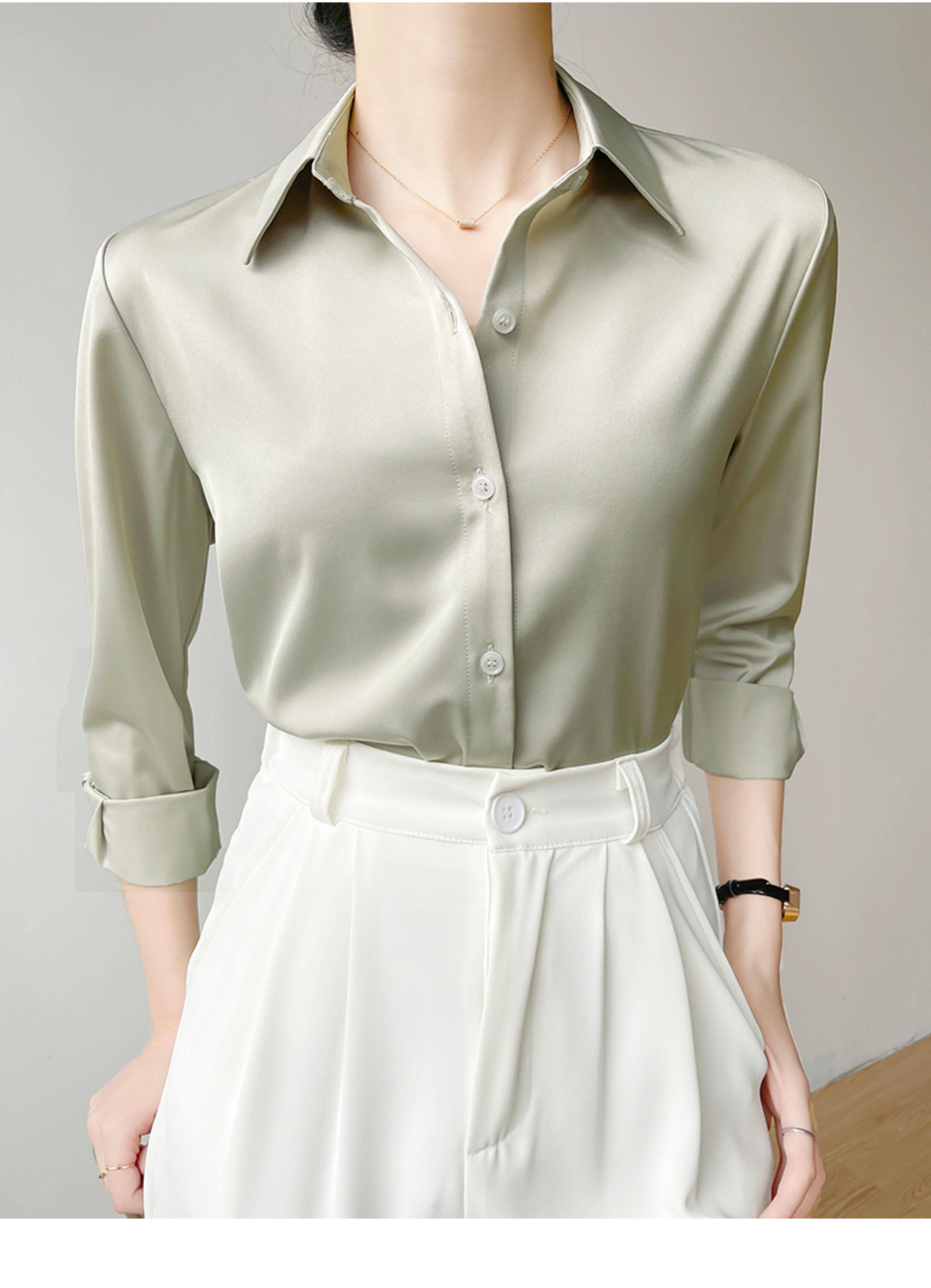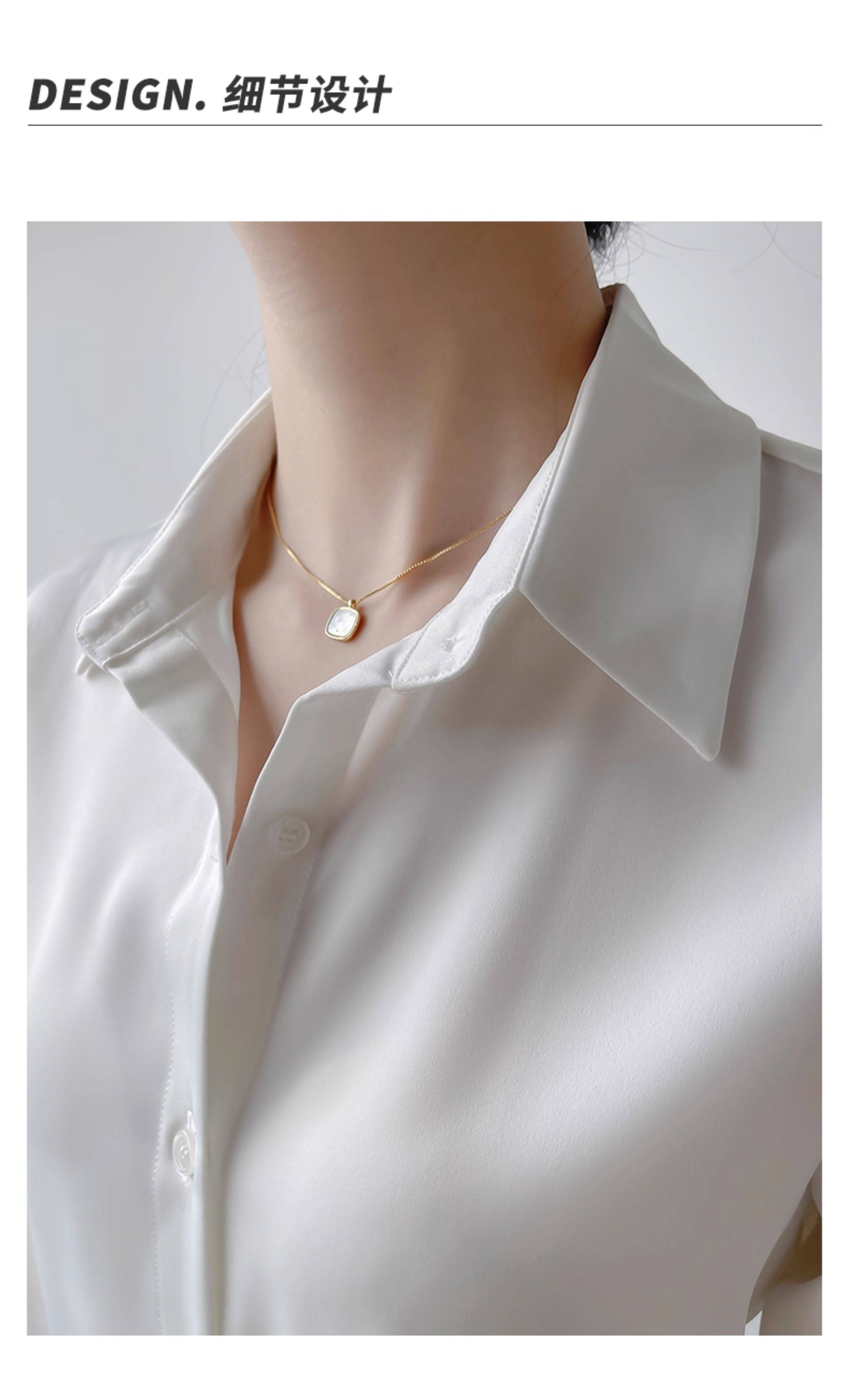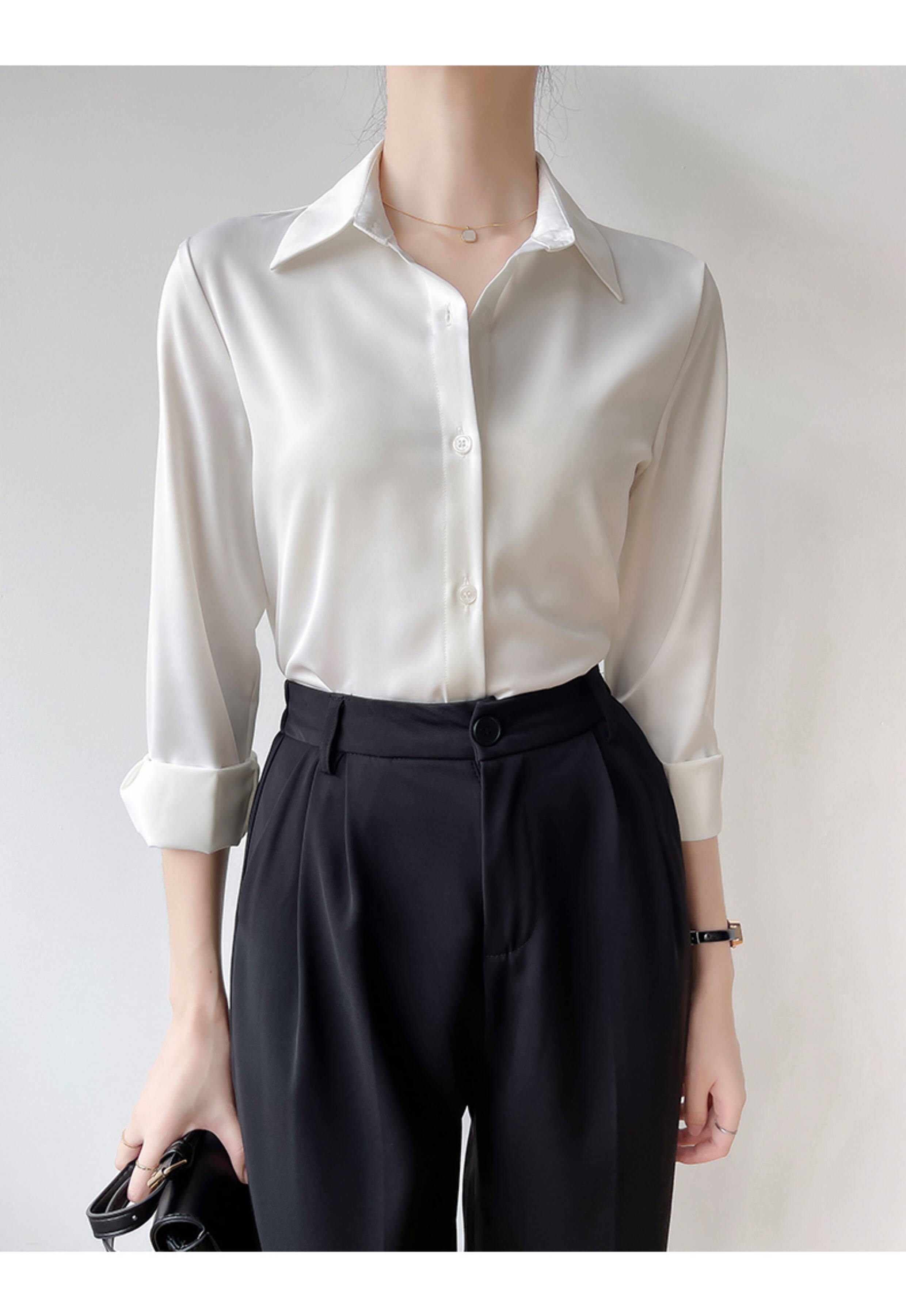 韓帛雅緞面白色襯衫女士內搭打底曡穿通勤職業公務員教資面試上衣