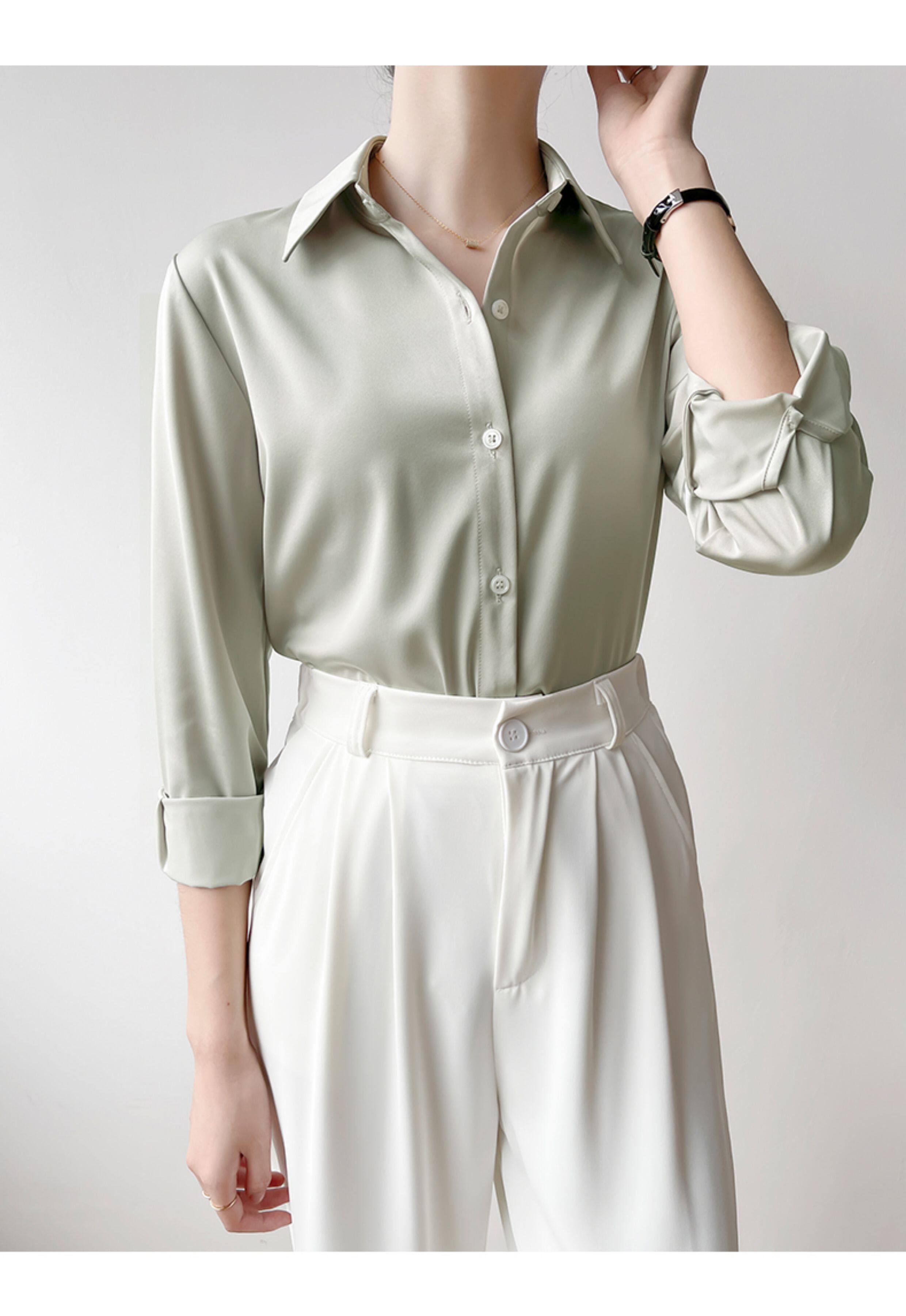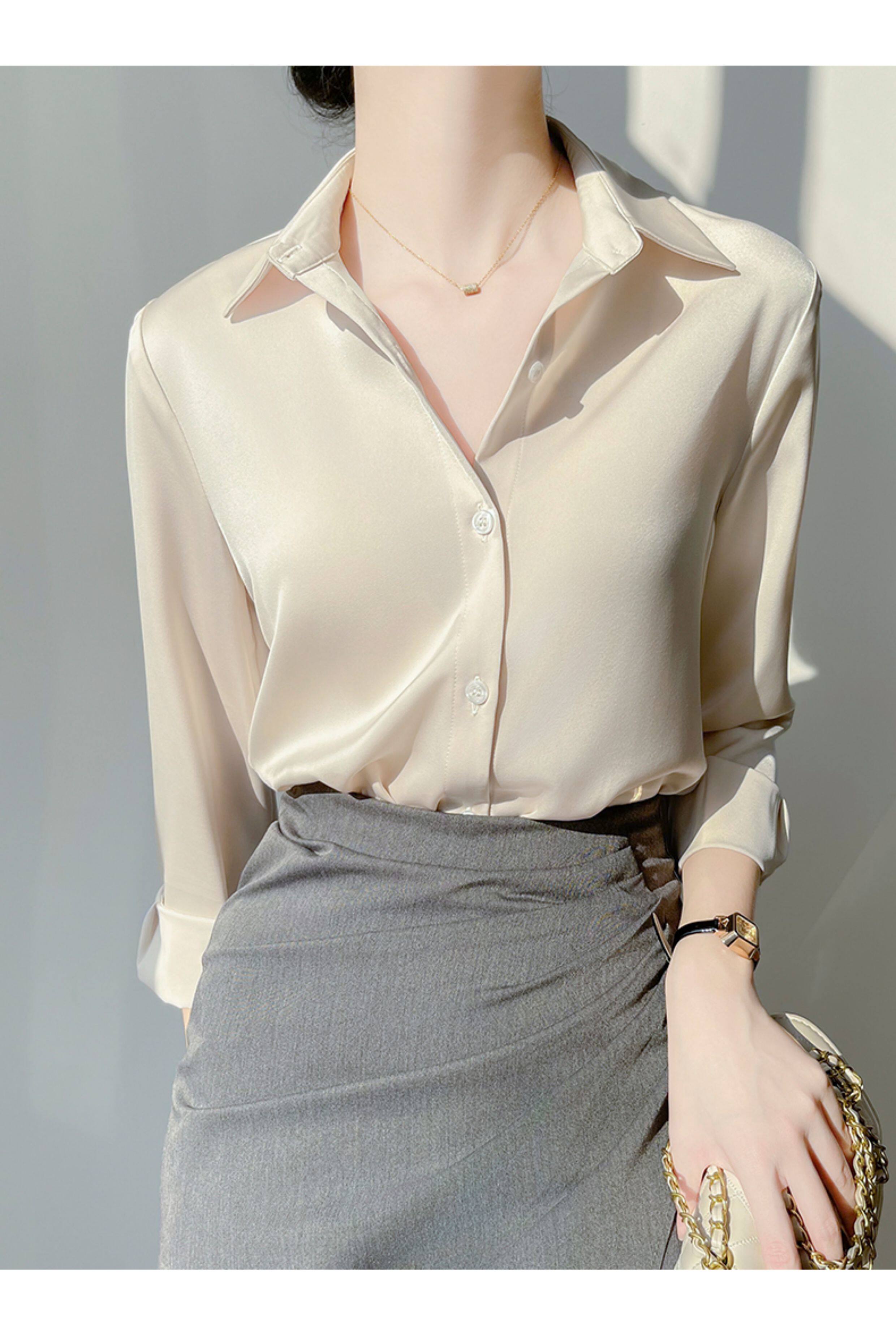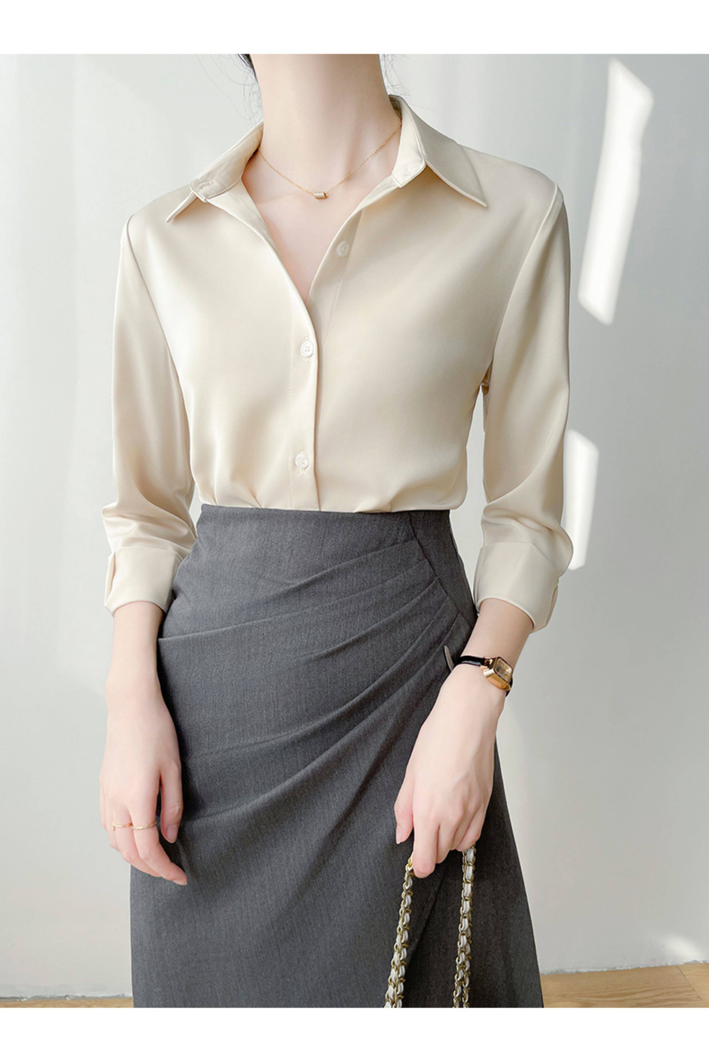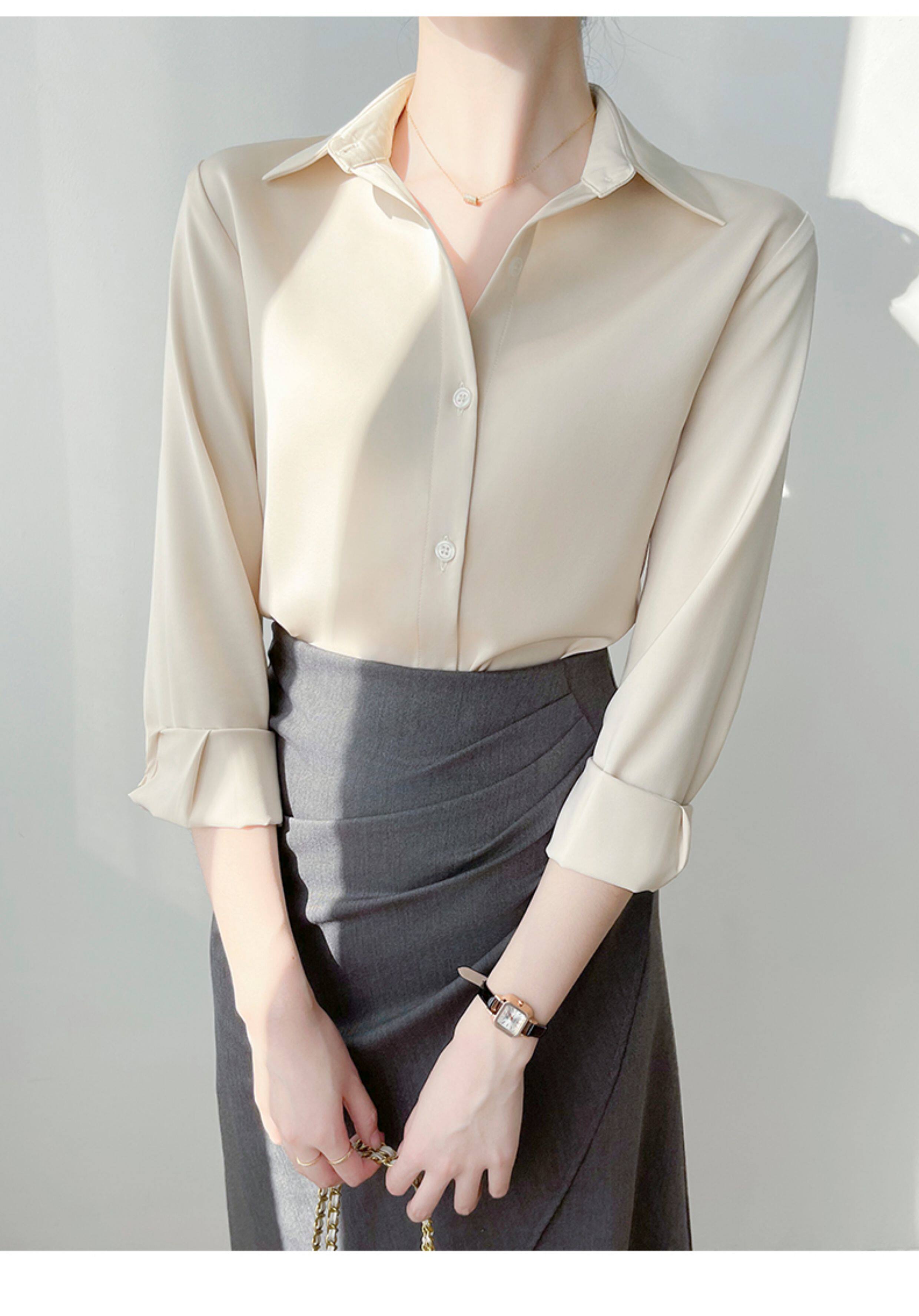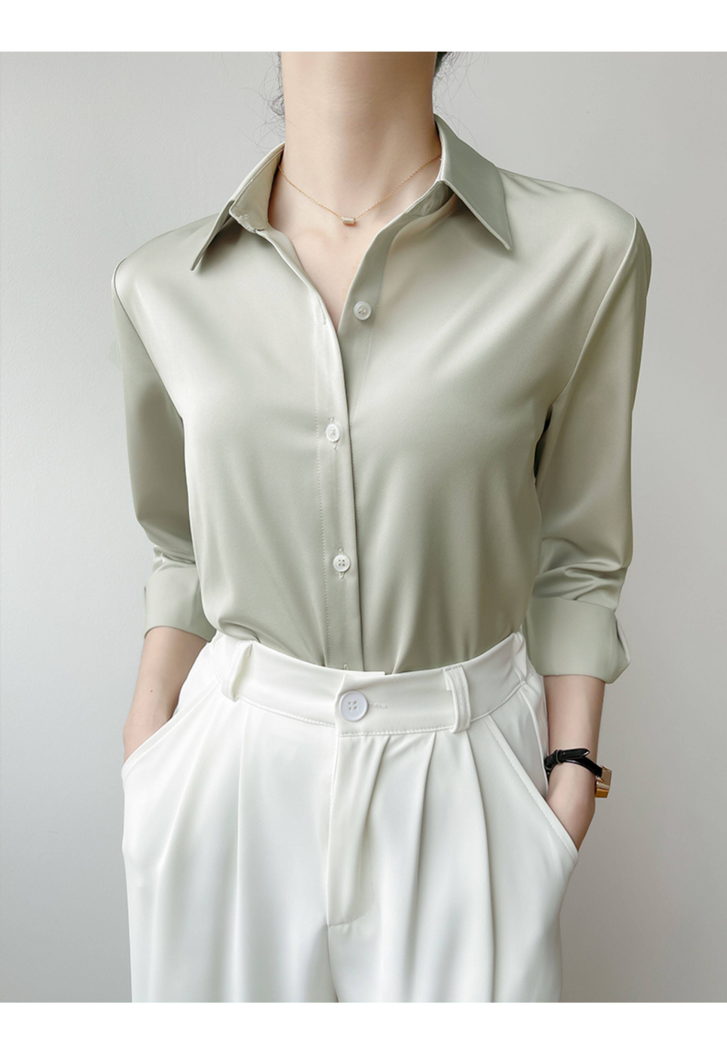 韓帛雅緞面白色襯衫女士內搭打底曡穿通勤職業公務員教資面試上衣