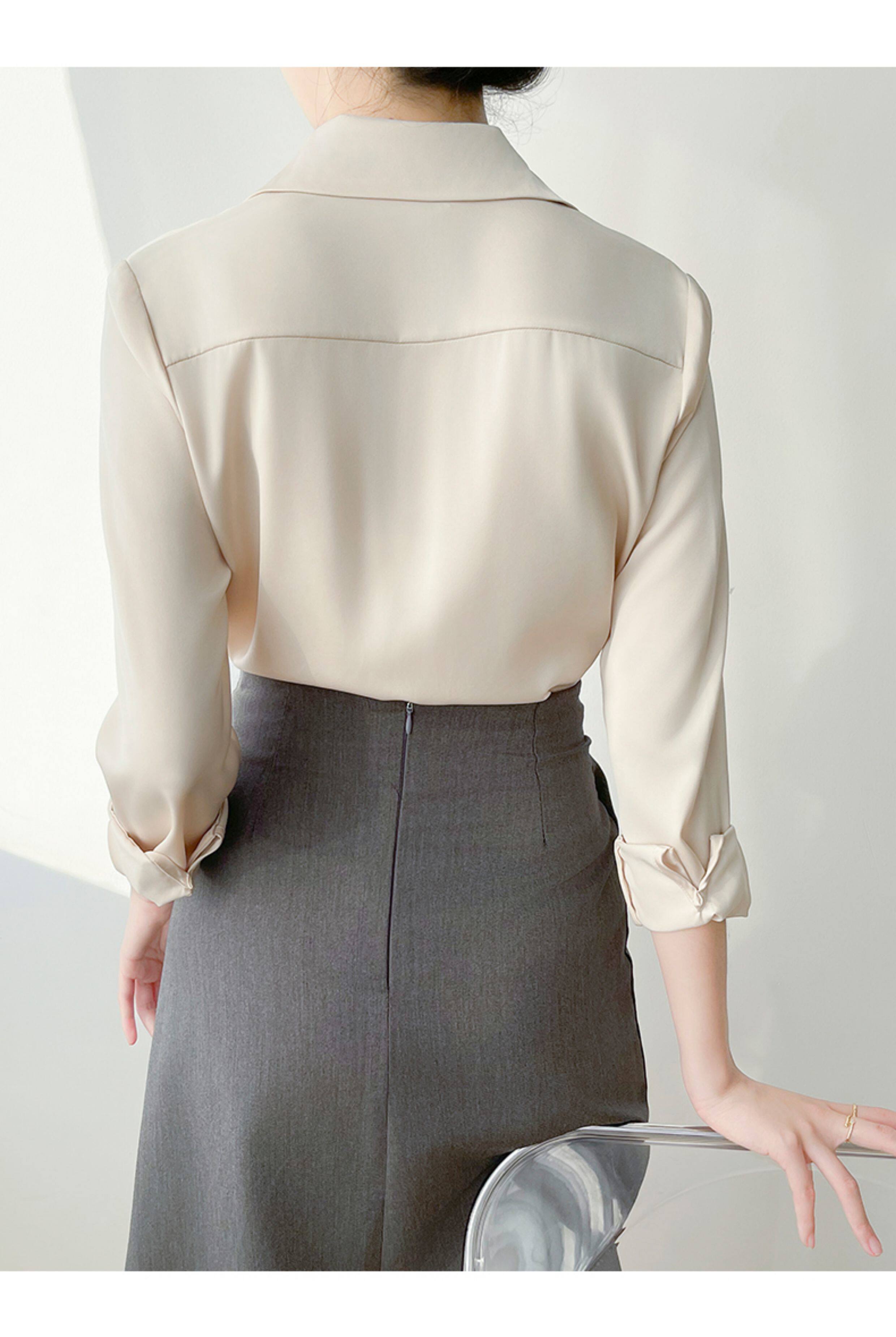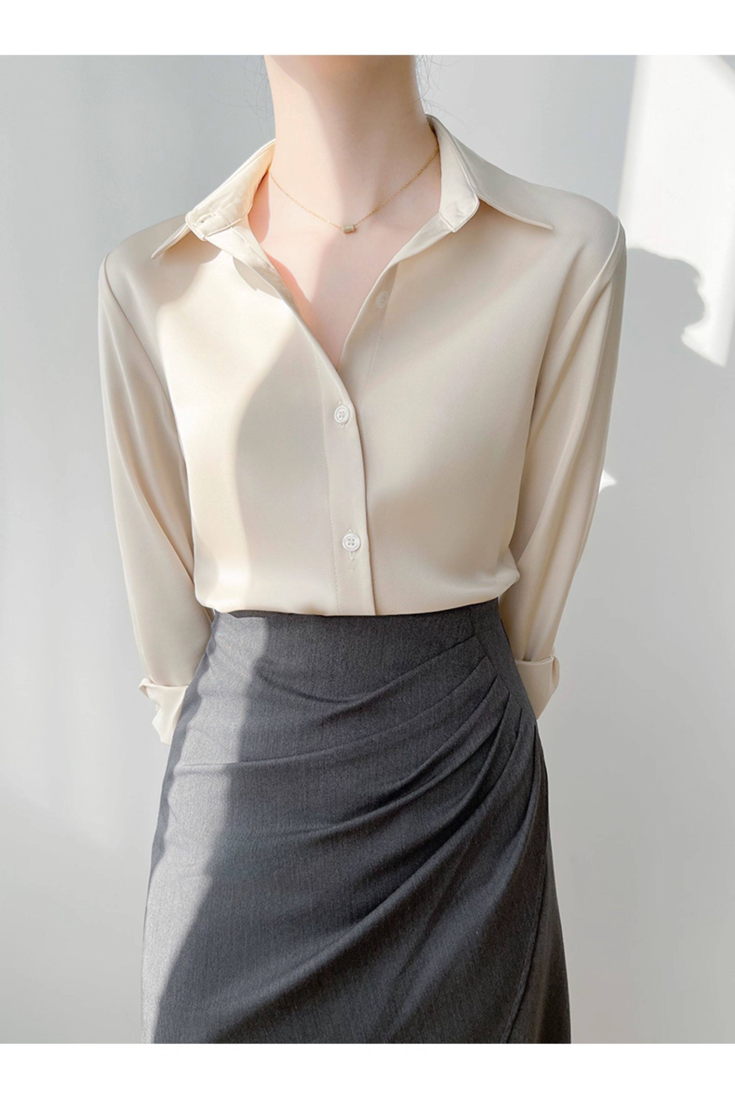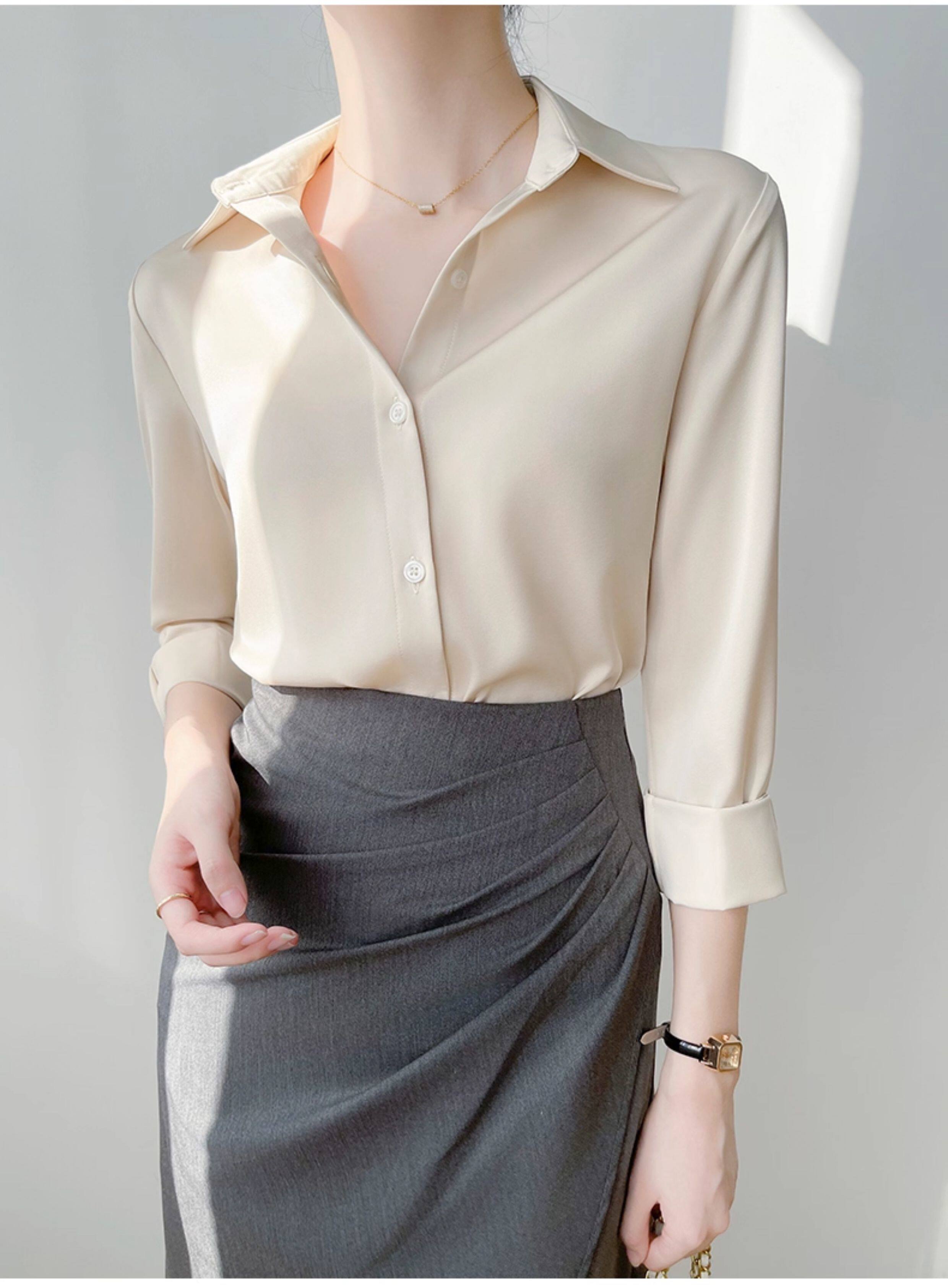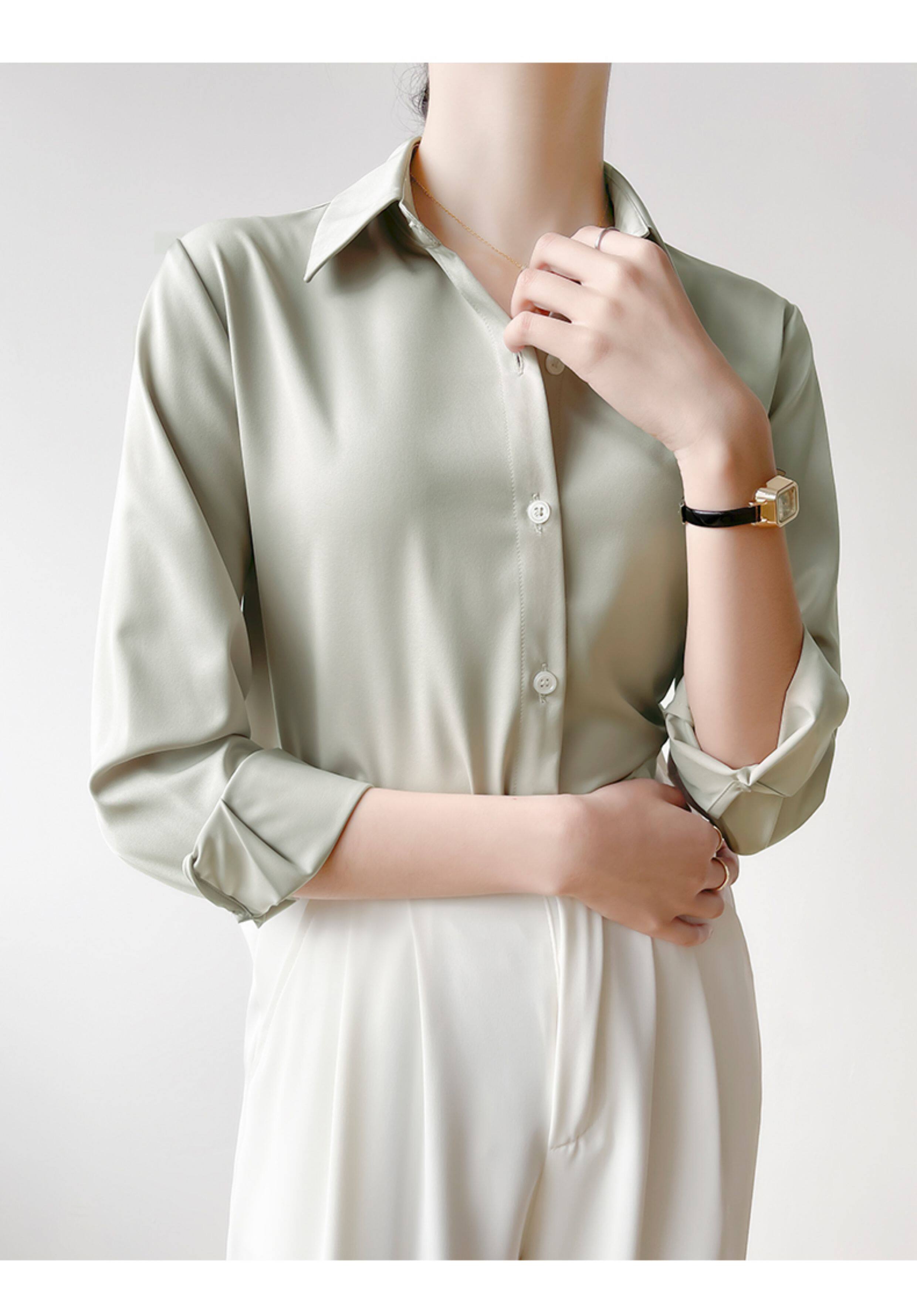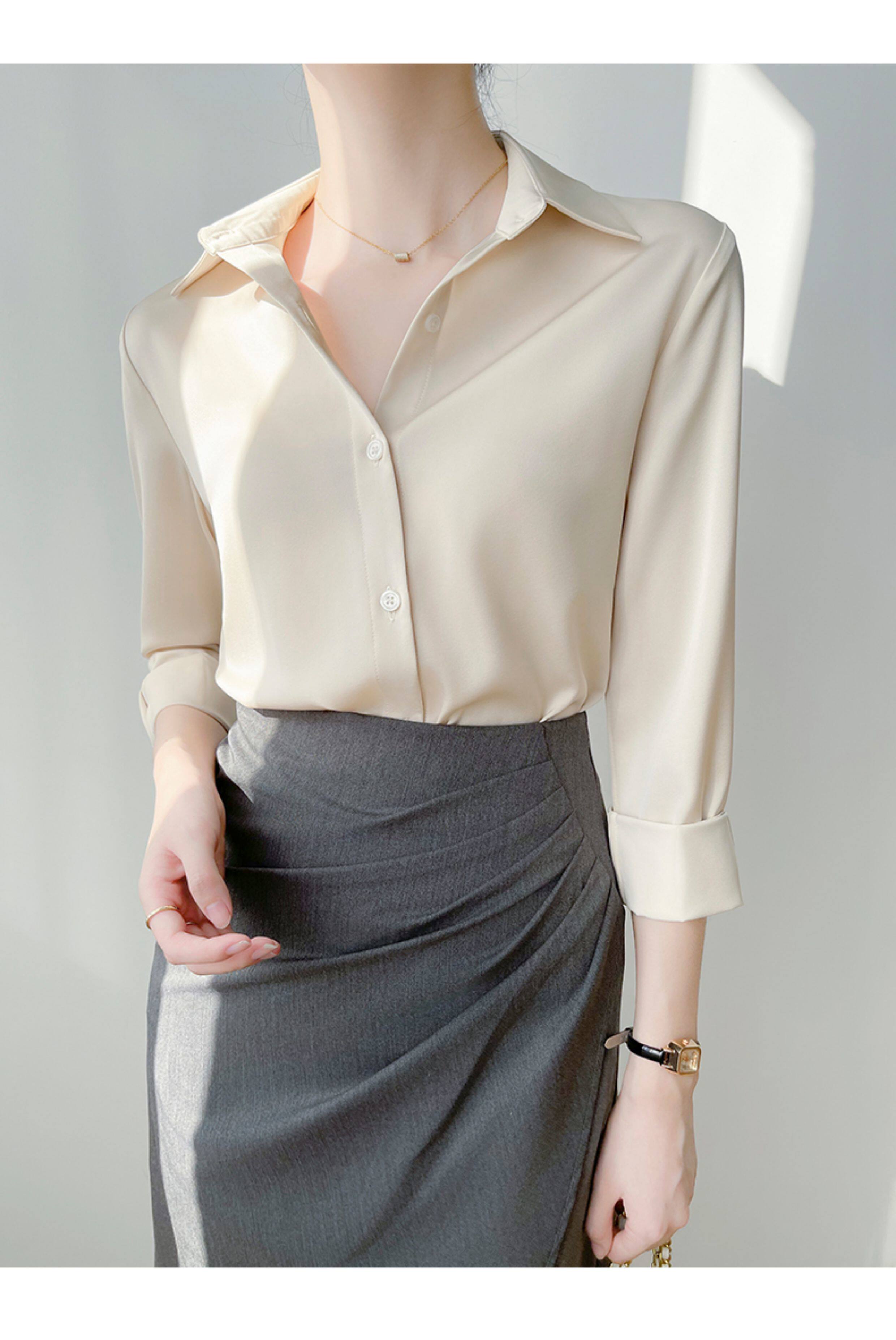 韓帛雅緞面白色襯衫女士內搭打底曡穿通勤職業公務員教資面試上衣