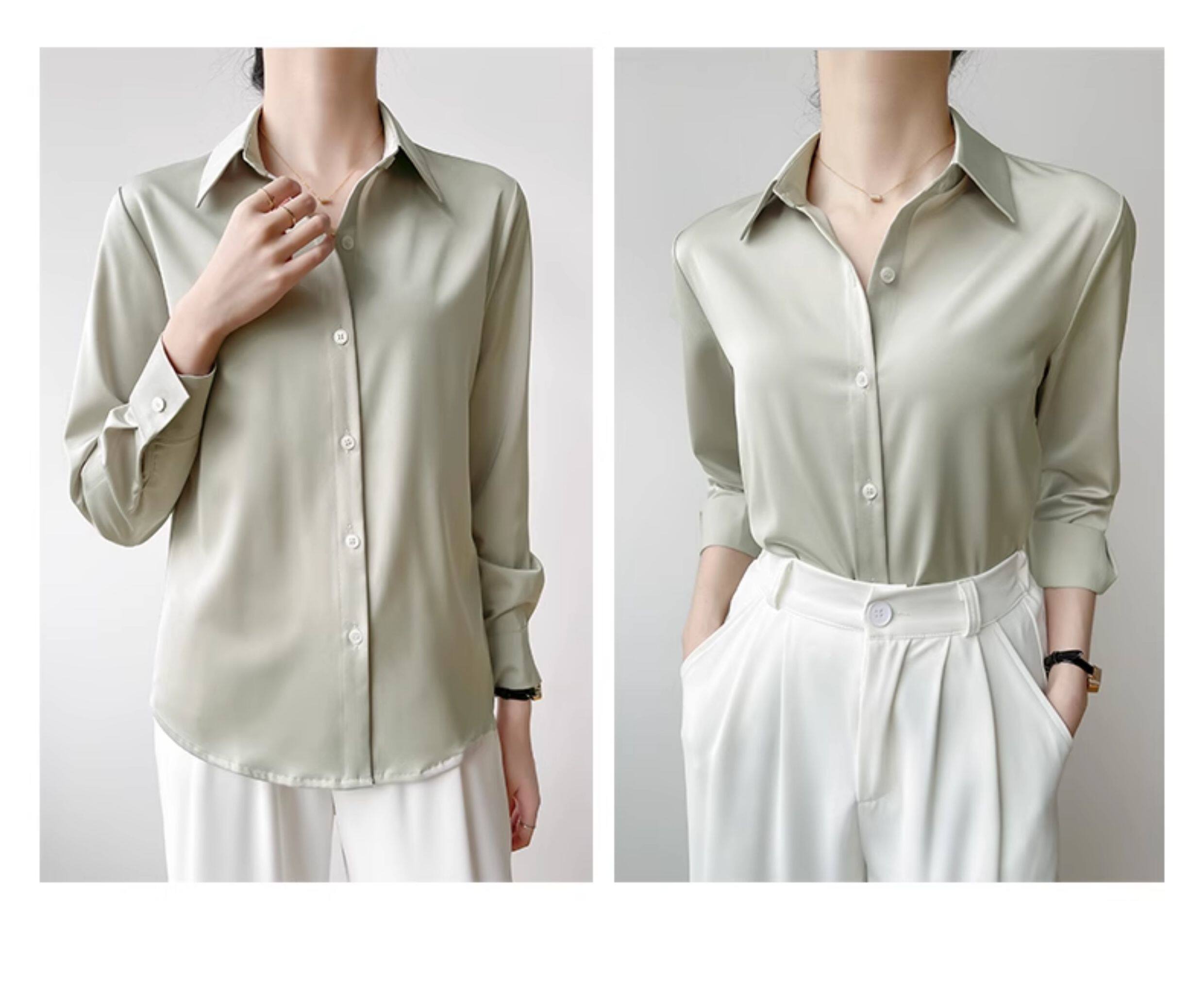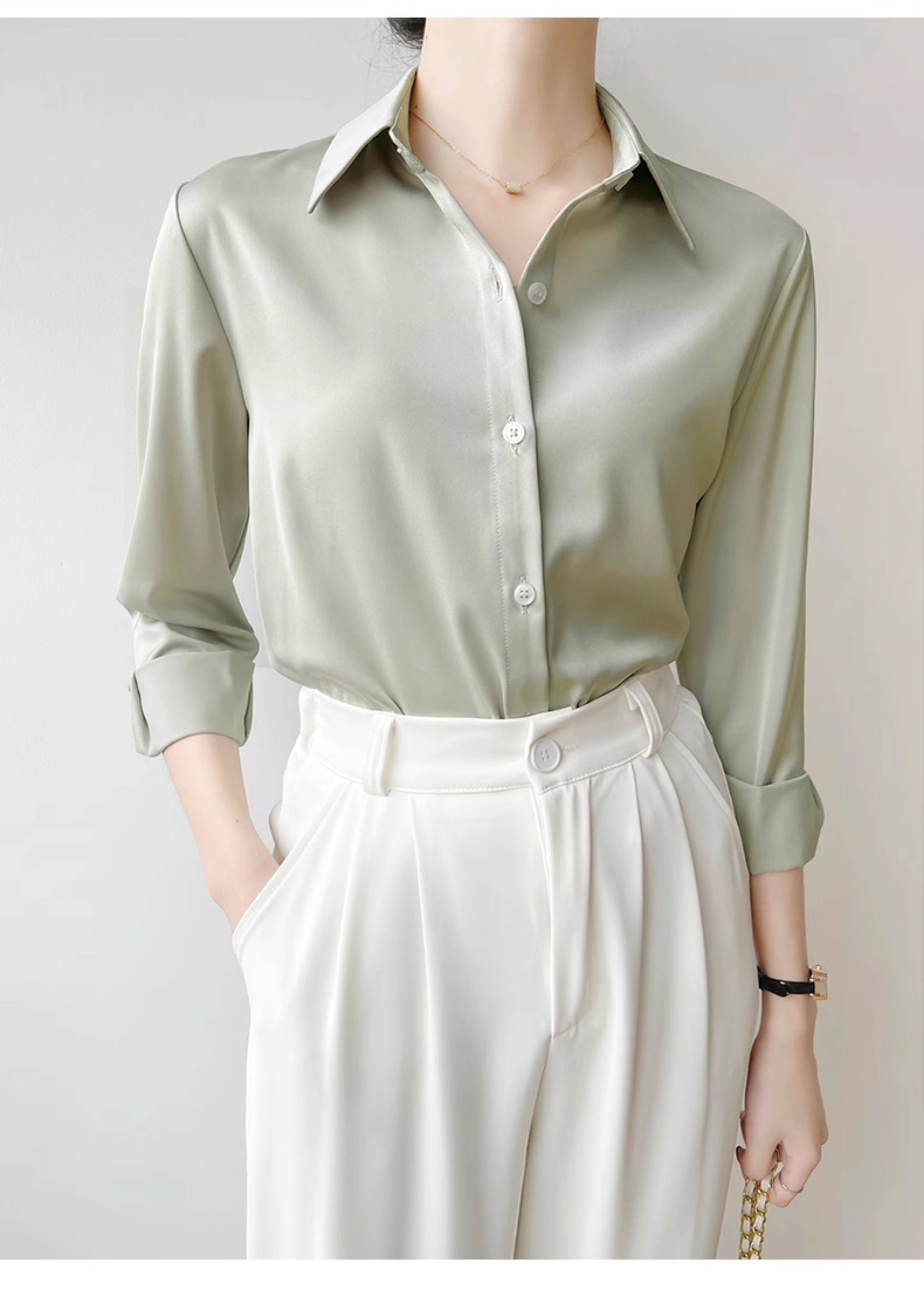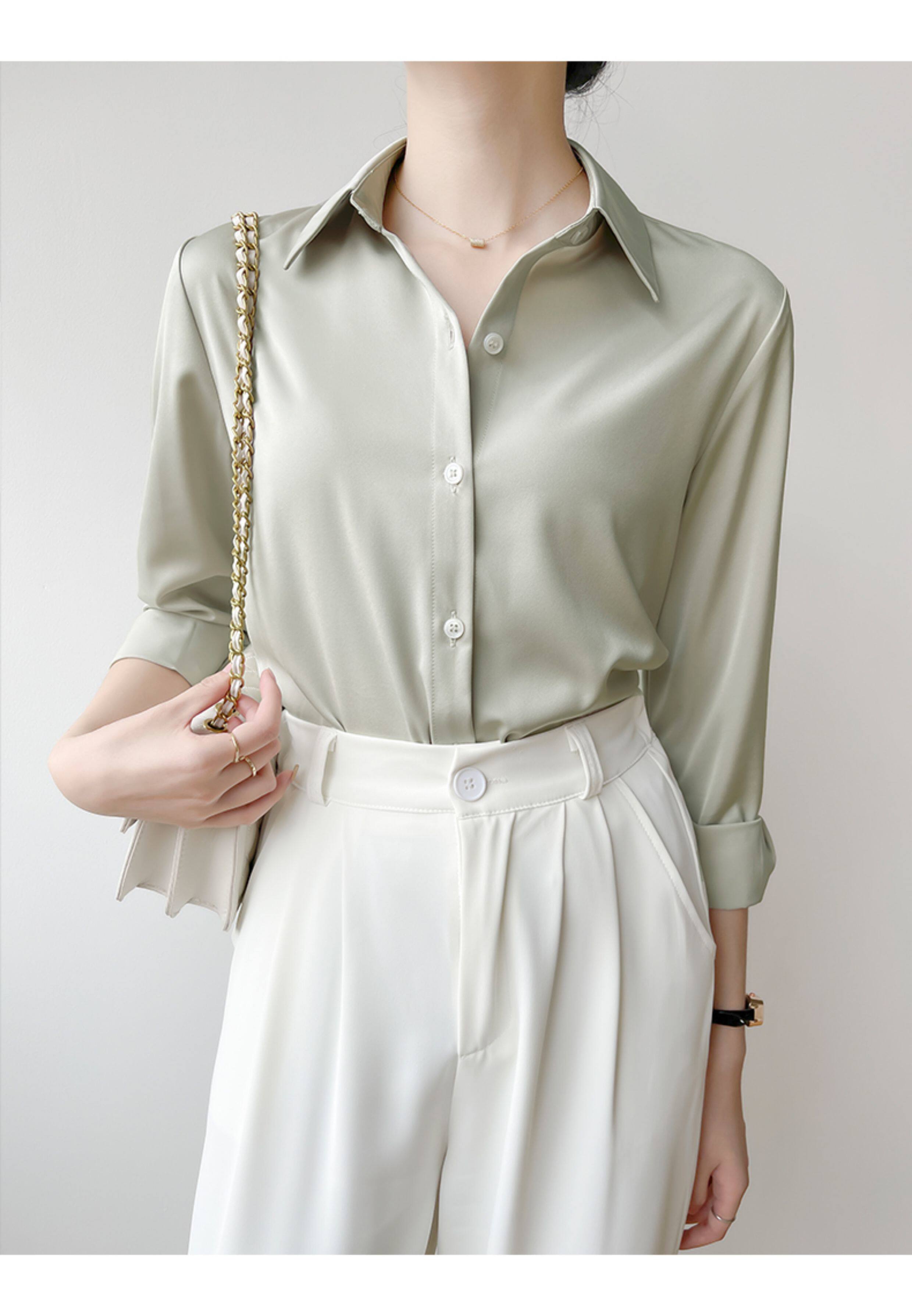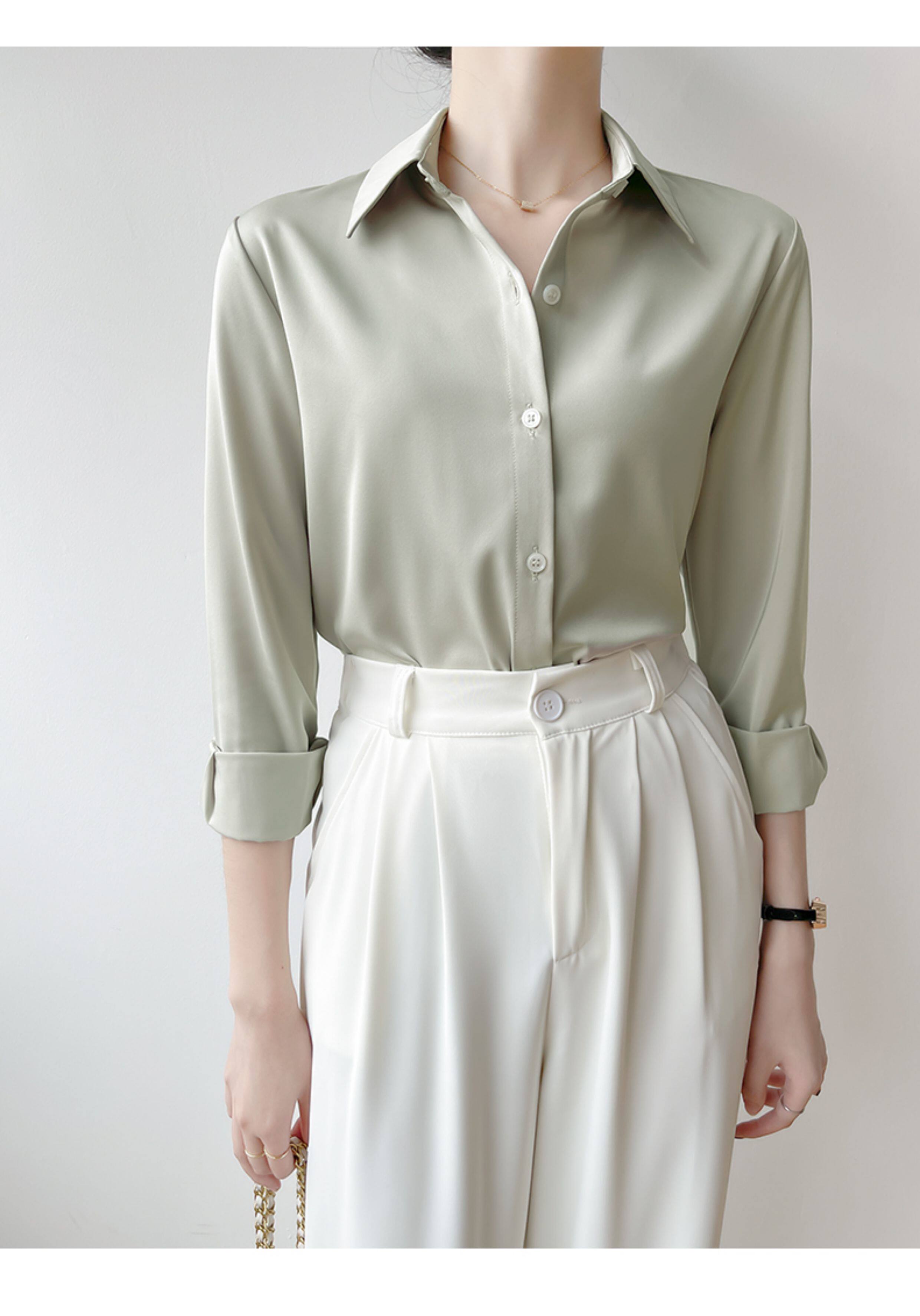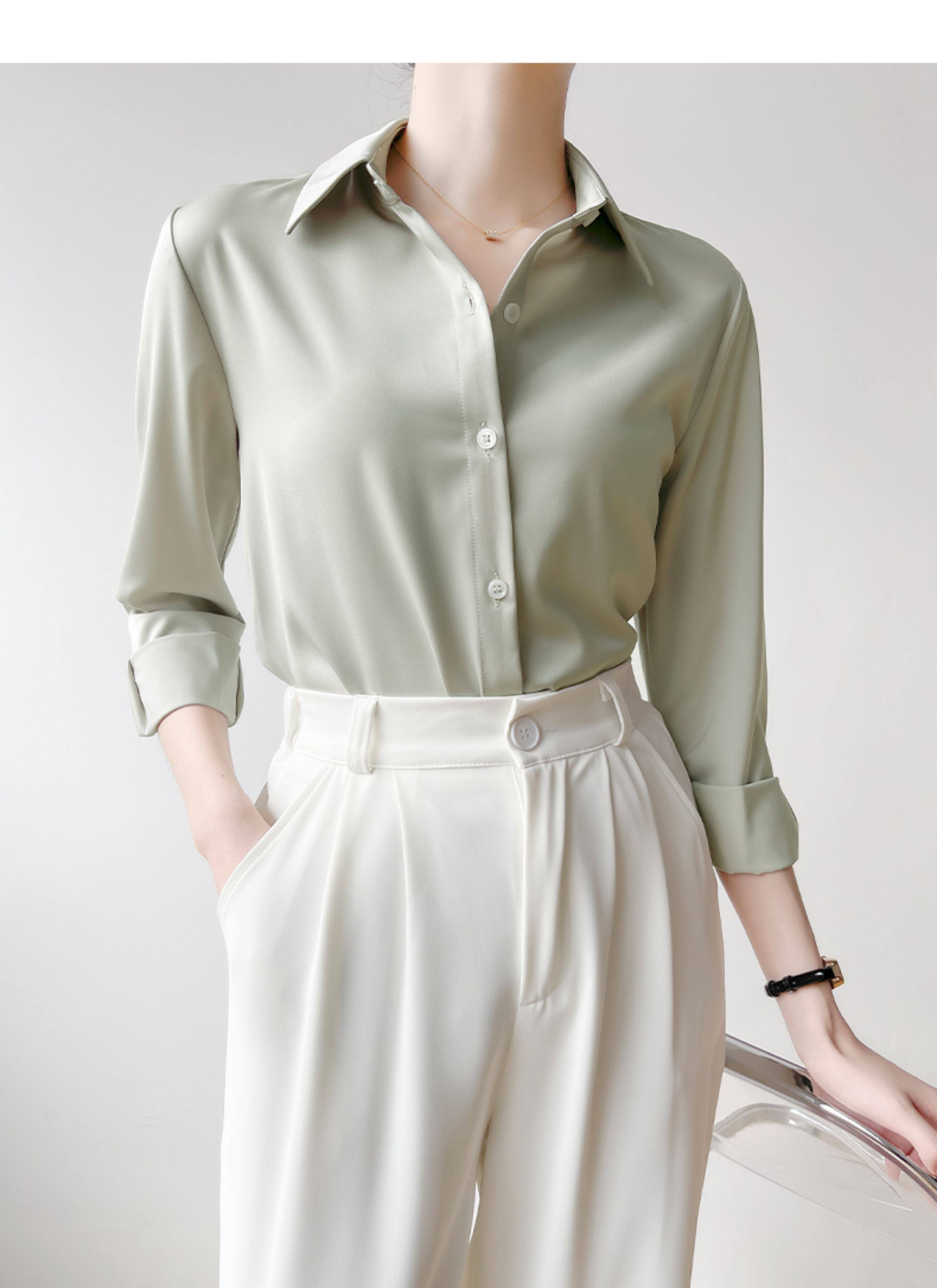 韓帛雅緞面白色襯衫女士內搭打底曡穿通勤職業公務員教資面試上衣