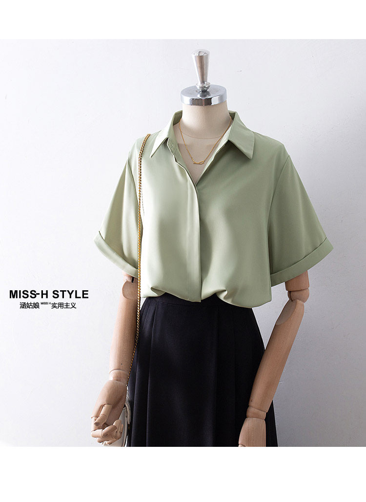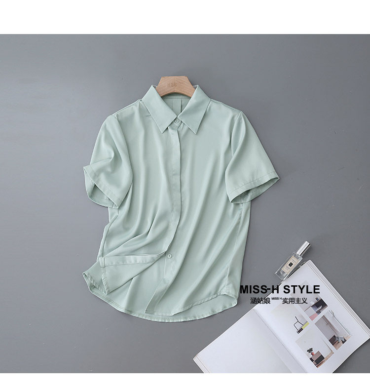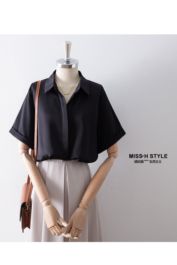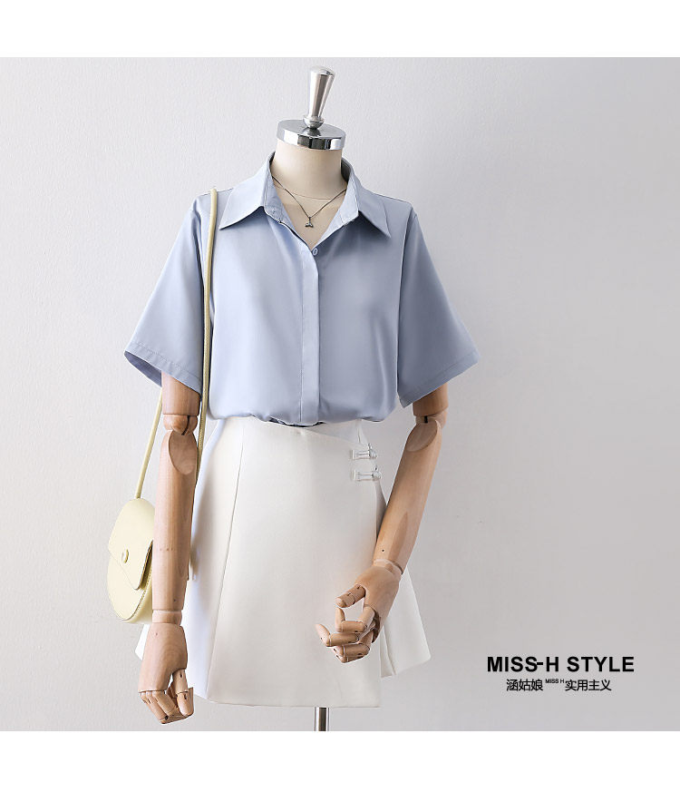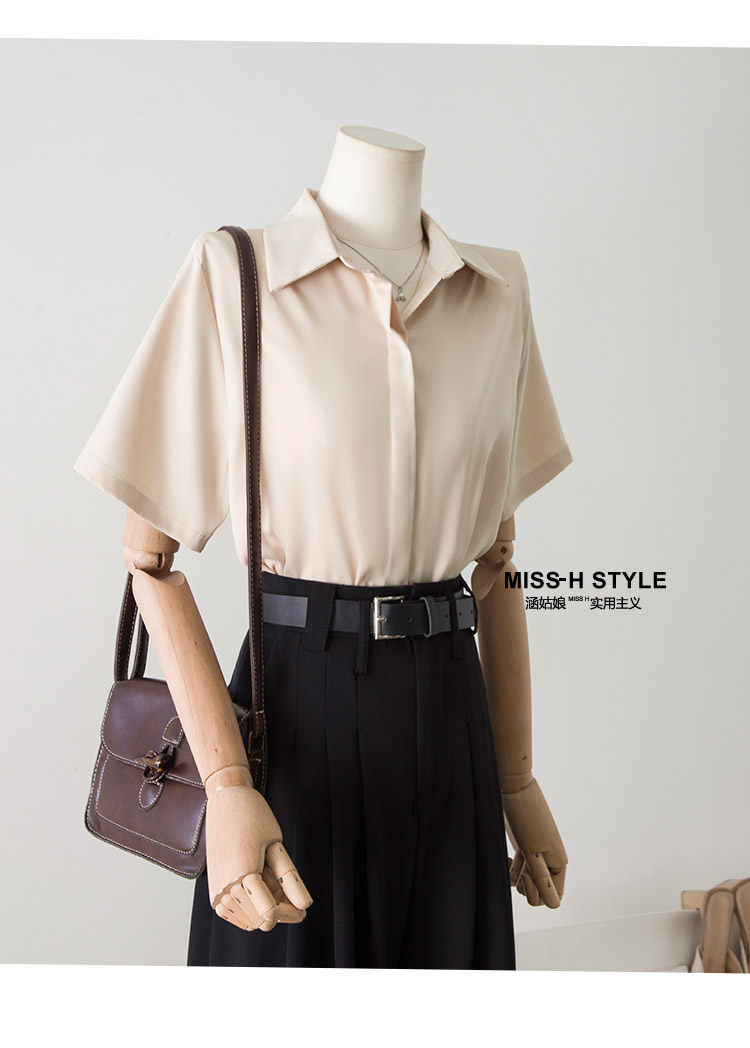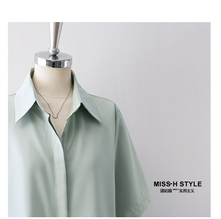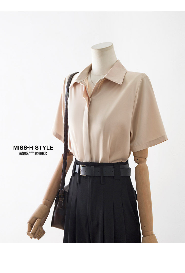 暗門襟短袖襯衫女2025夏季新款寬鬆顯瘦職業通勤百搭韓版緞面襯衣
