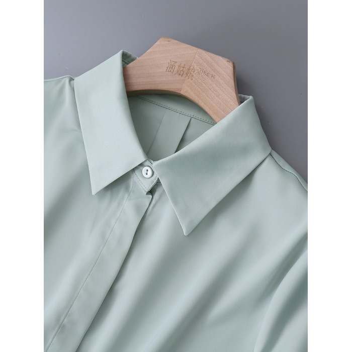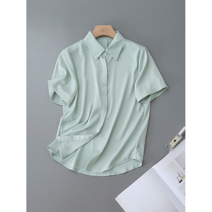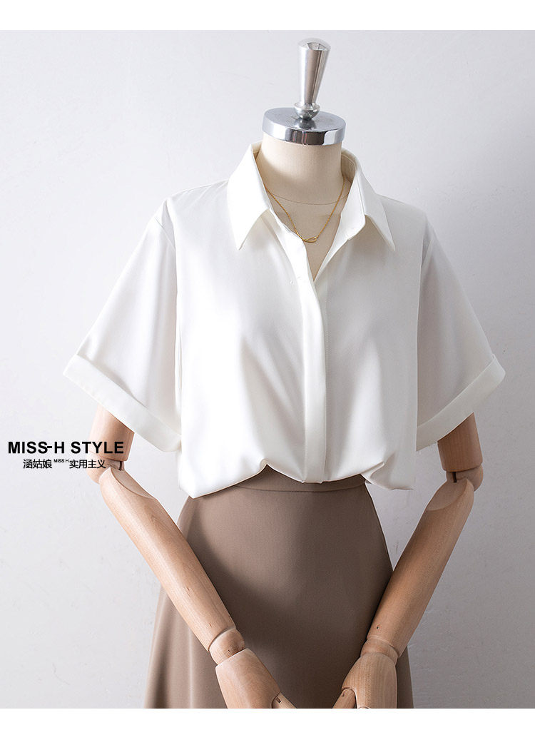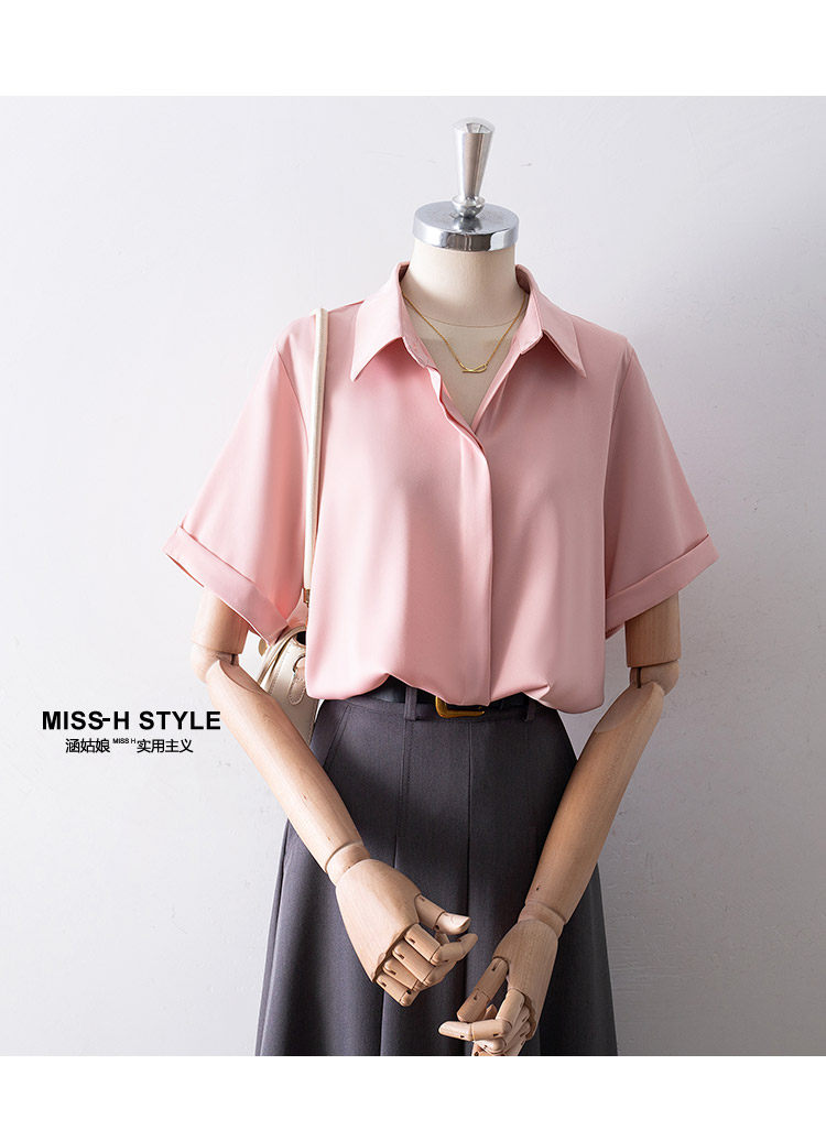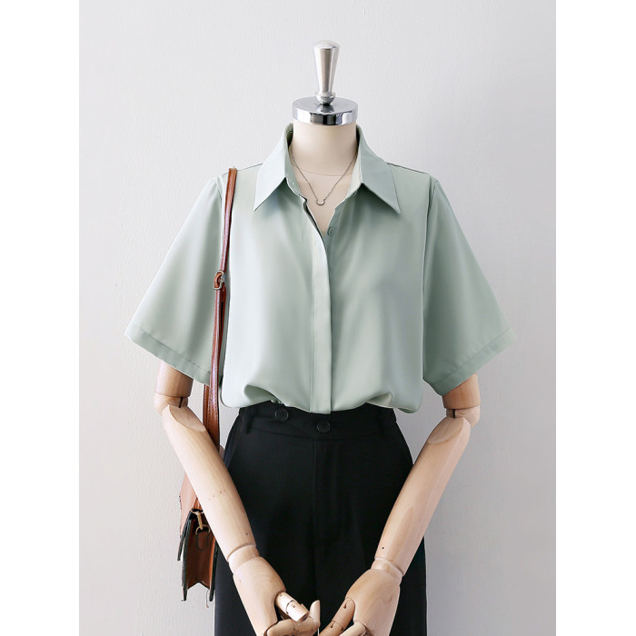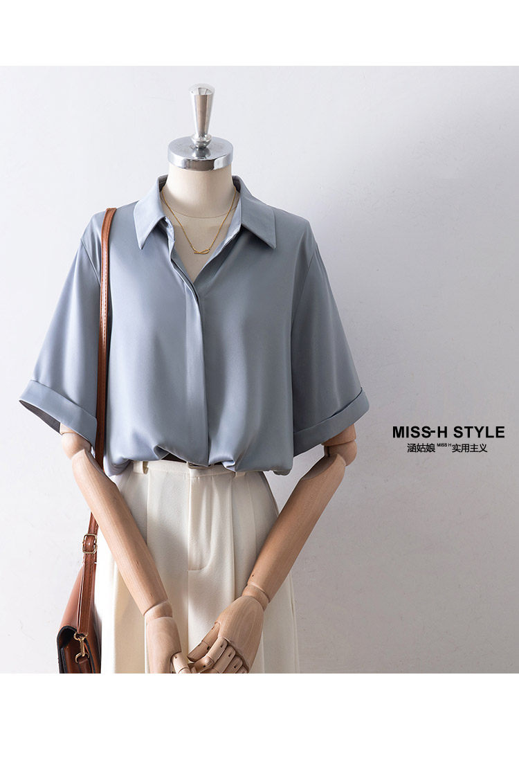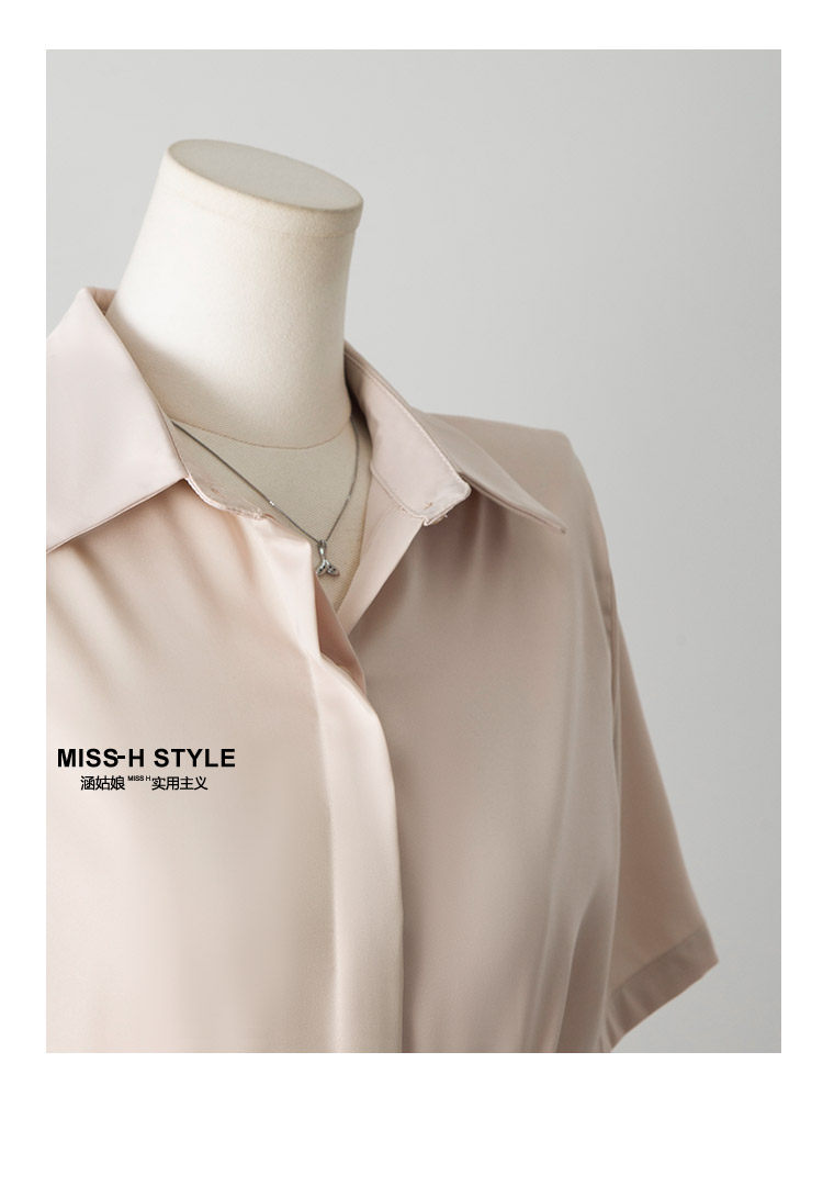 暗門襟短袖襯衫女2025夏季新款寬鬆顯瘦職業通勤百搭韓版緞面襯衣