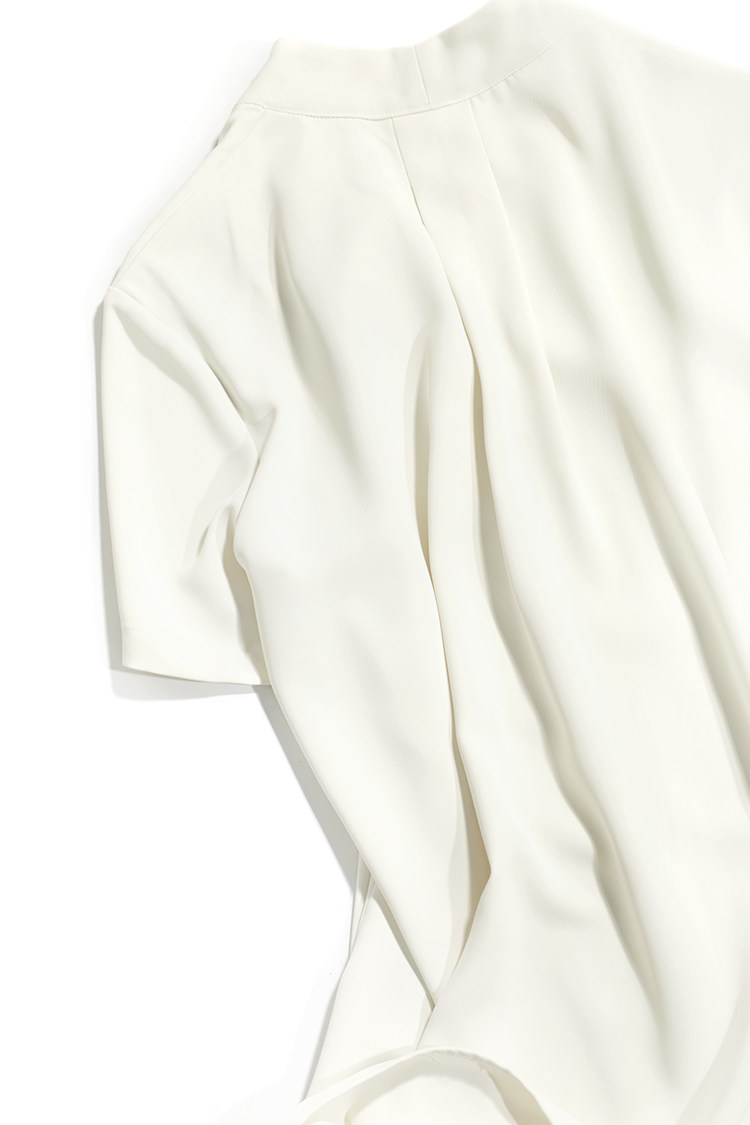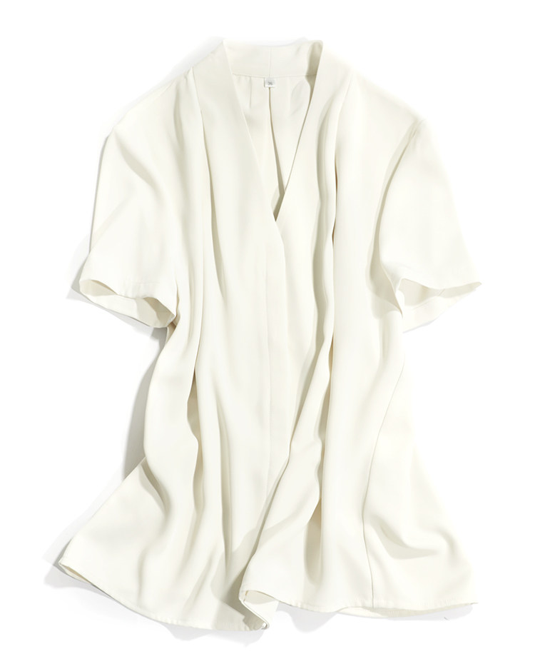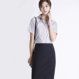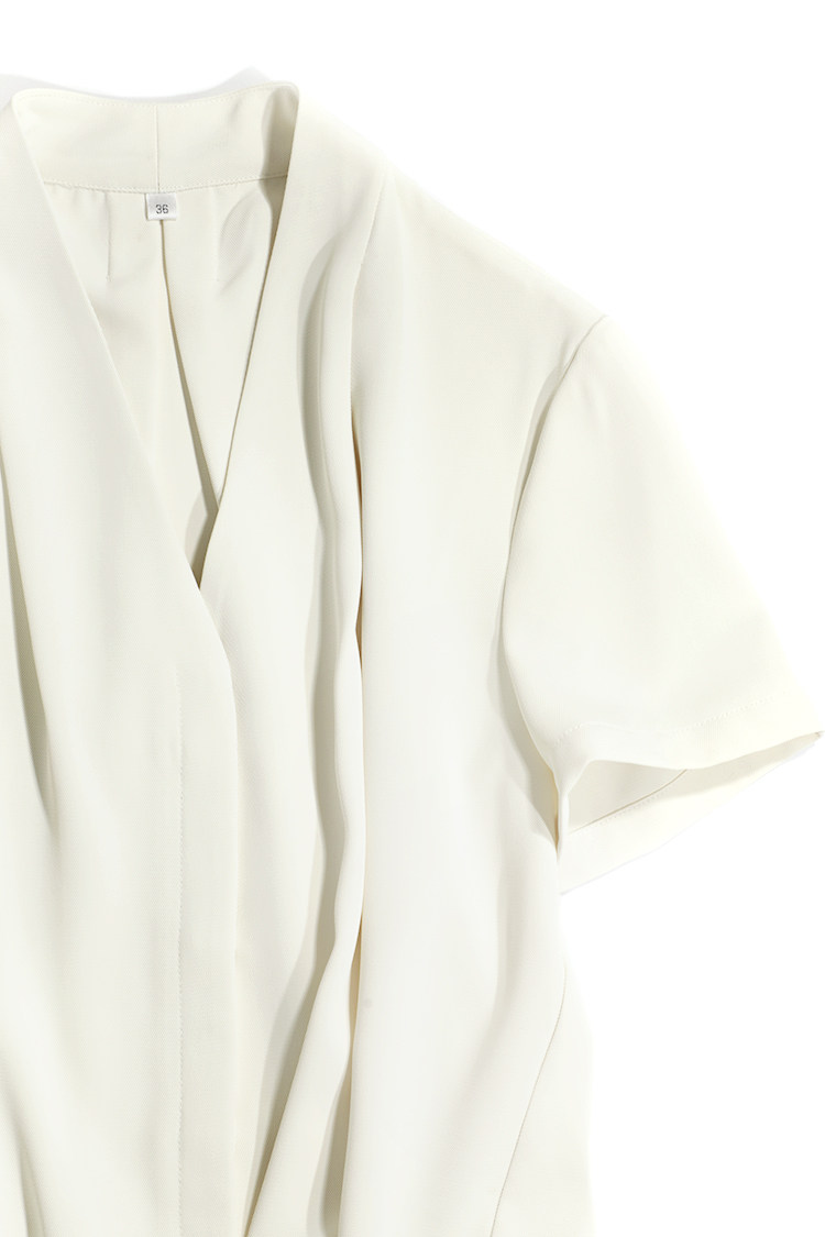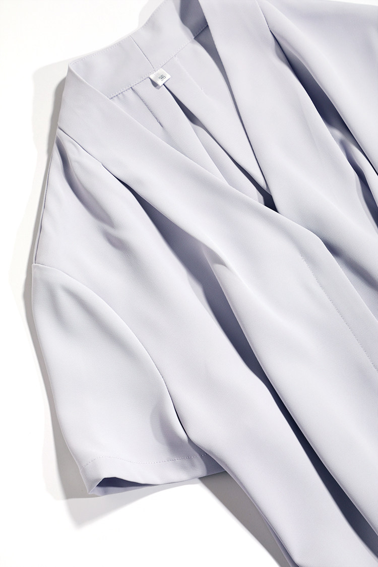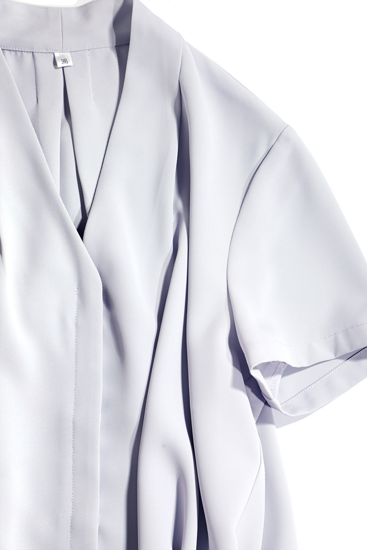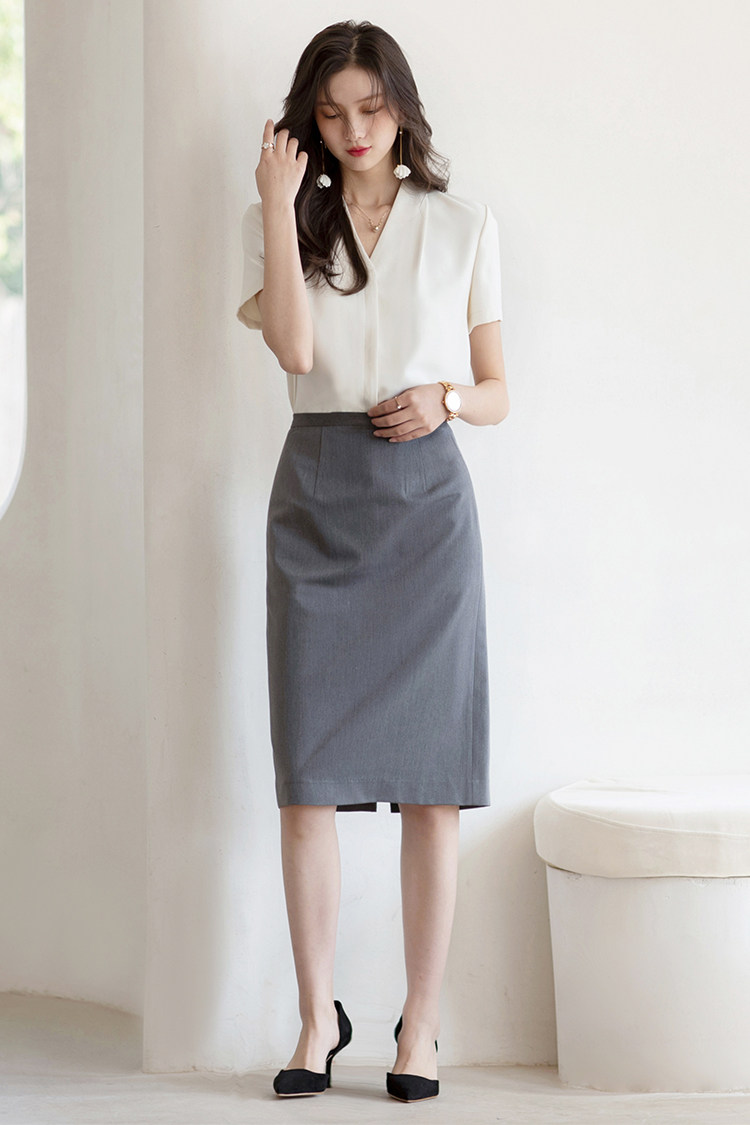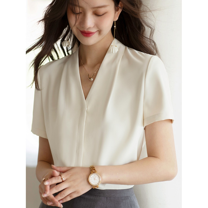 OFFIY 高智氣質 高級輕熟V領法式短袖職業通勤灰色白色襯衫女上衣