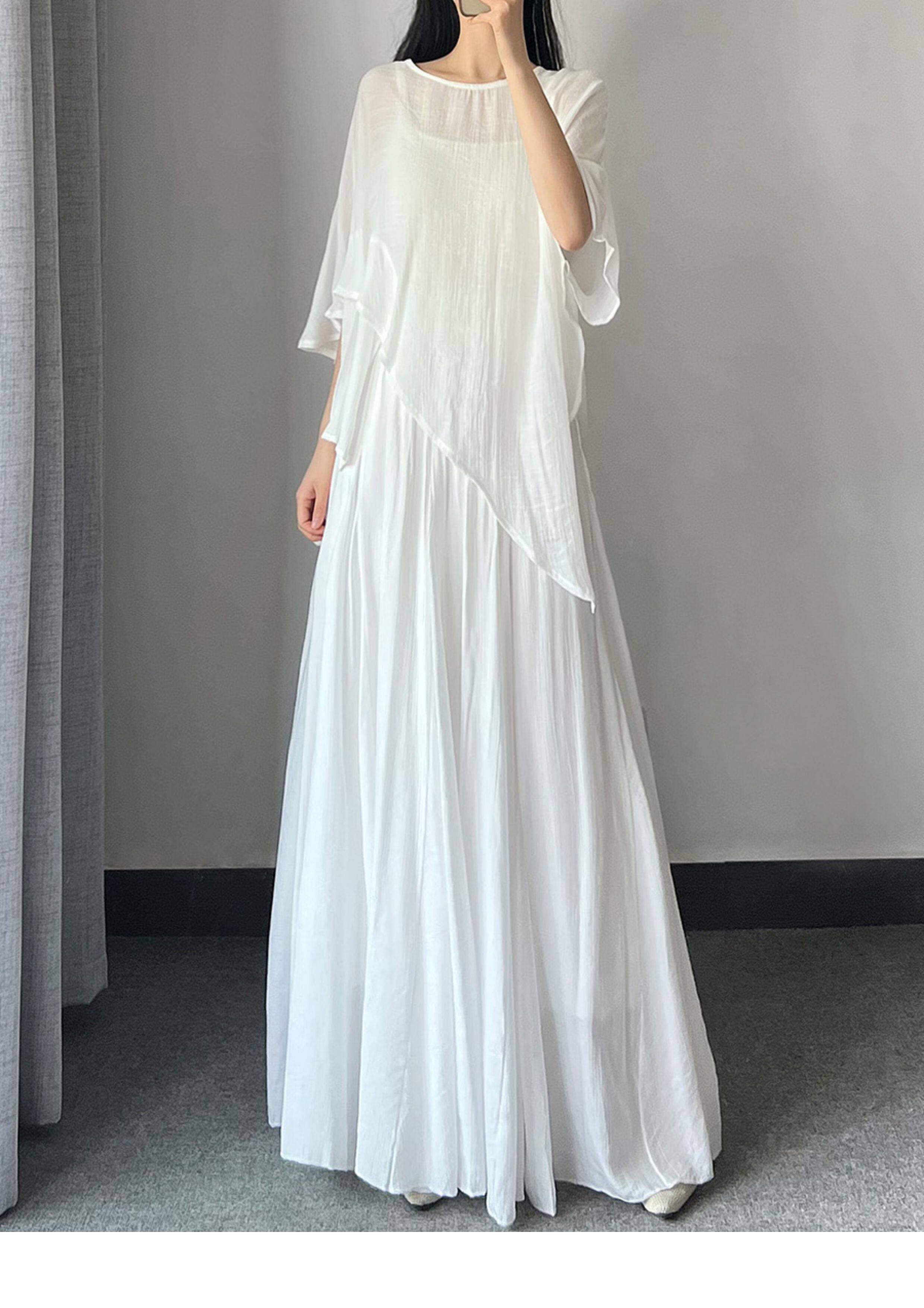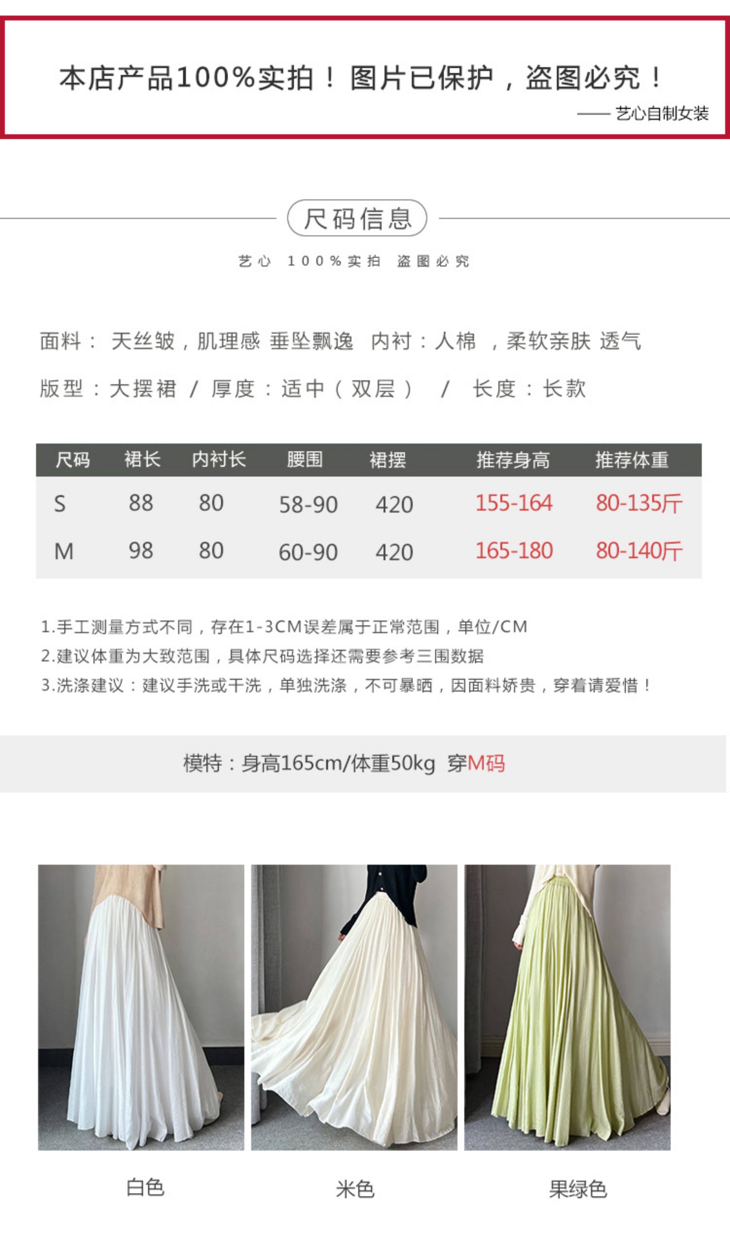白色半身裙女加長款春夏新款顯瘦大擺裙垂感飄逸a字及踝拖地長裙