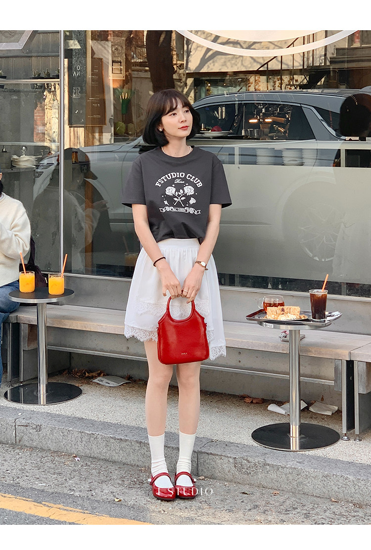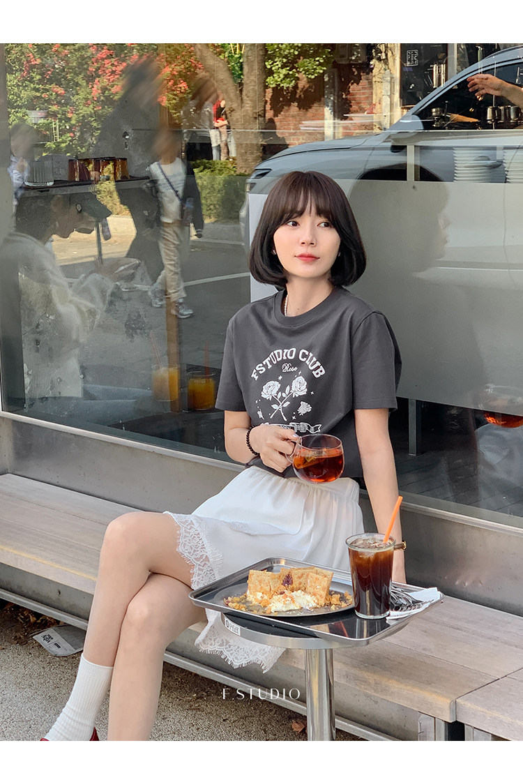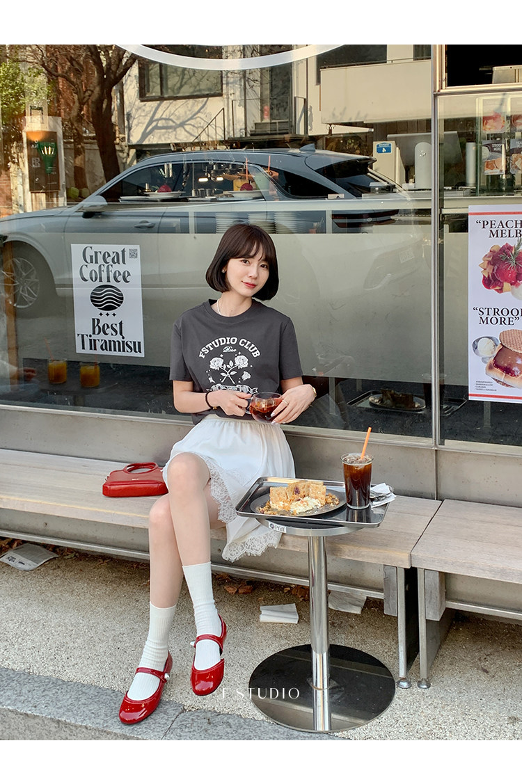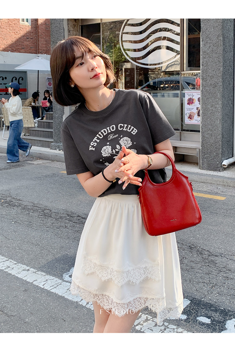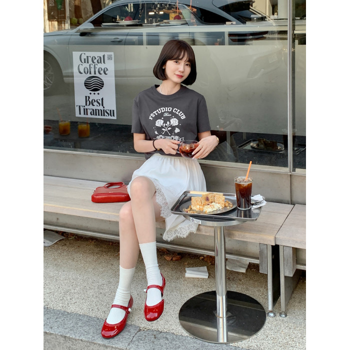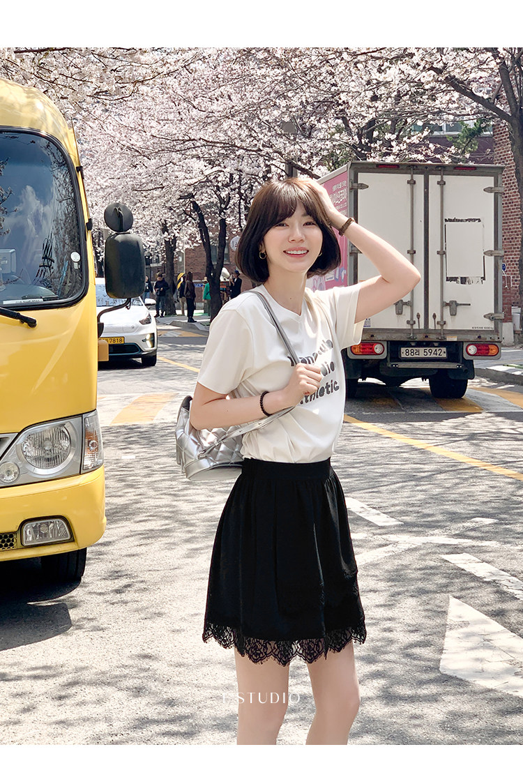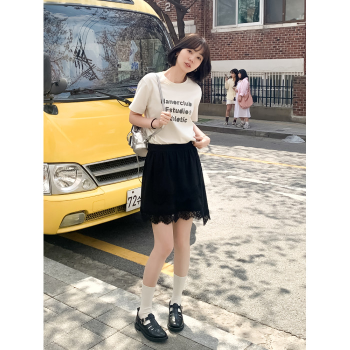 【微醺變奏】法兒家 韓系學院風白色花邊半裙2025新款時尚短裙