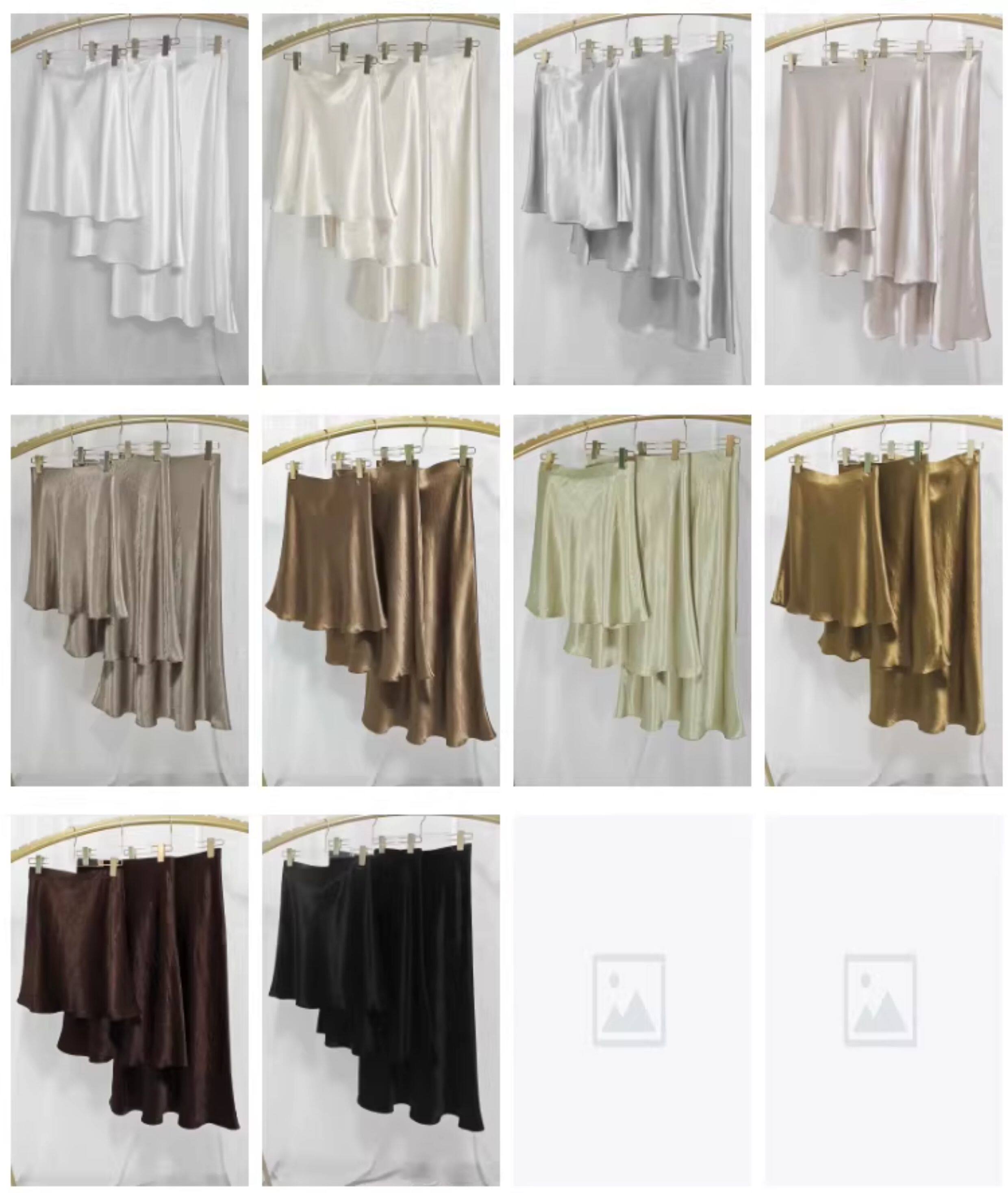 真醋酸褶皺肌理感米白色半身裙a字傘裙短中長款魚尾垂感顯瘦減齡