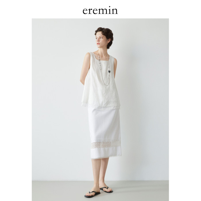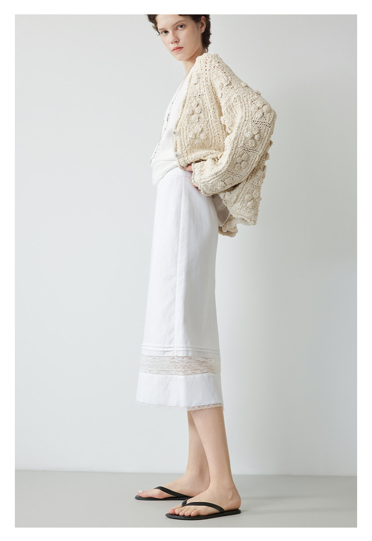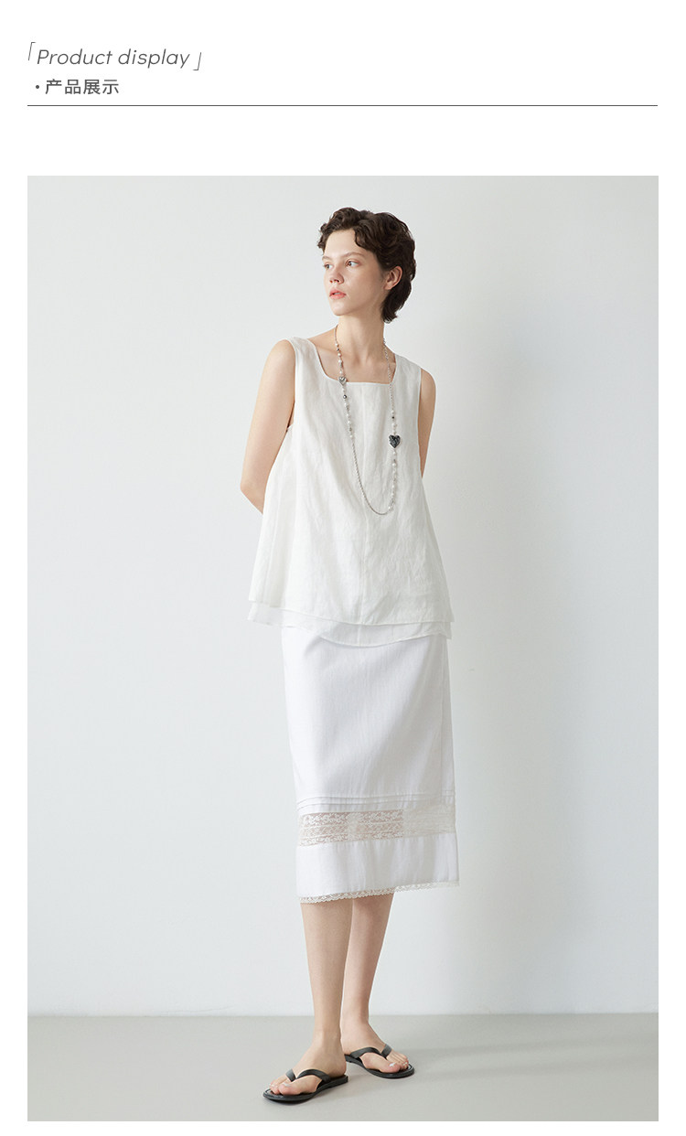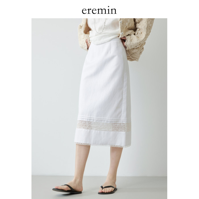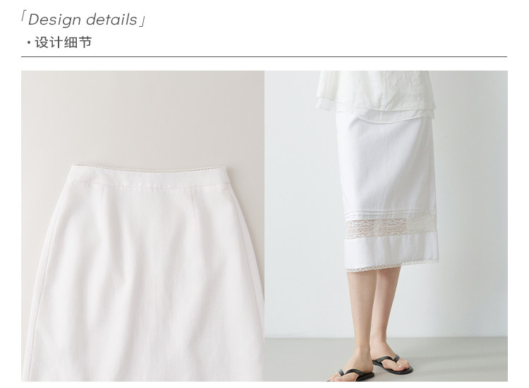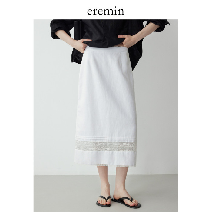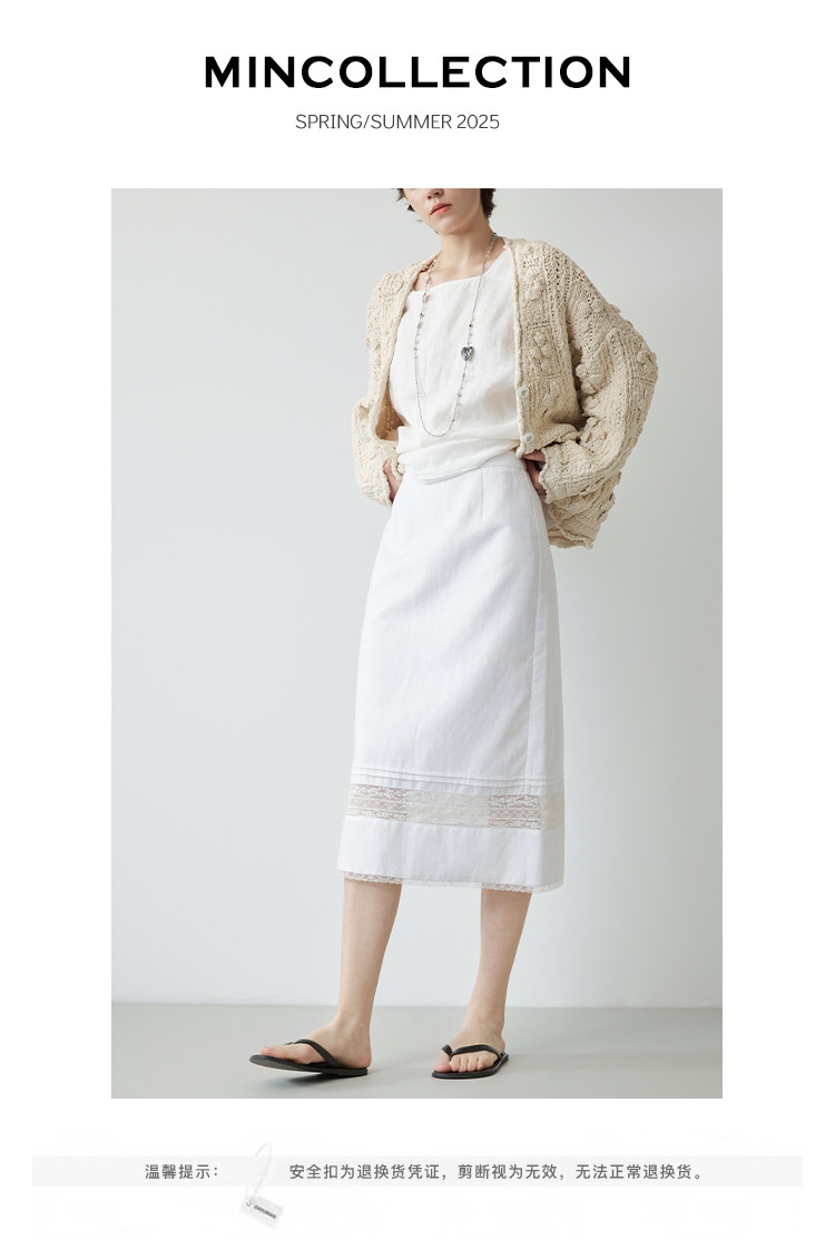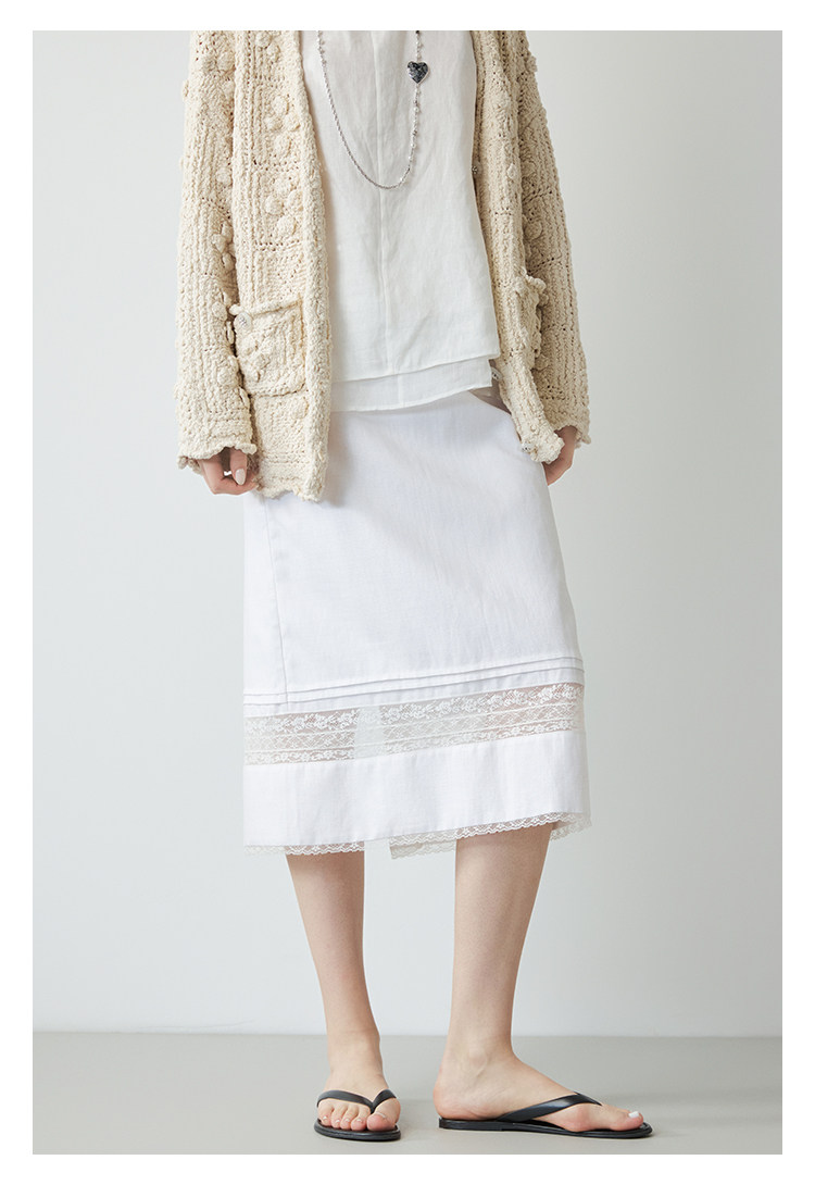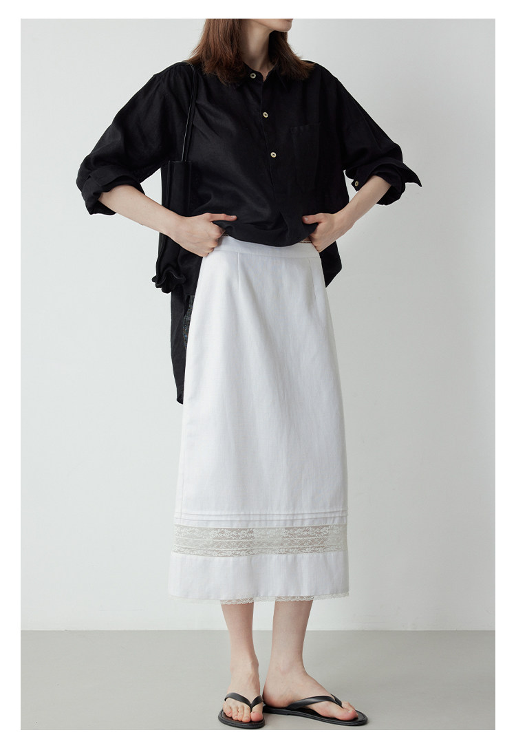 Mincollection林痣晴/蕾絲拼接半裙/天絲亞麻洗水輕法式半身裙