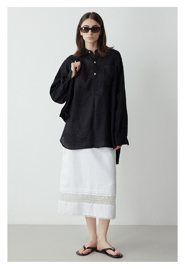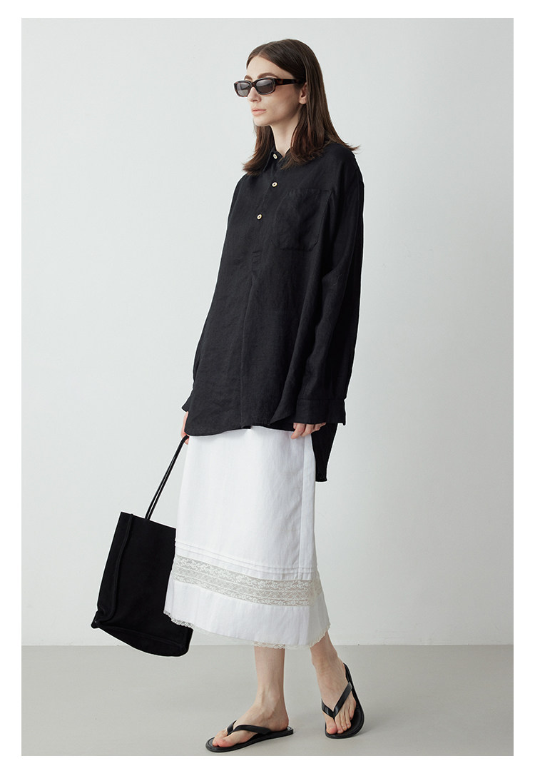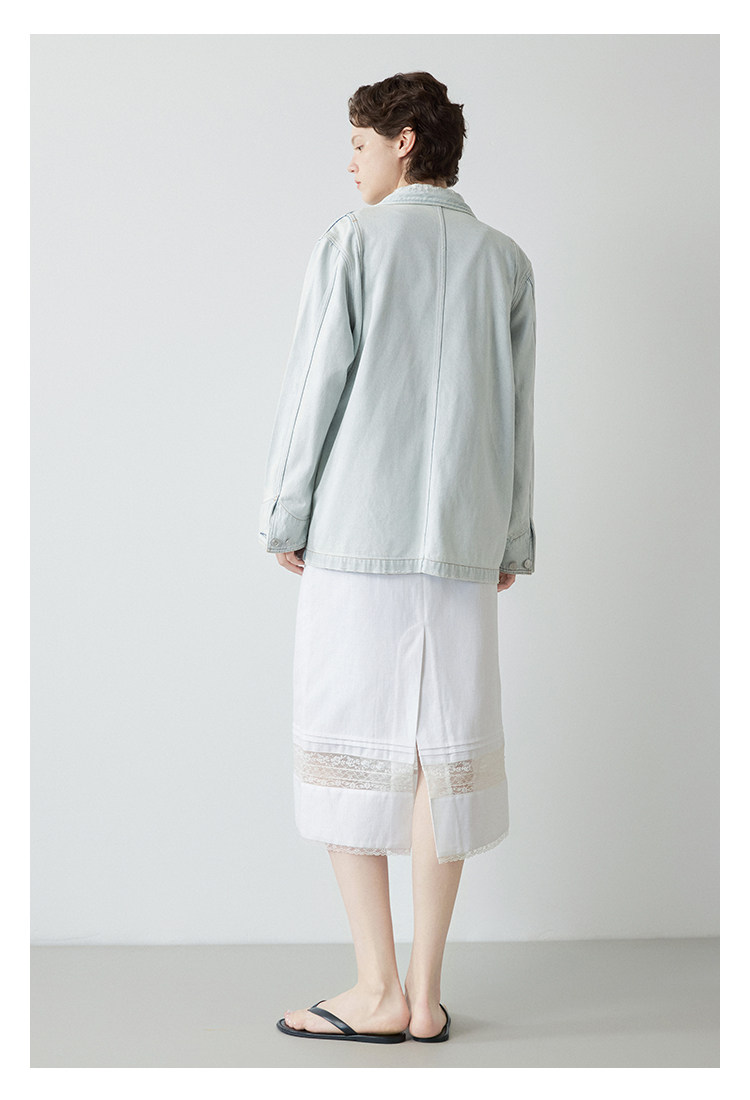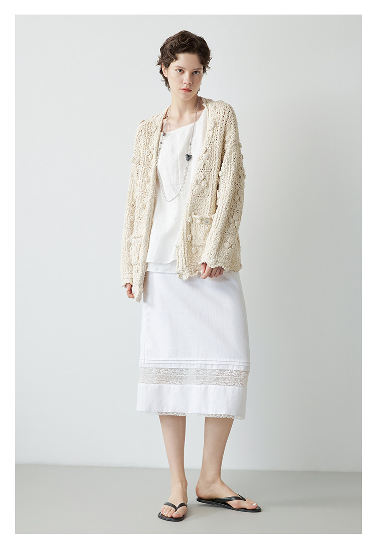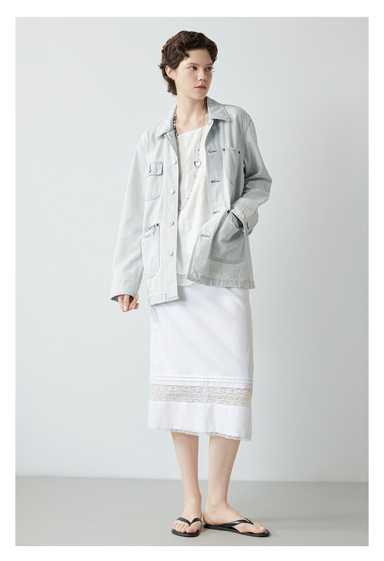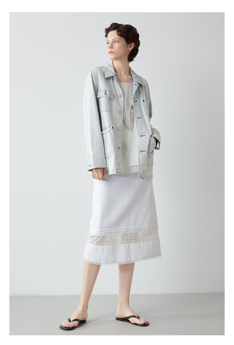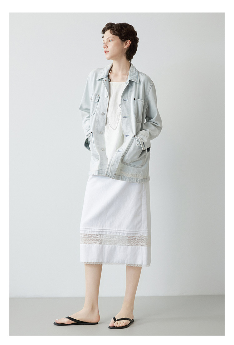 Mincollection林痣晴/蕾絲拼接半裙/天絲亞麻洗水輕法式半身裙