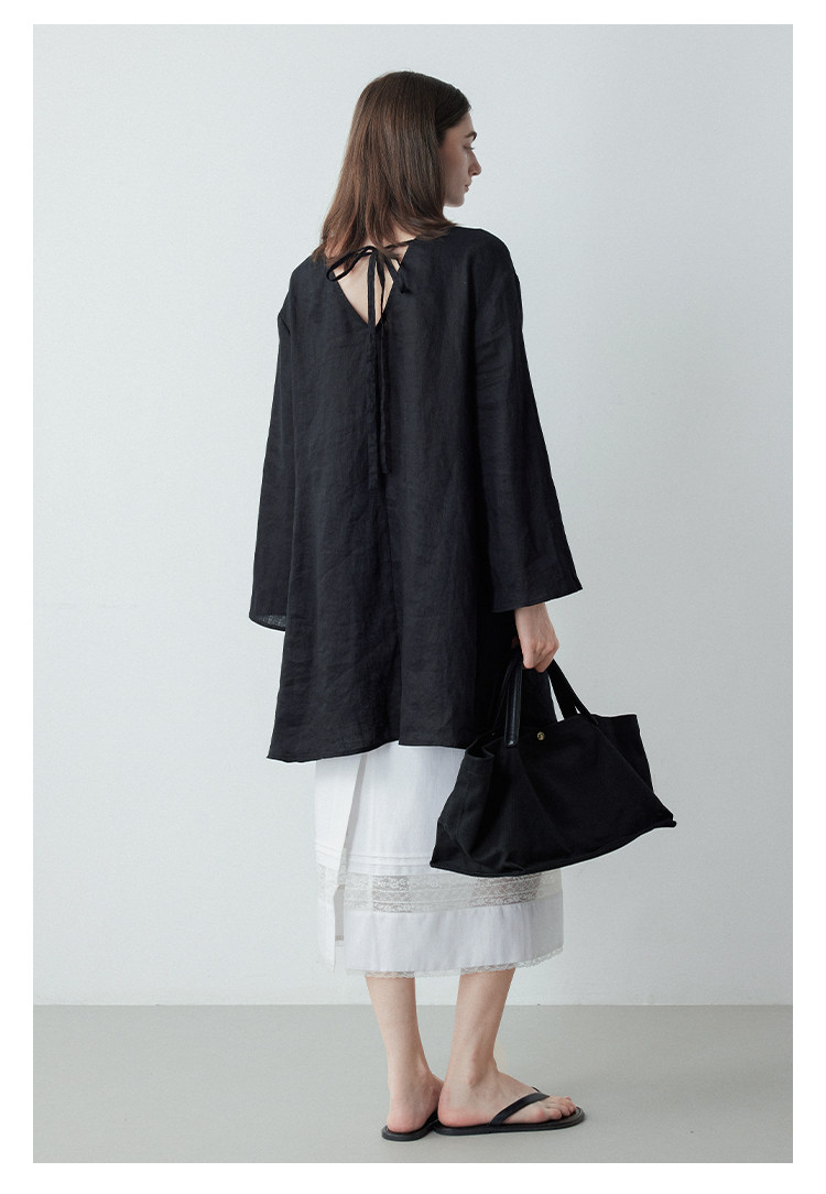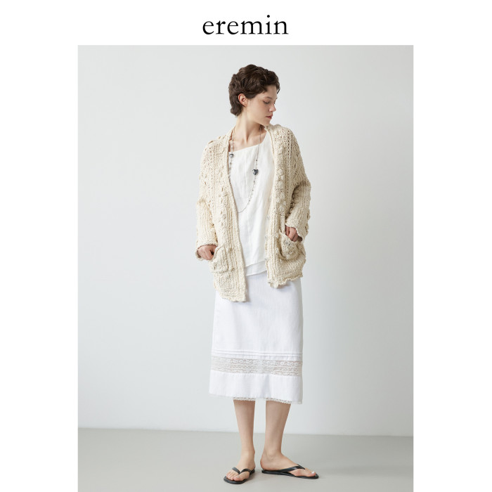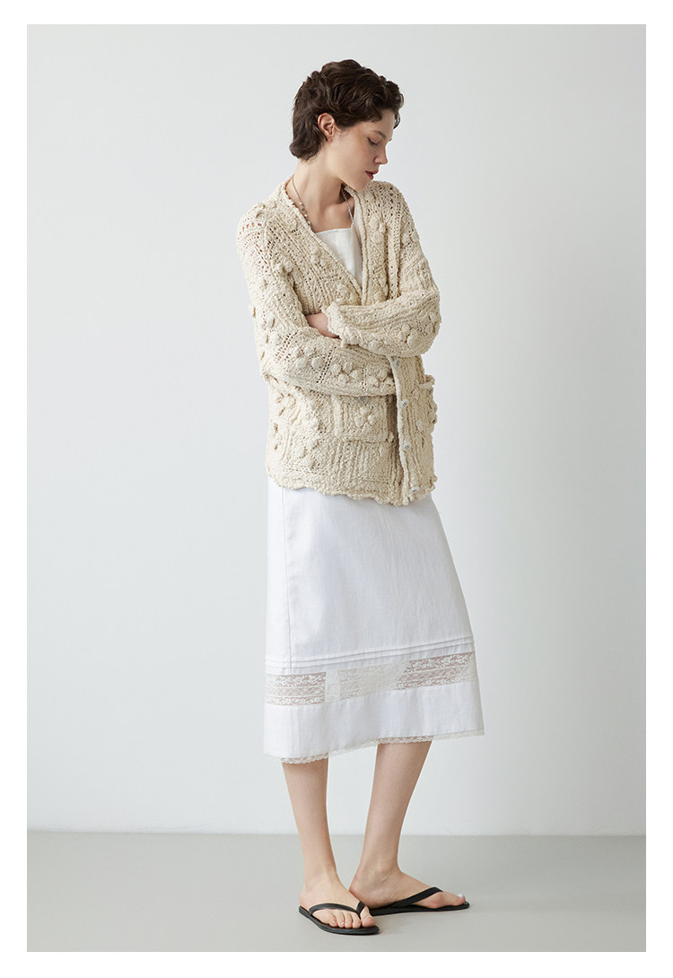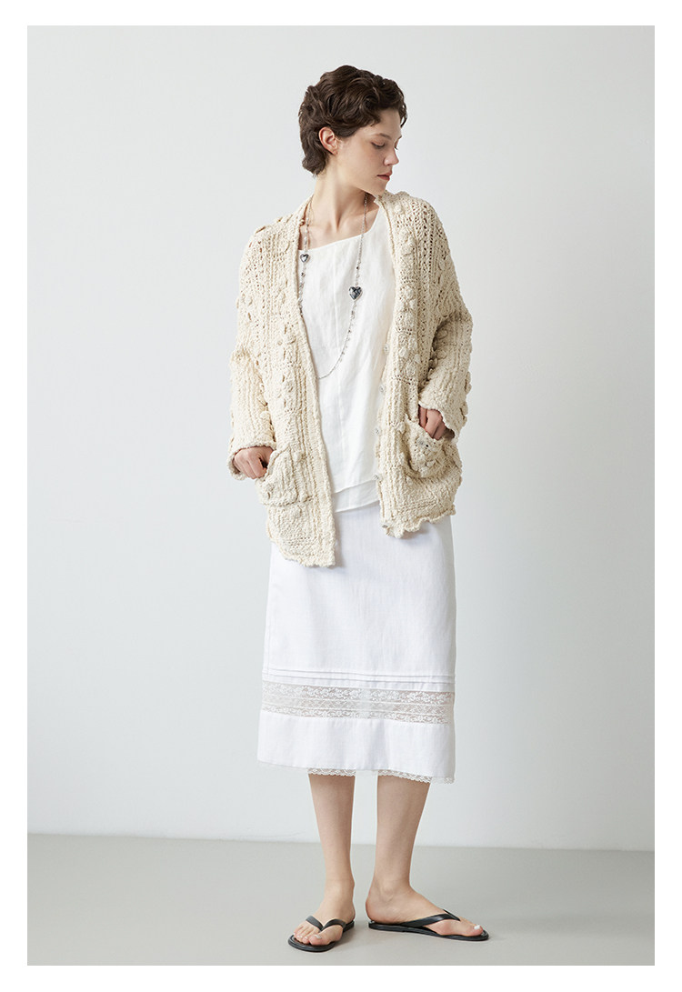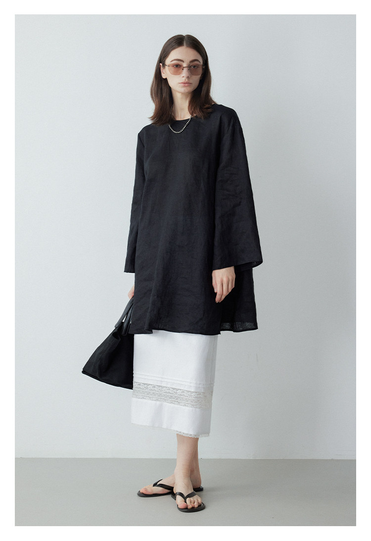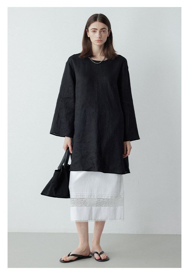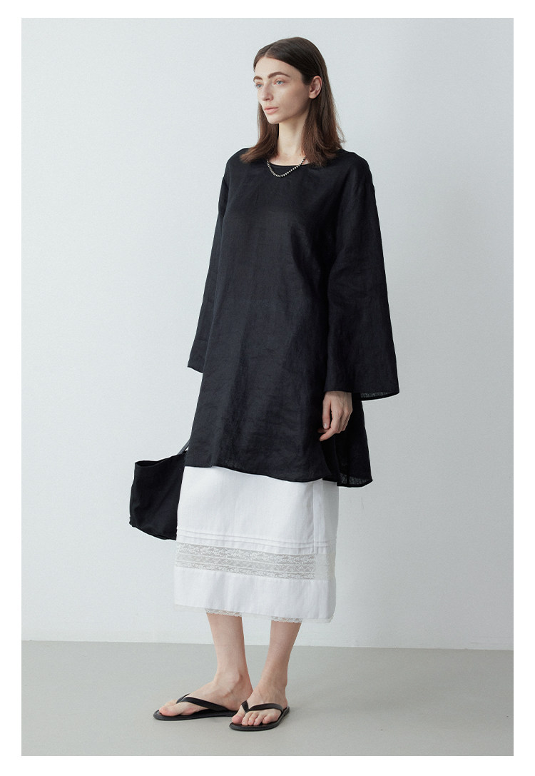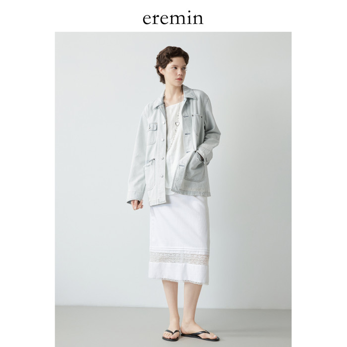 Mincollection林痣晴/蕾絲拼接半裙/天絲亞麻洗水輕法式半身裙