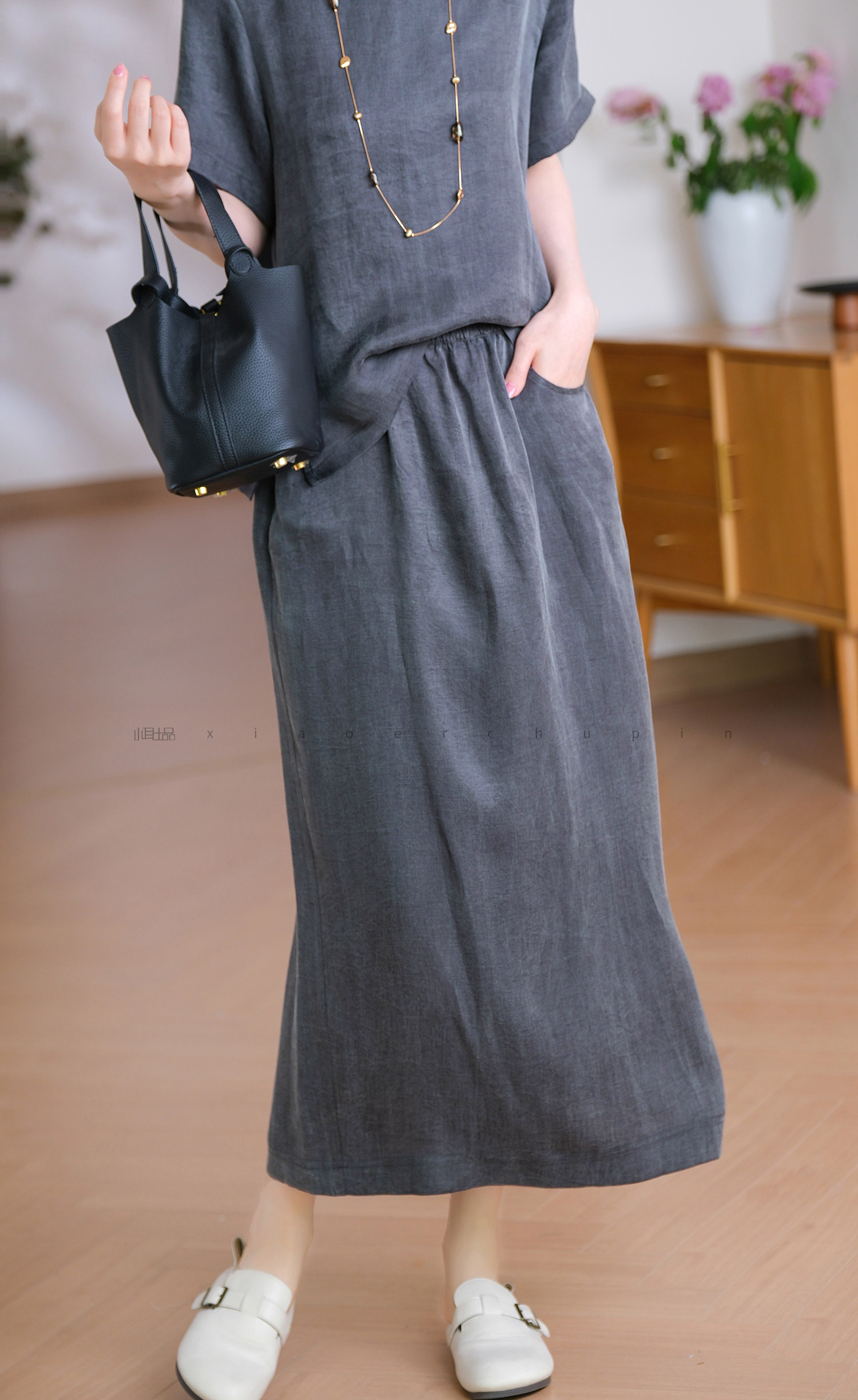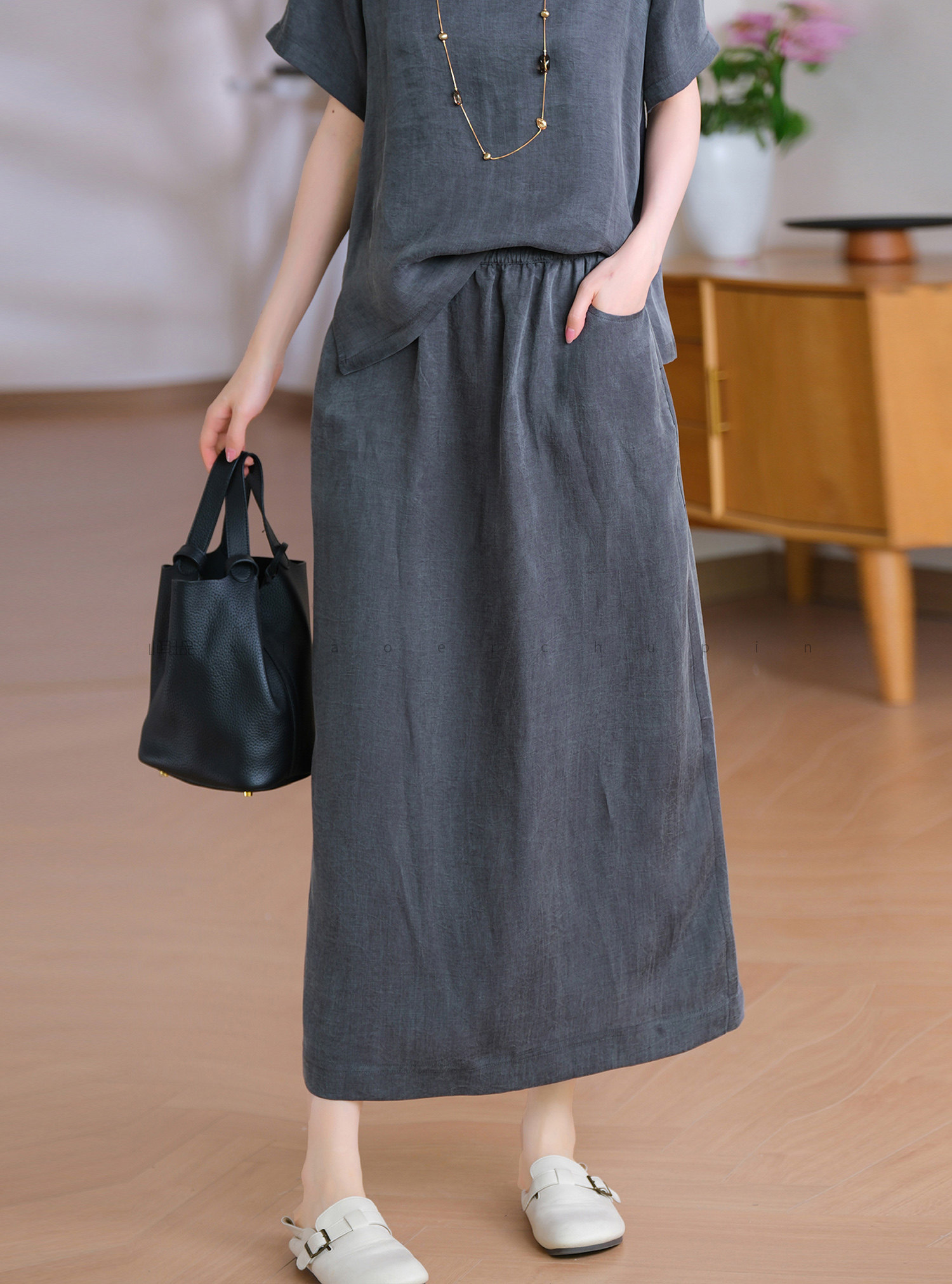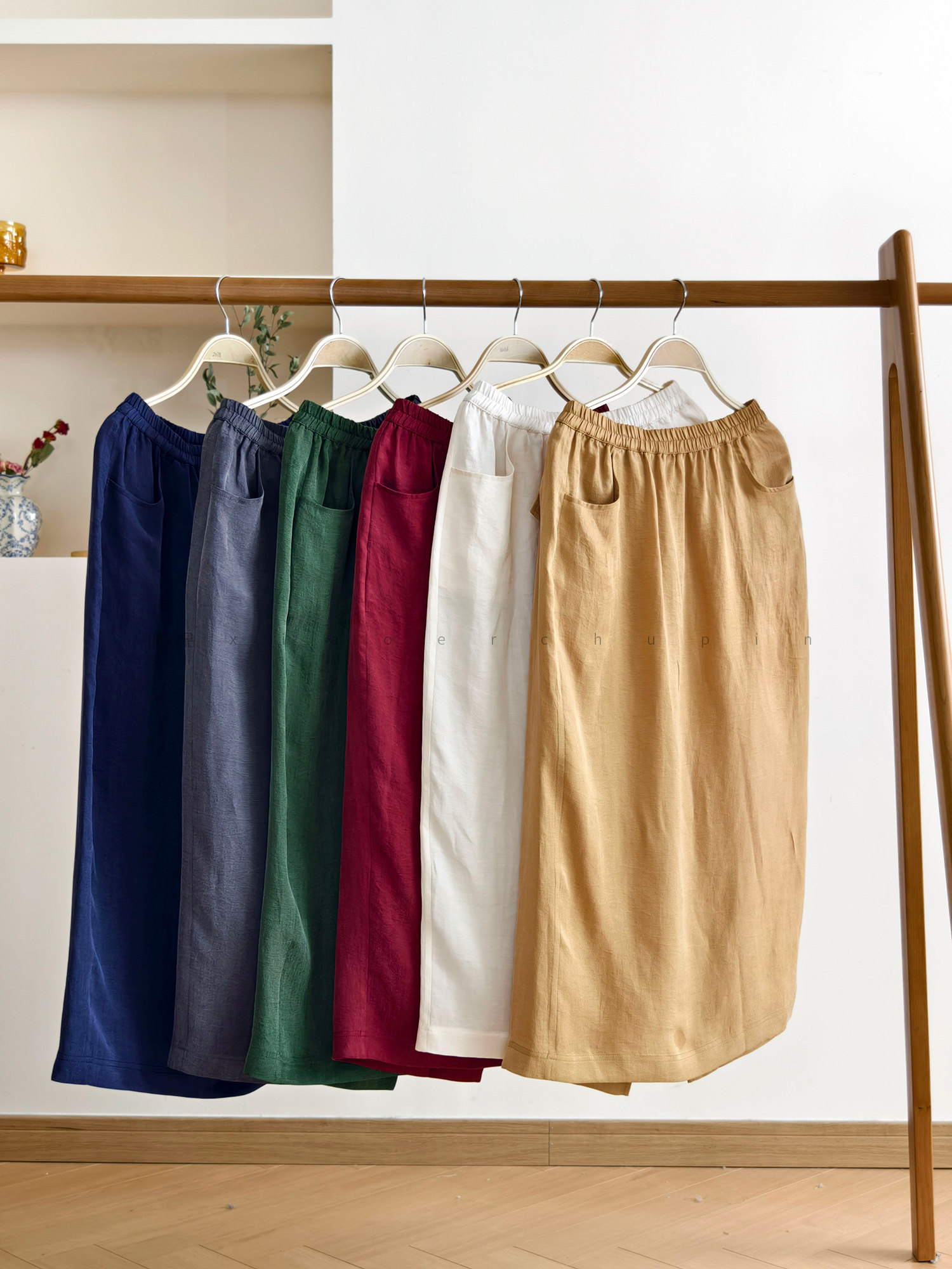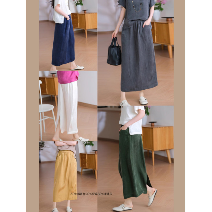 小耳出品【銅氨絲萊賽爾混紡/直筒小花苞】時尚百搭松緊腰半身裙