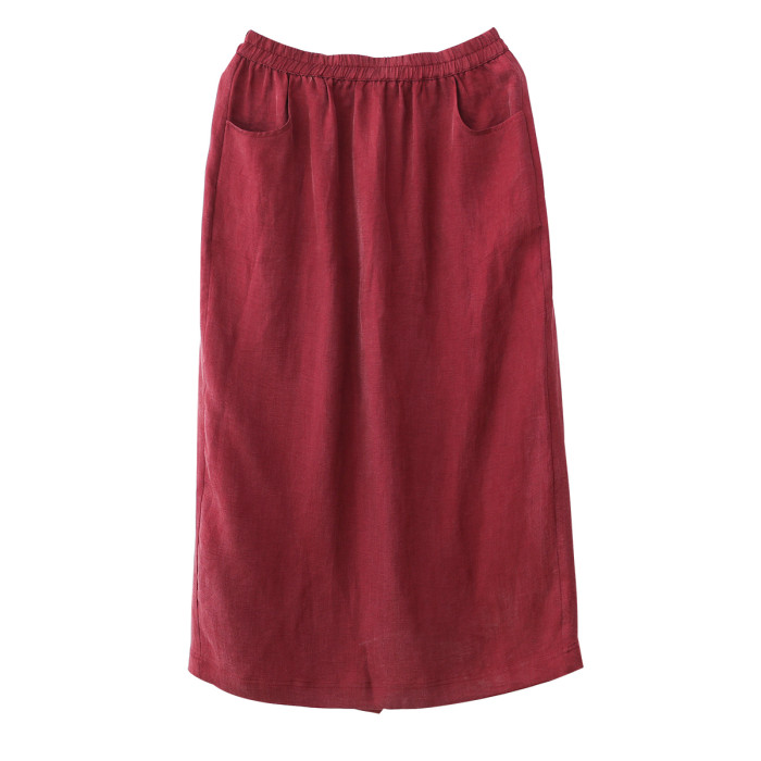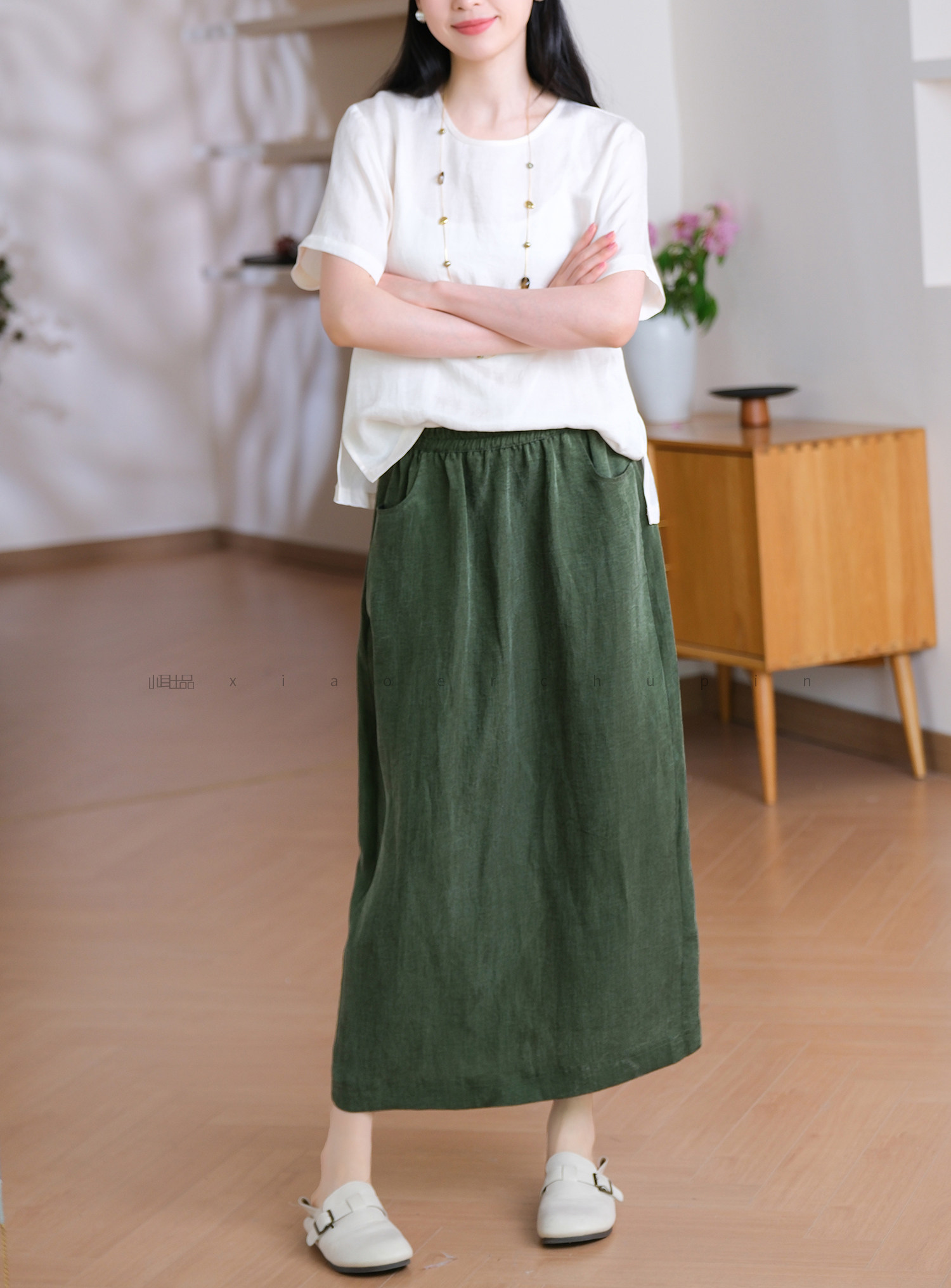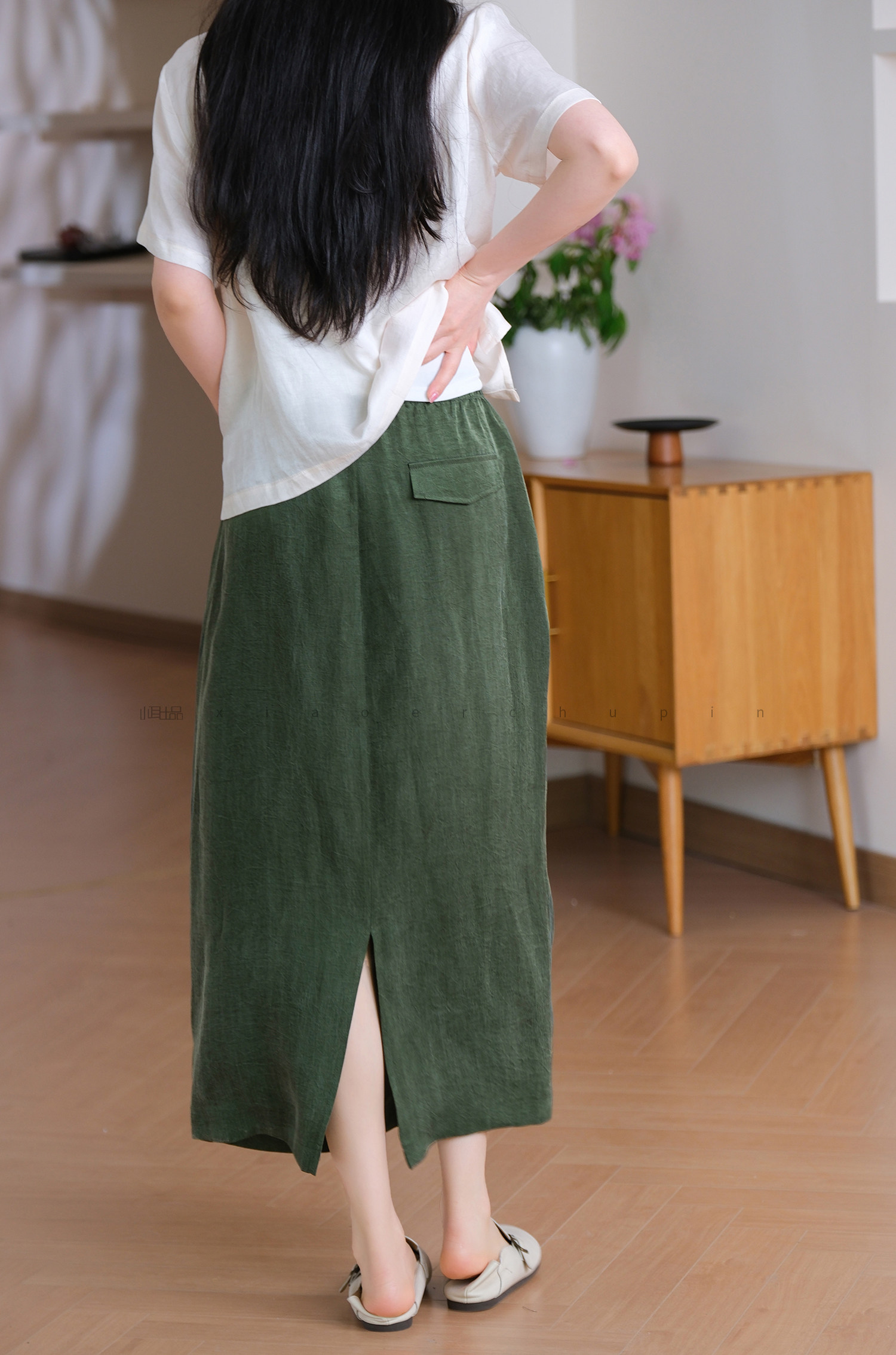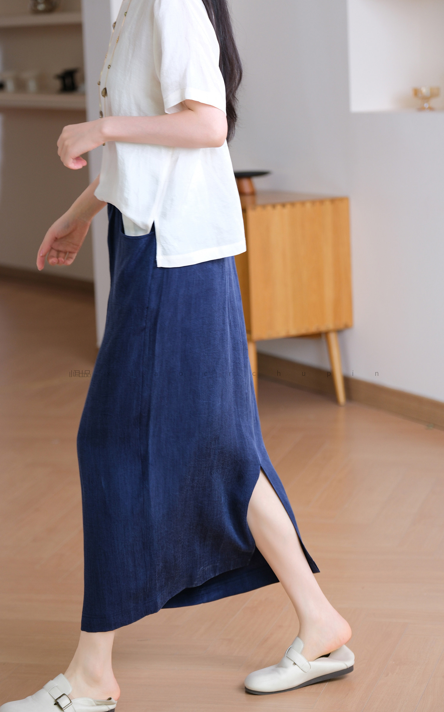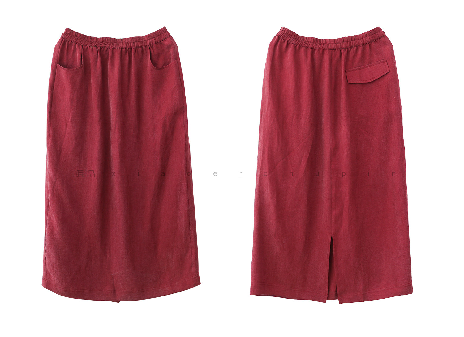 小耳出品【銅氨絲萊賽爾混紡/直筒小花苞】時尚百搭松緊腰半身裙