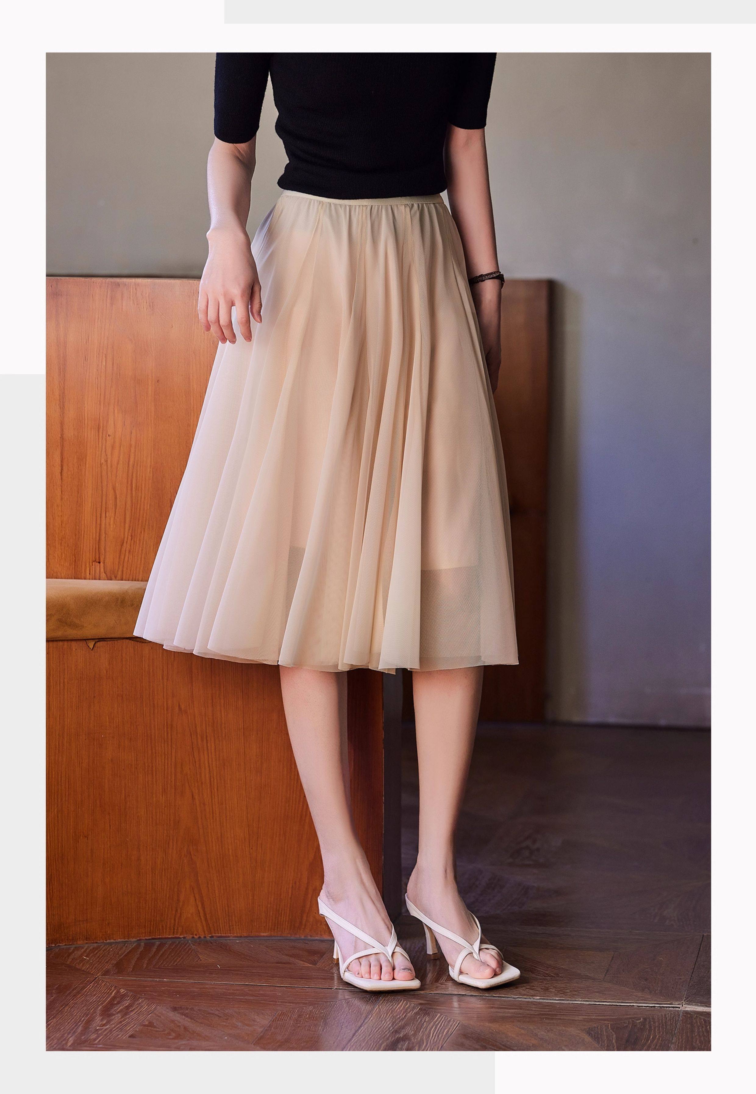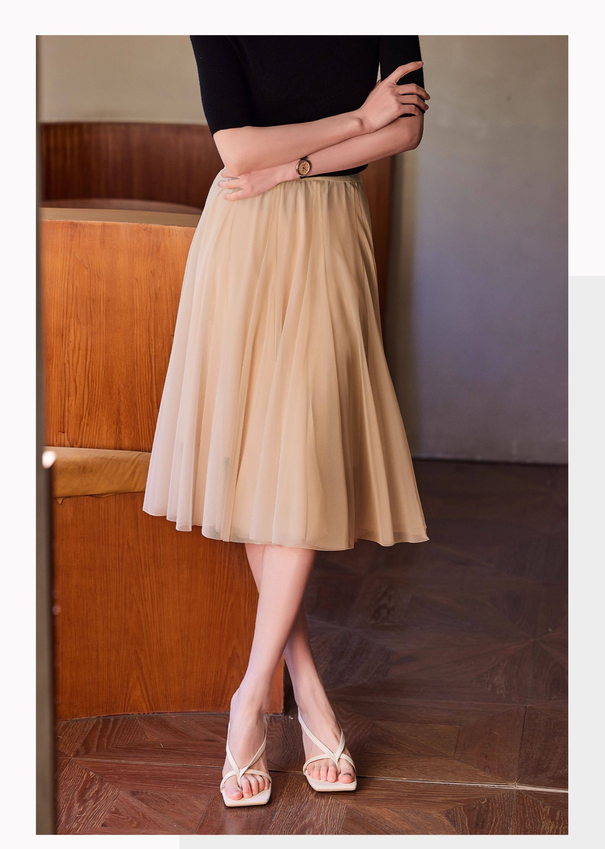 Basic House/百家好月光舒曼灰色高腰a字半身裙女2026年夏季新款