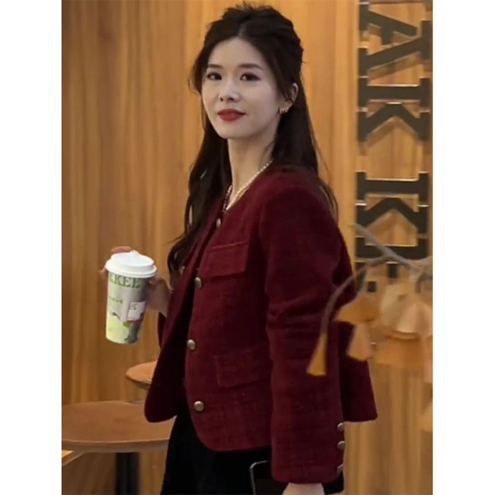 秋冬季新款高級感獨特超好看今年流行新年聖誕紅色女士小香風外套