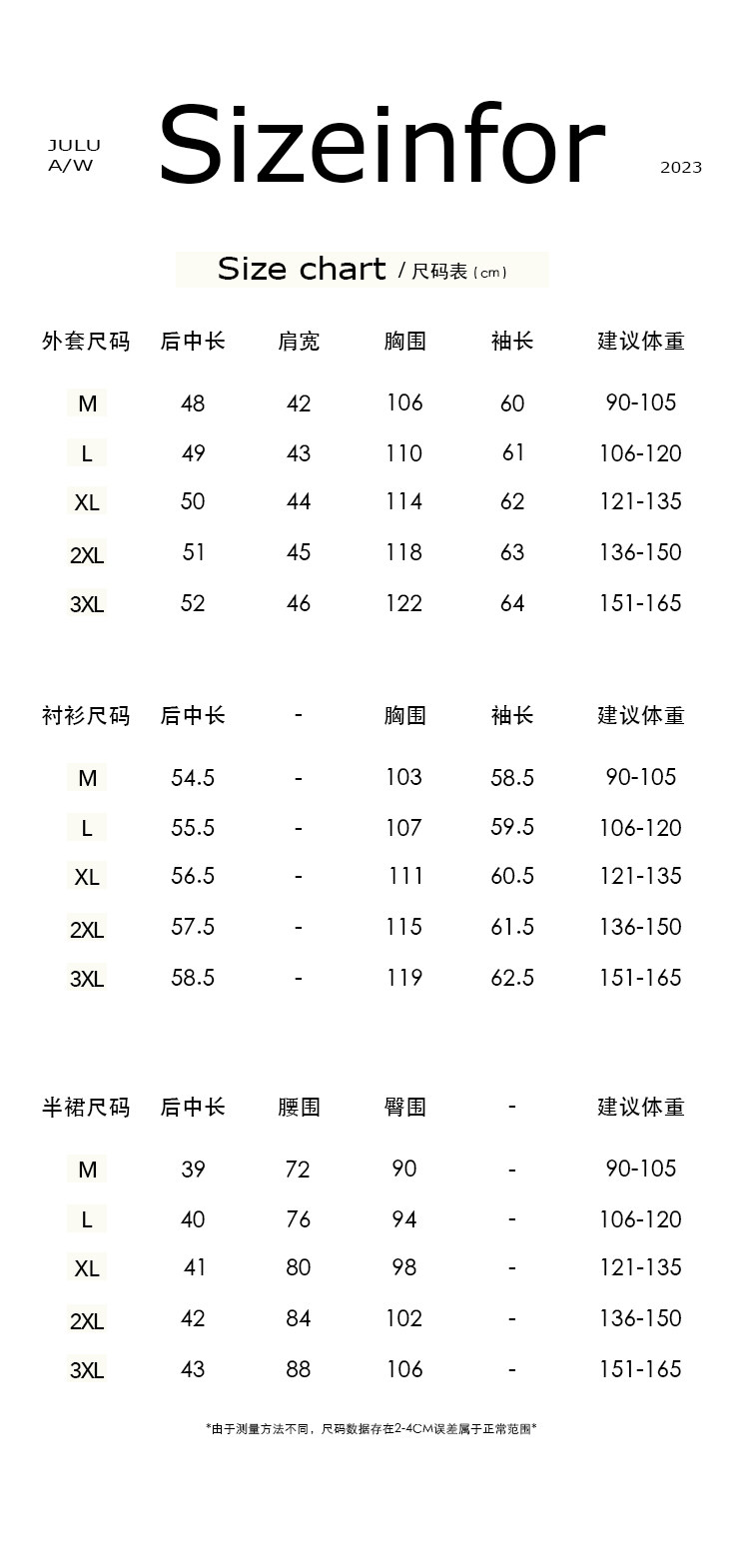 款式及尺寸:
