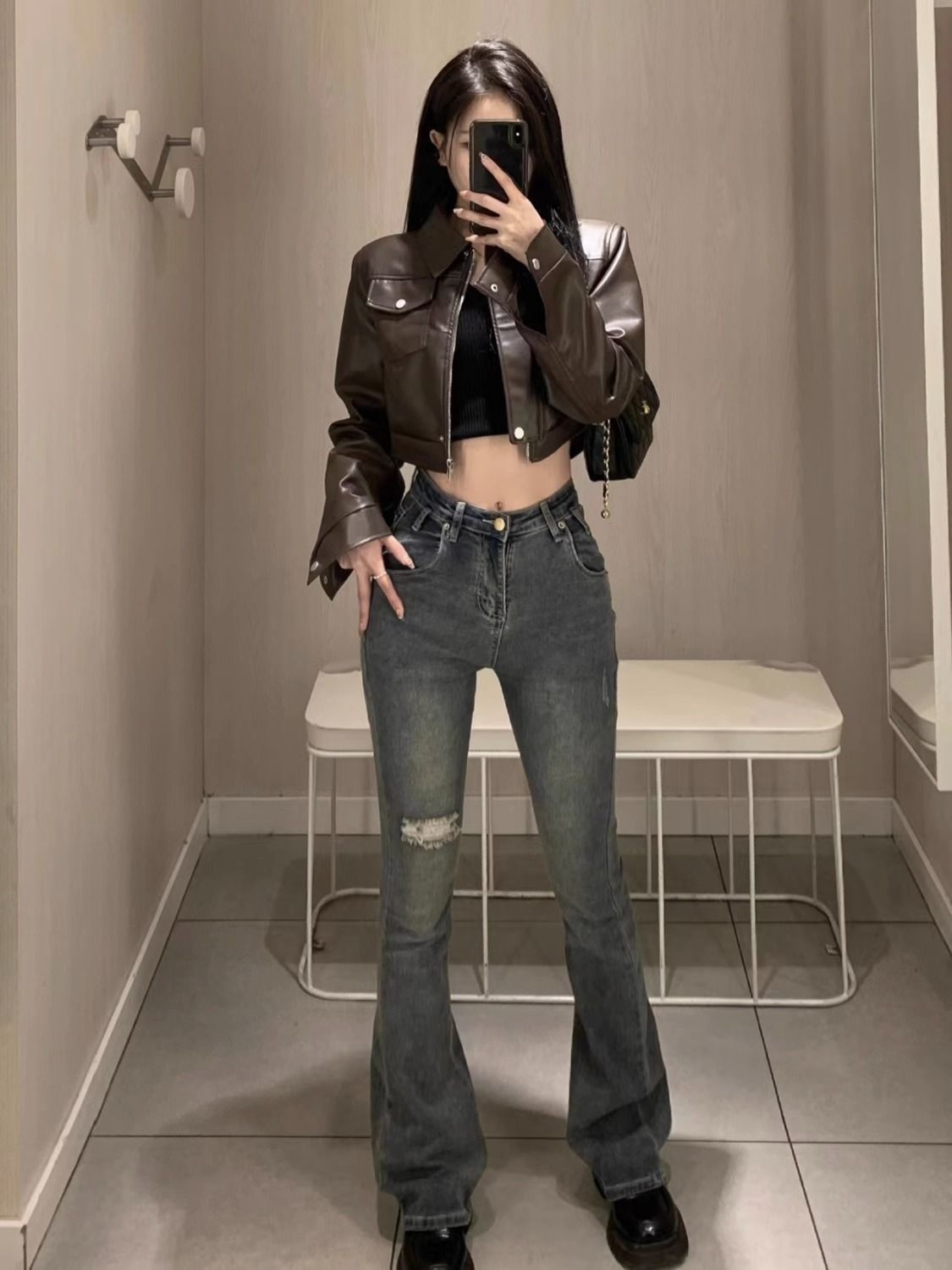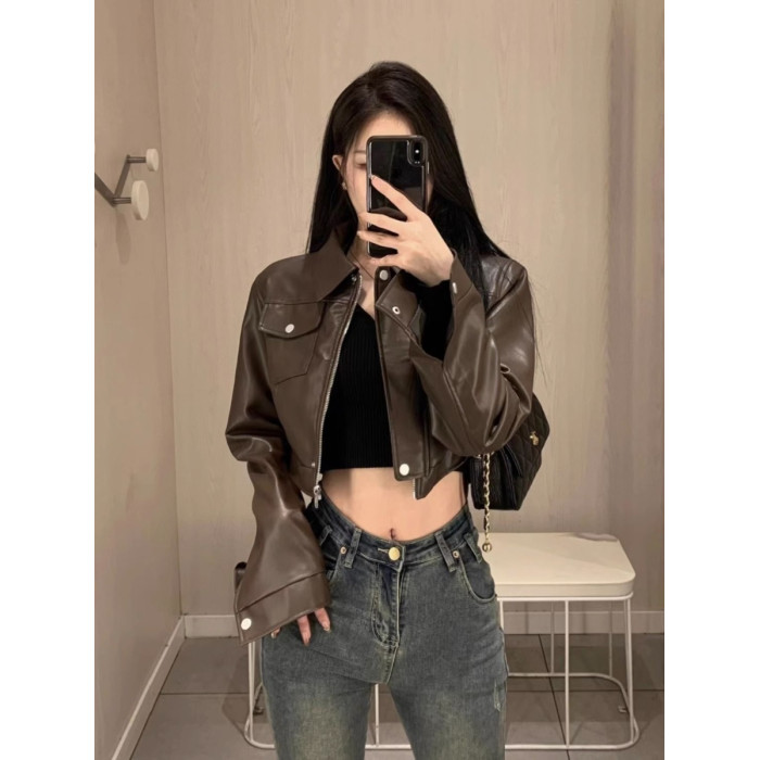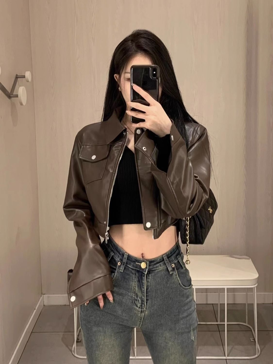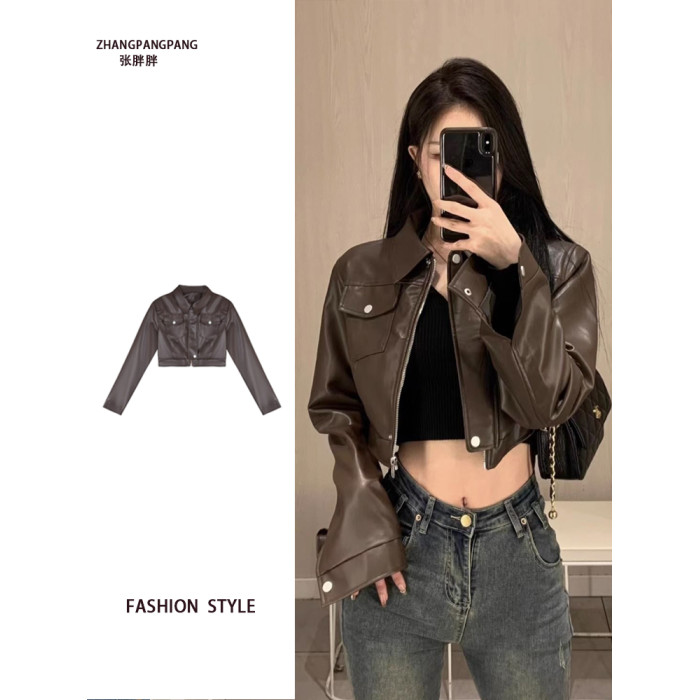 美拉德穿搭咖棕色皮衣外套女春秋2025年新款大碼寬松外穿短款上衣