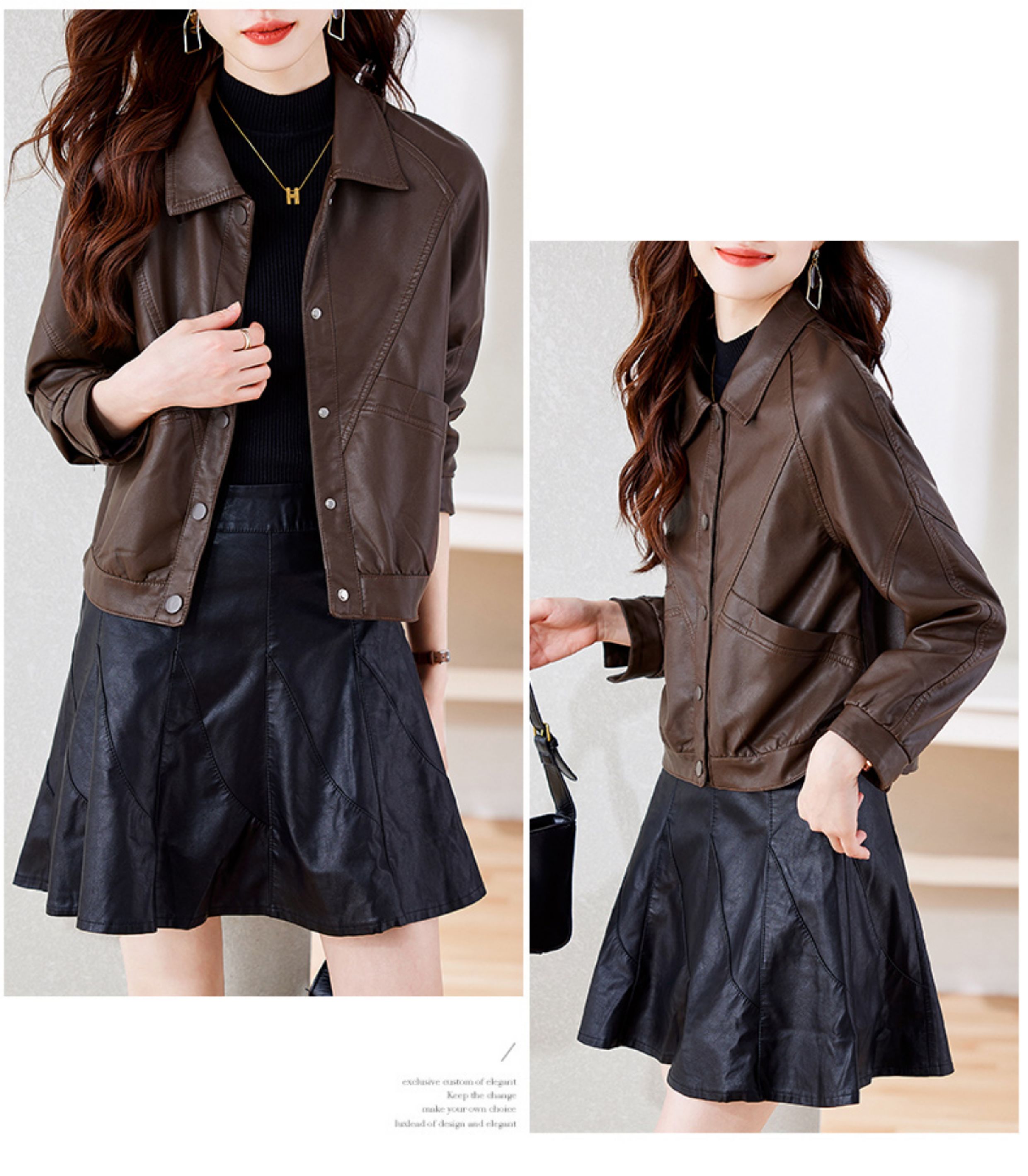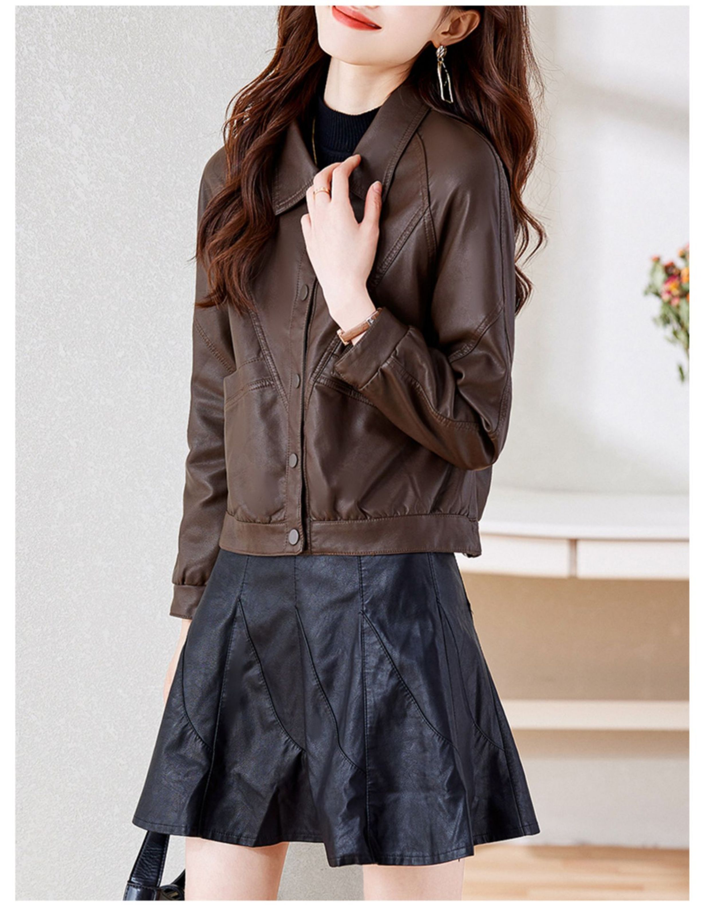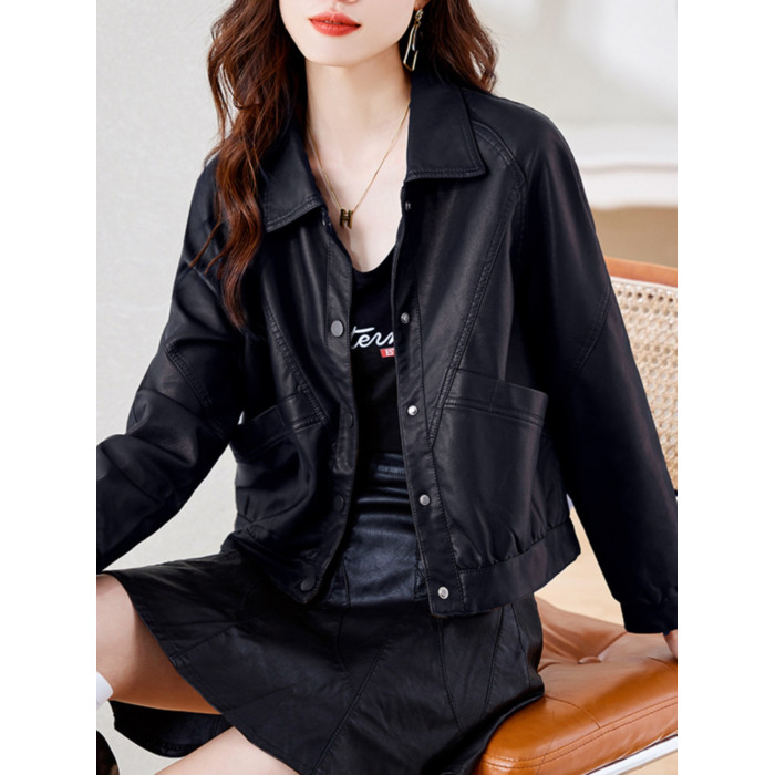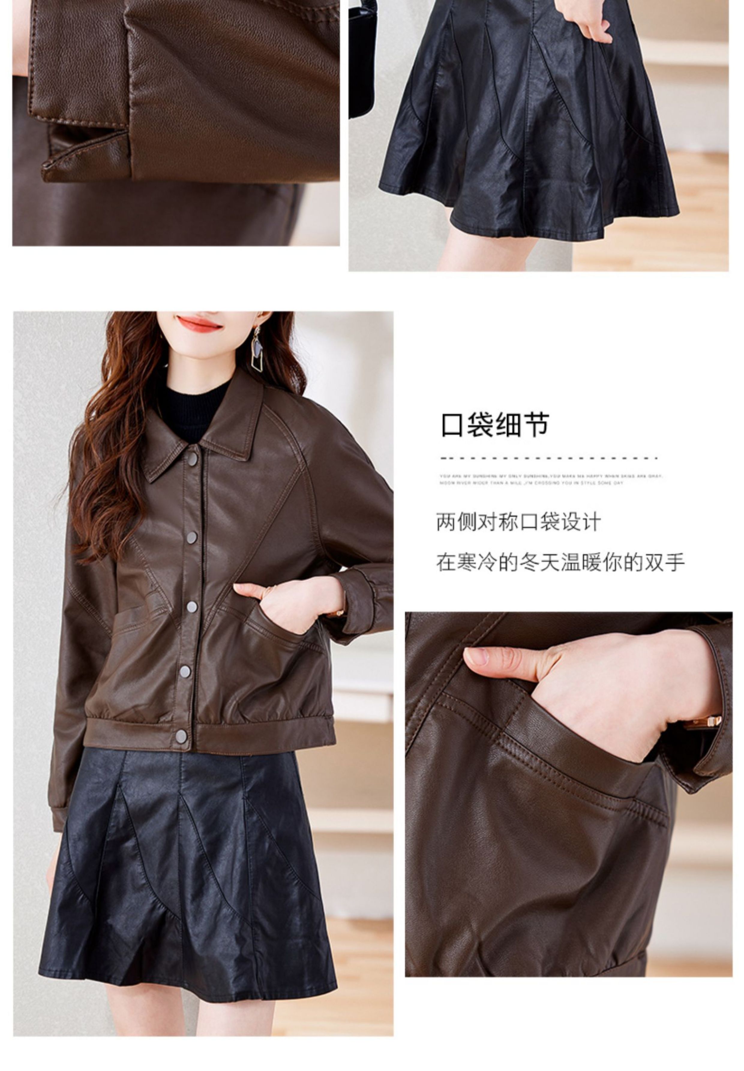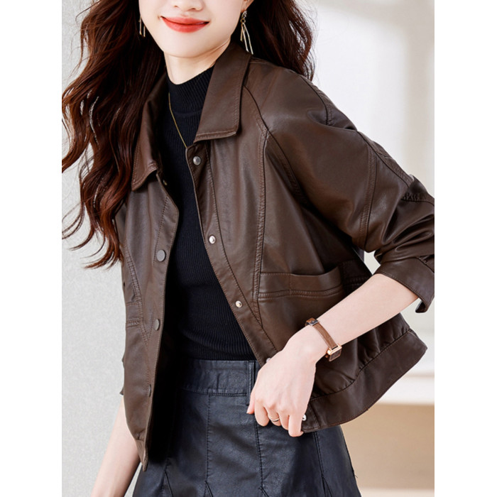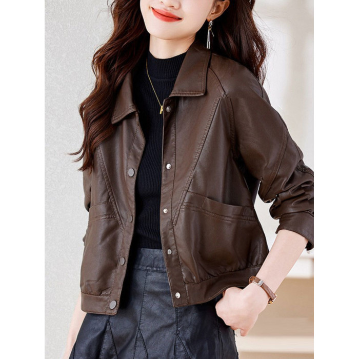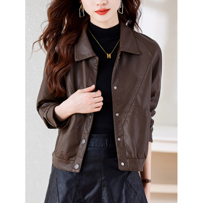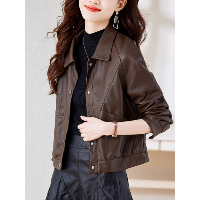 皮衣外套女短款春秋2025新款加絨加厚洋氣小個子海甯皮夾克棕色冬