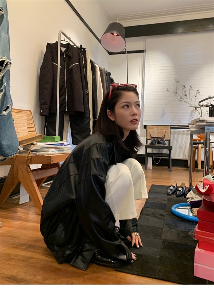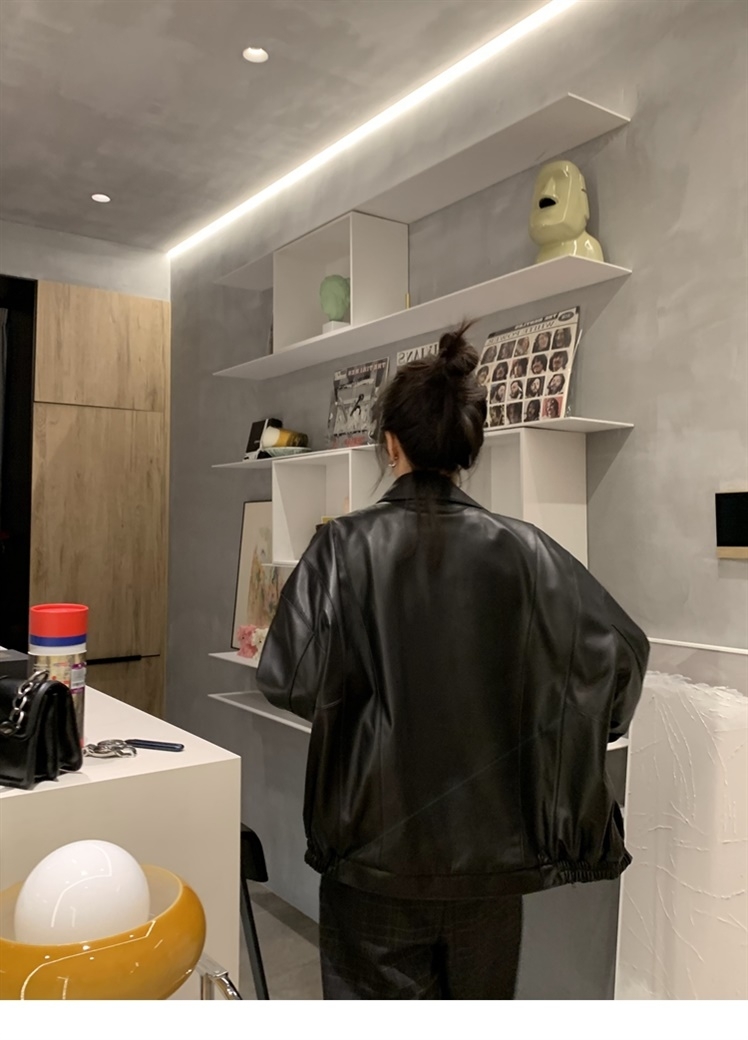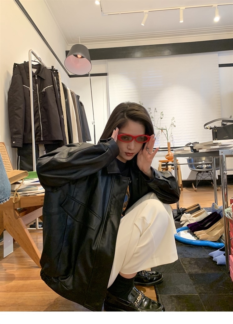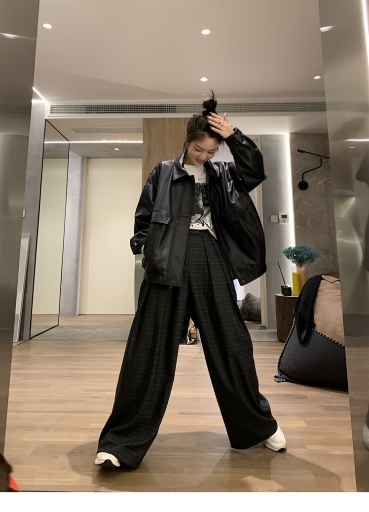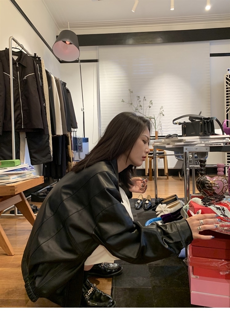 秋冬加絨港風復古休閒寬松廓形酷帥潮黑色拉鍊機車皮衣夾克外套女