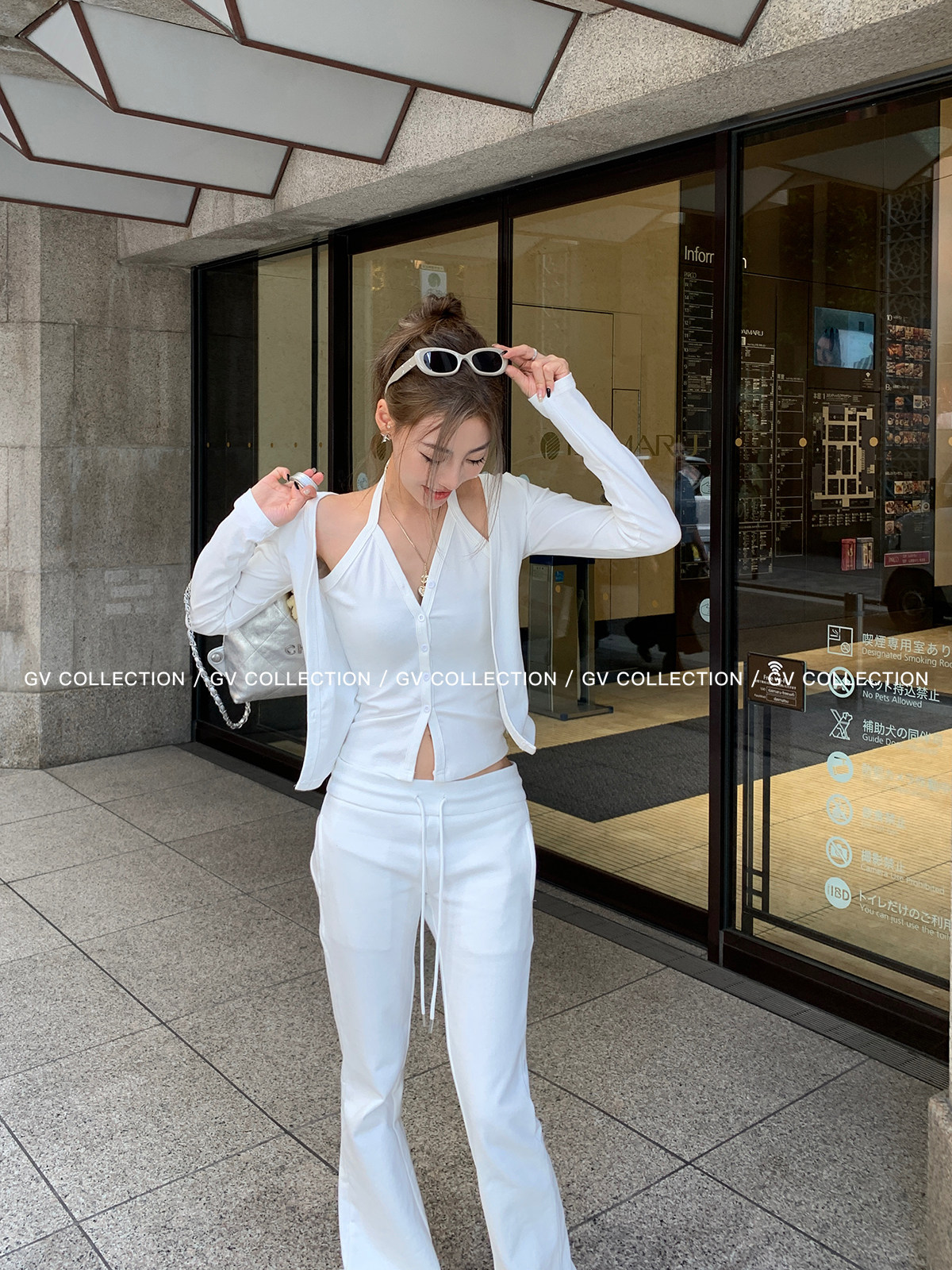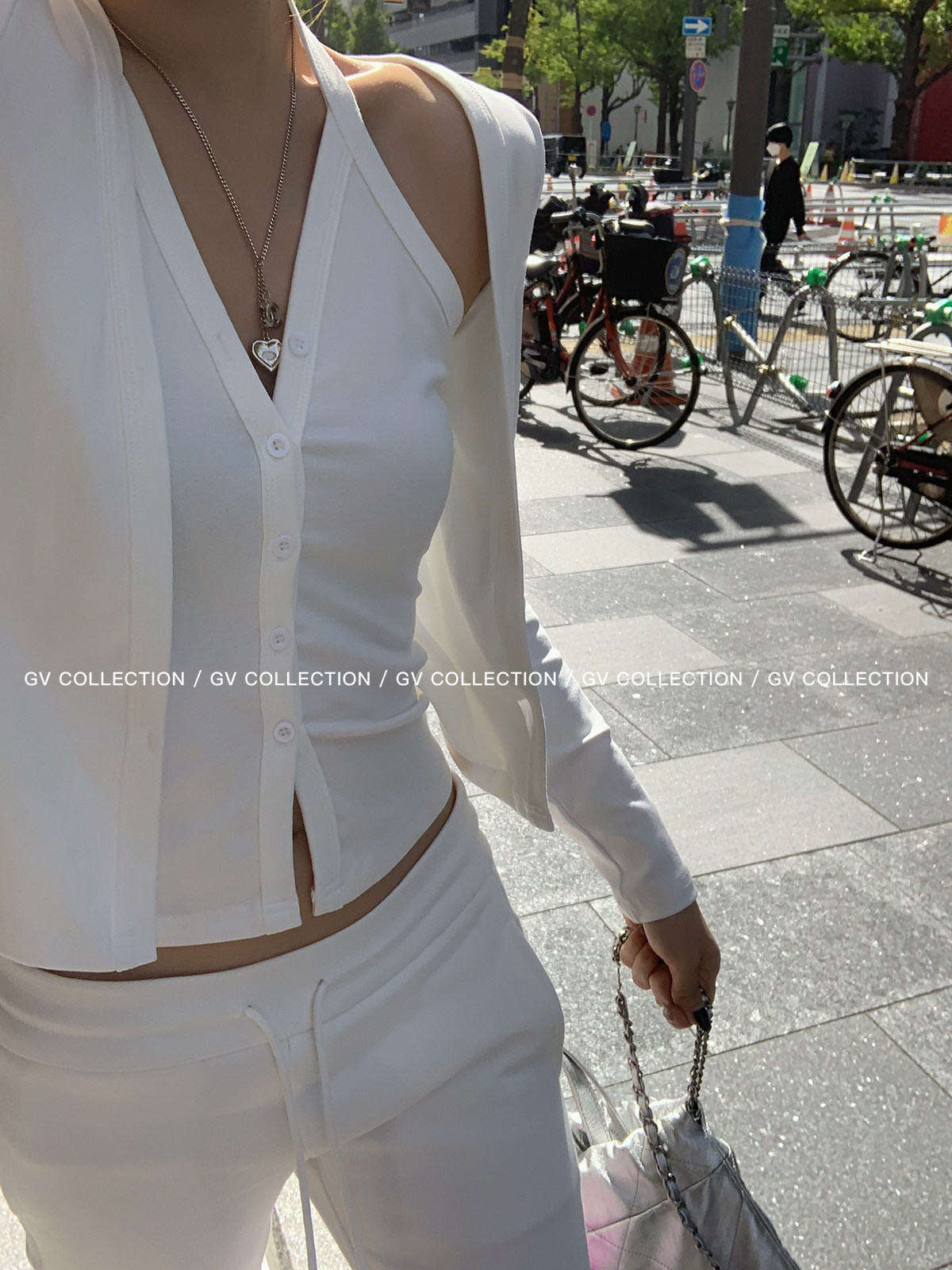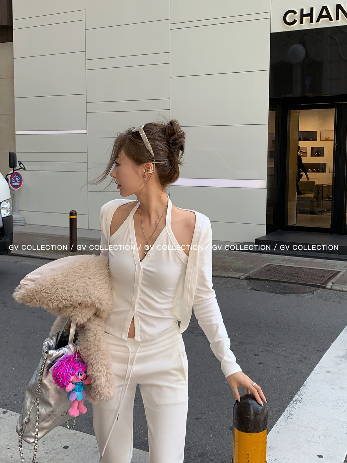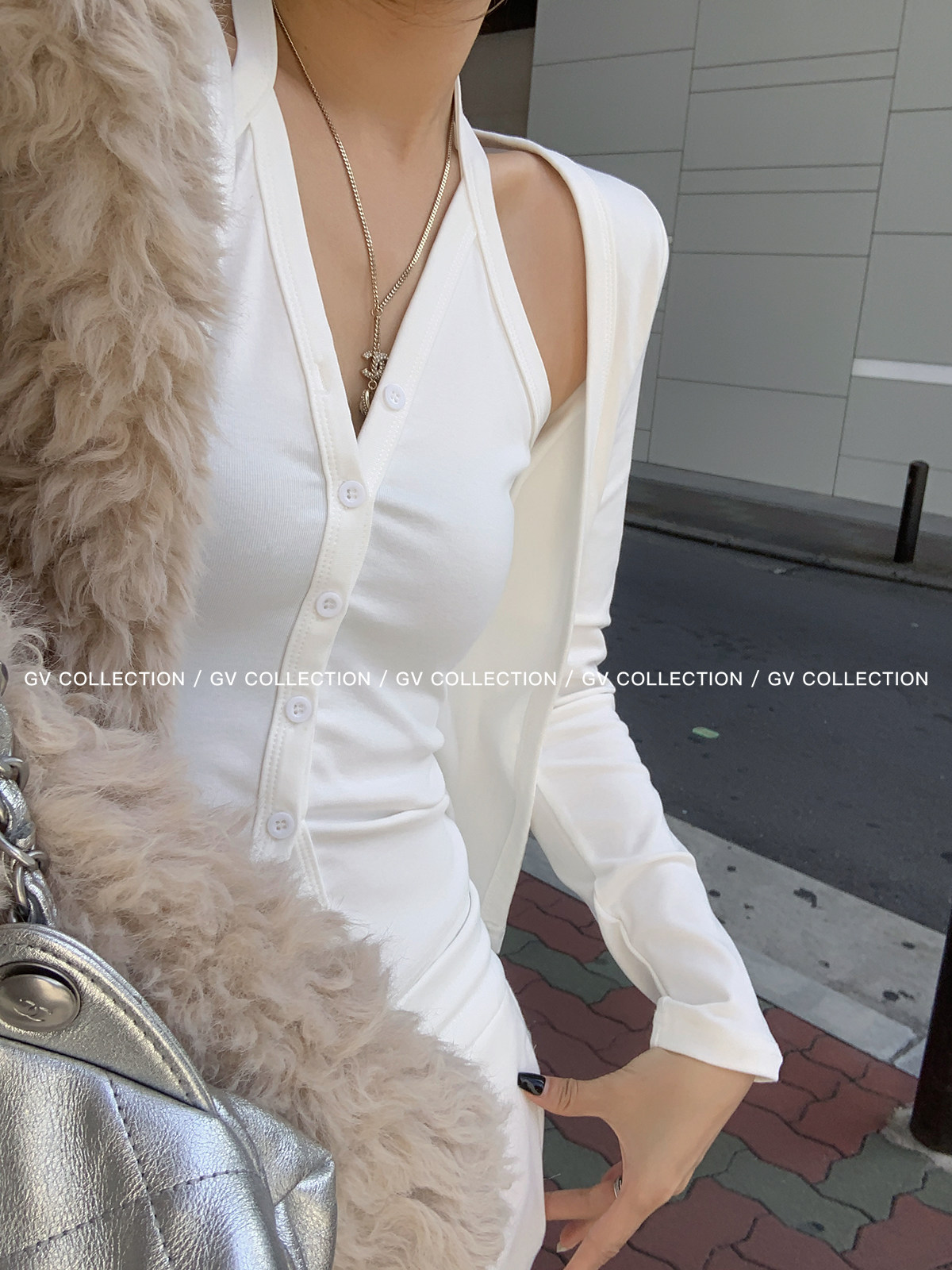 GV大白哥 Bi入!簡約心機 假兩件吊帶掛脖上衣性感小衆修身開衫女
