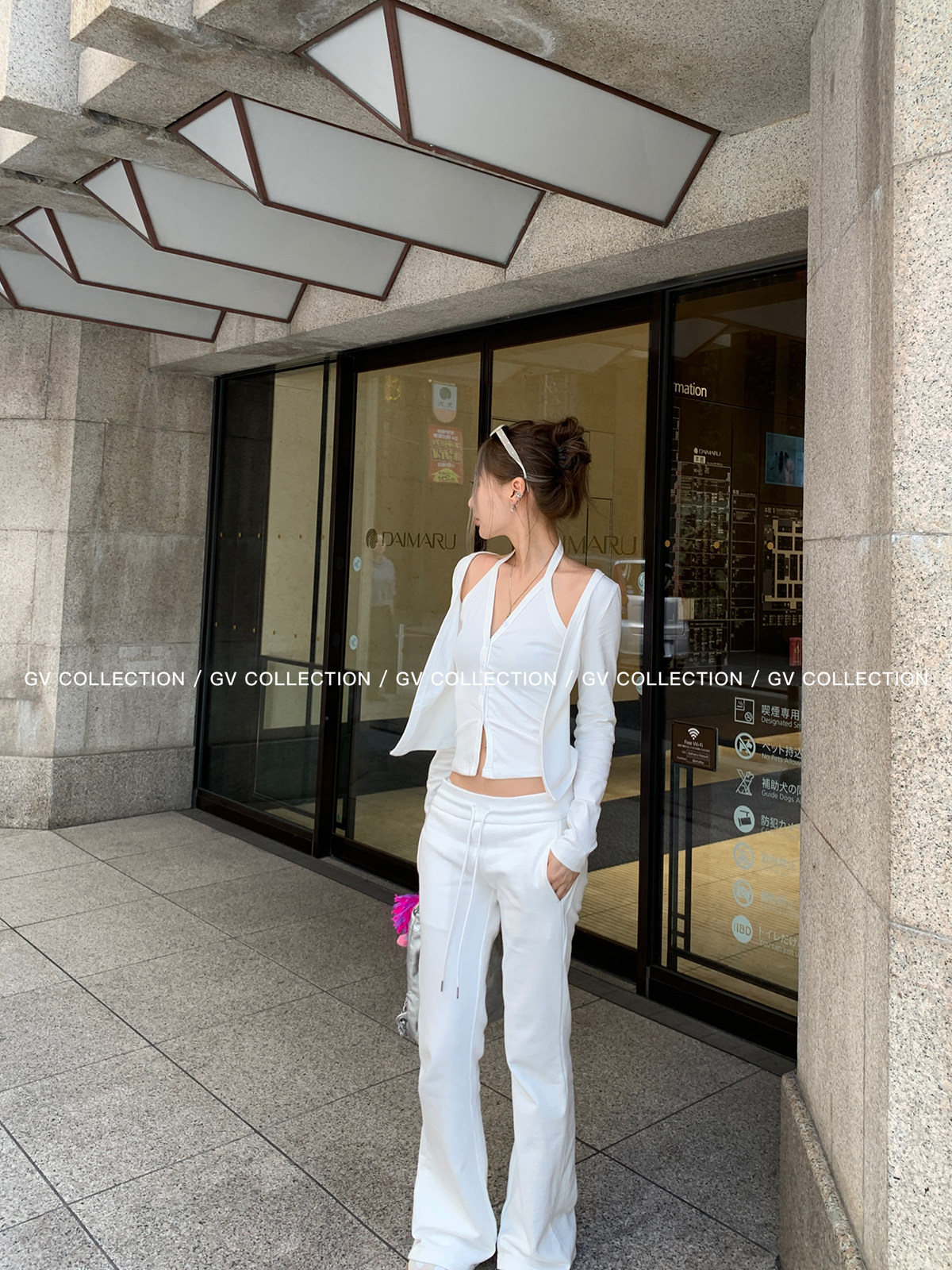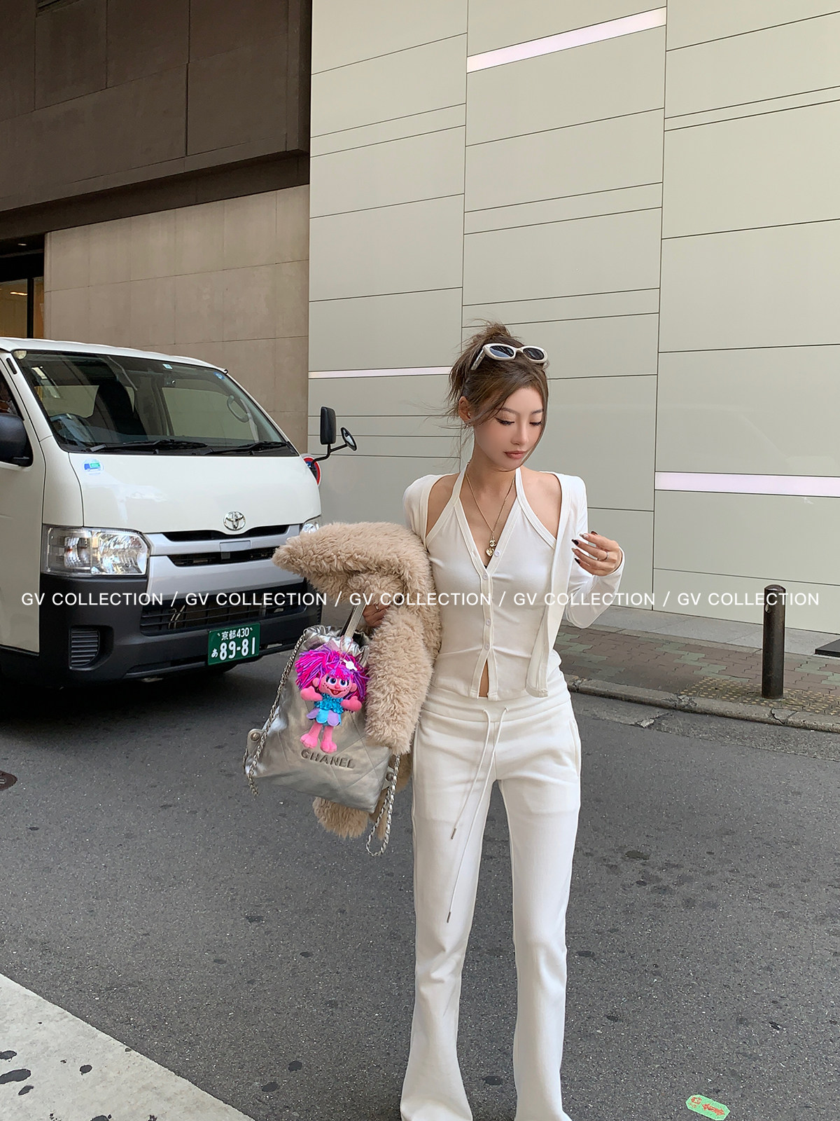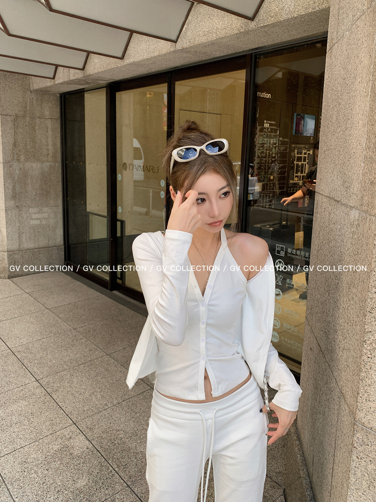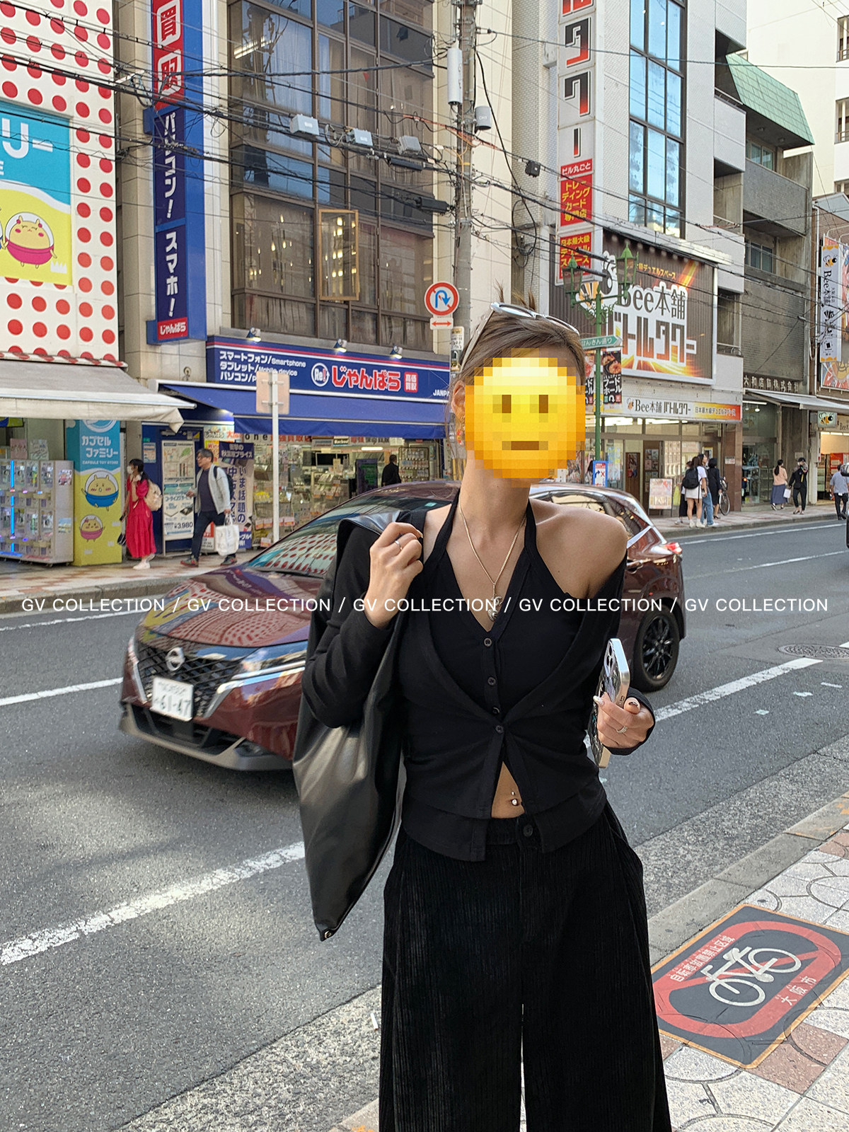 GV大白哥 Bi入!簡約心機 假兩件吊帶掛脖上衣性感小衆修身開衫女