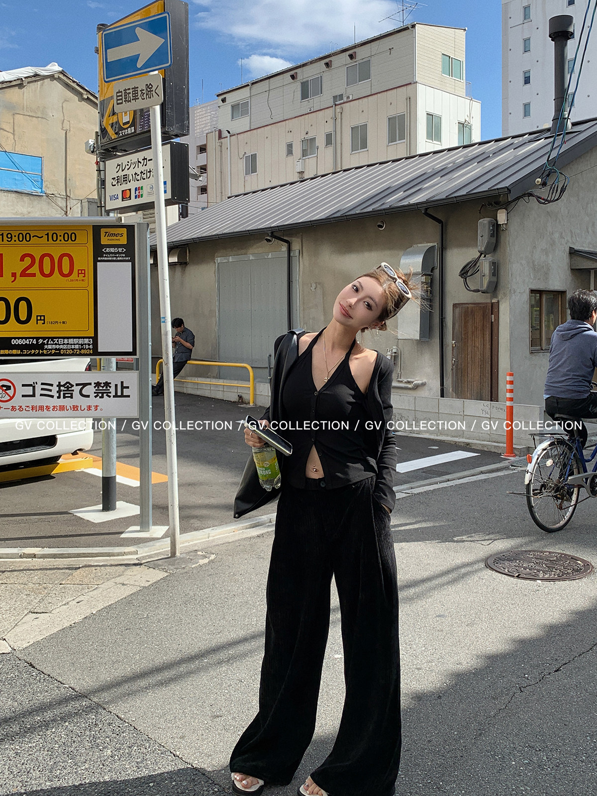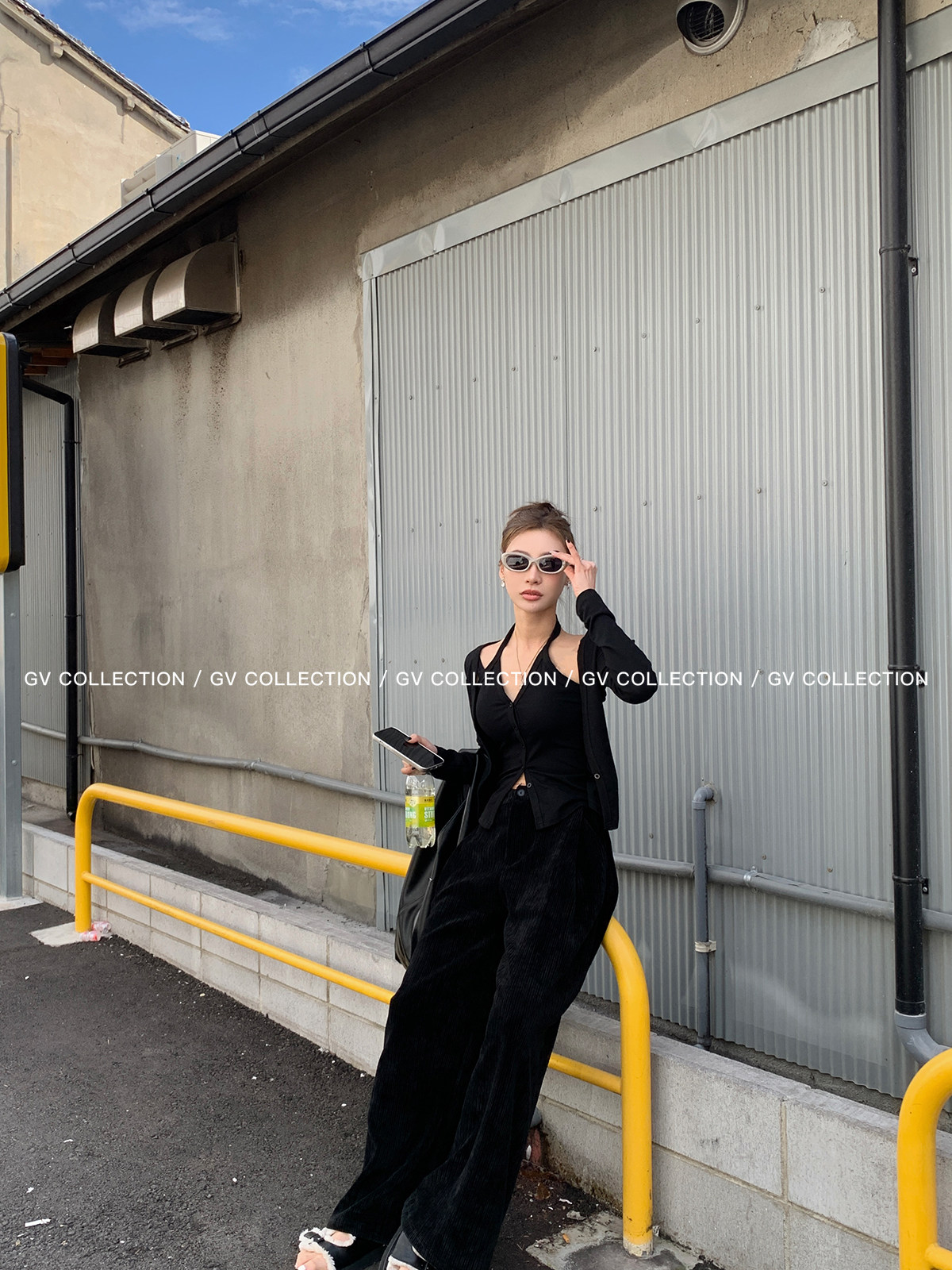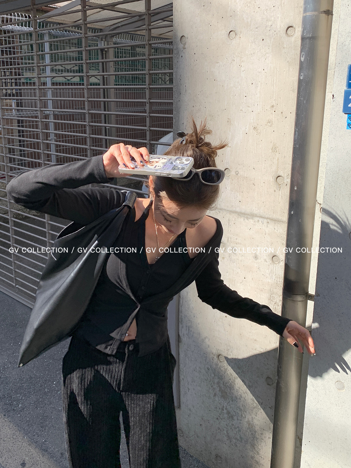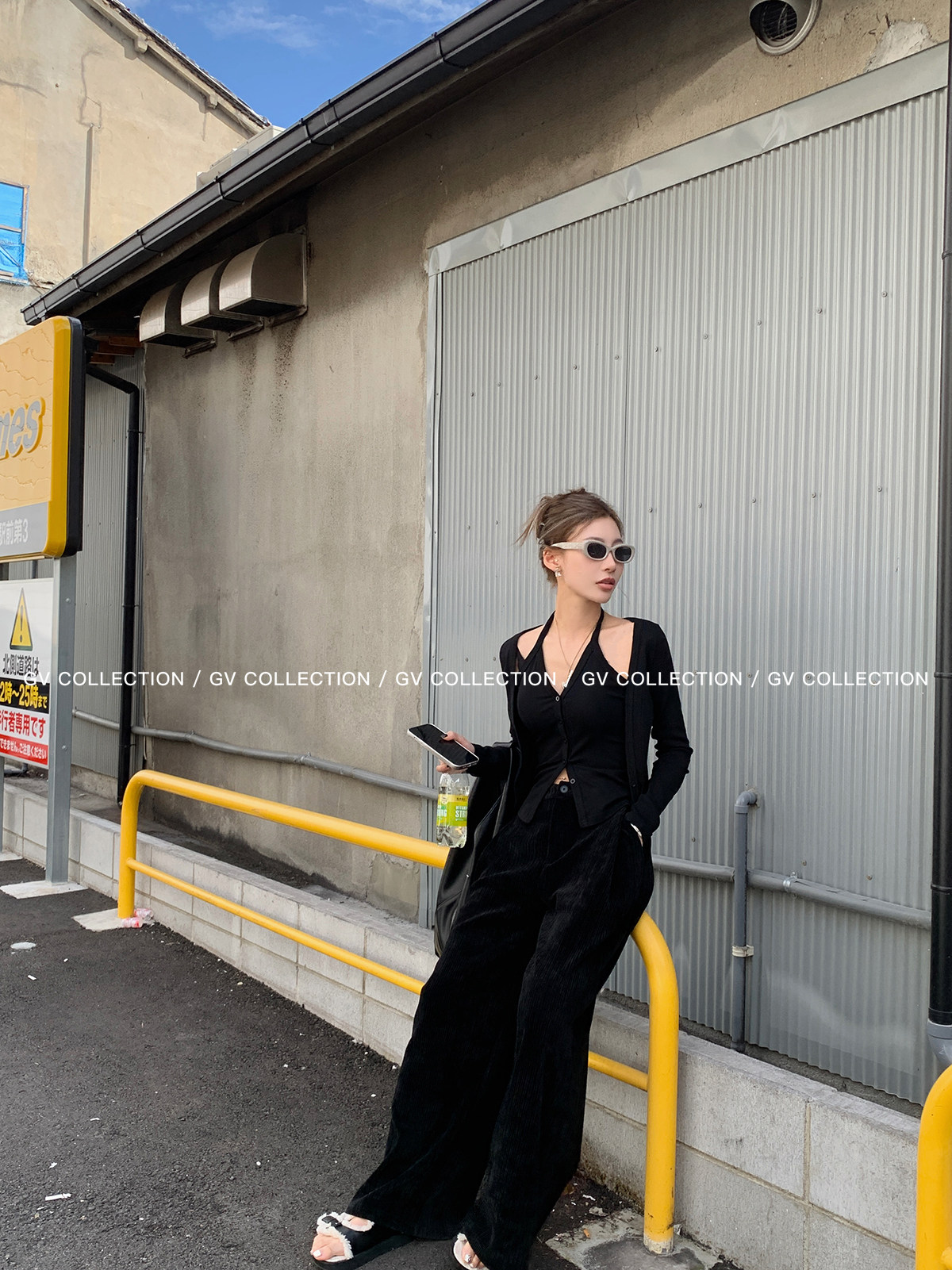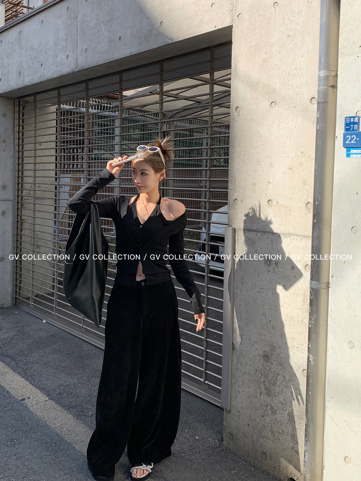 GV大白哥 Bi入!簡約心機 假兩件吊帶掛脖上衣性感小衆修身開衫女