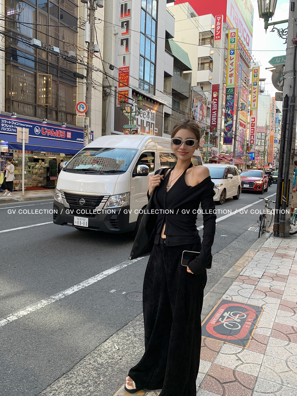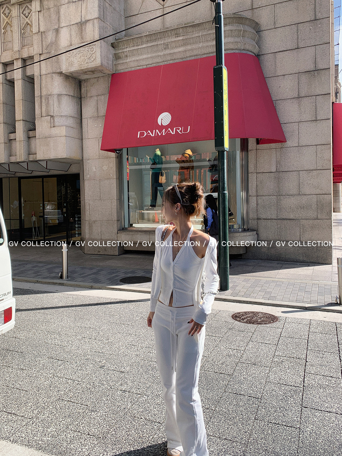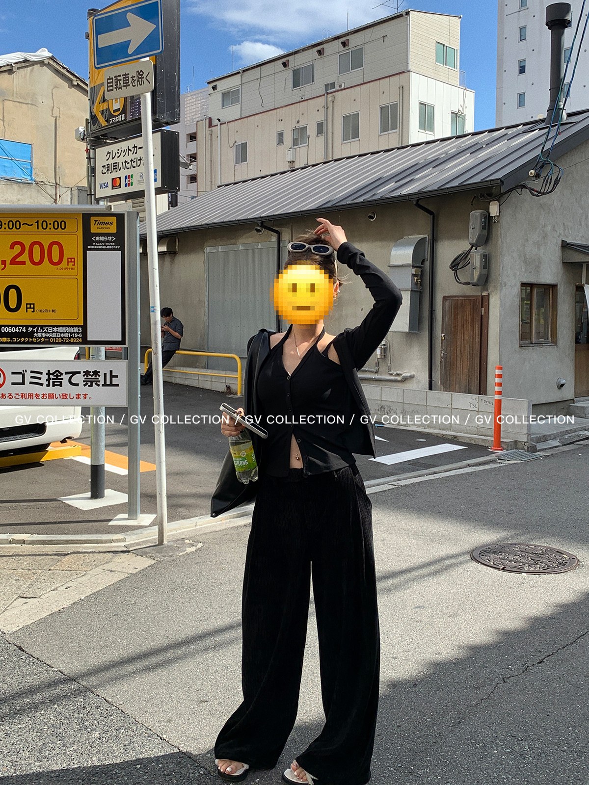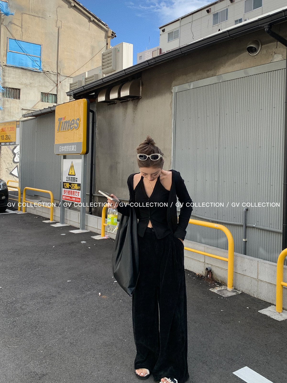 GV大白哥 Bi入!簡約心機 假兩件吊帶掛脖上衣性感小衆修身開衫女