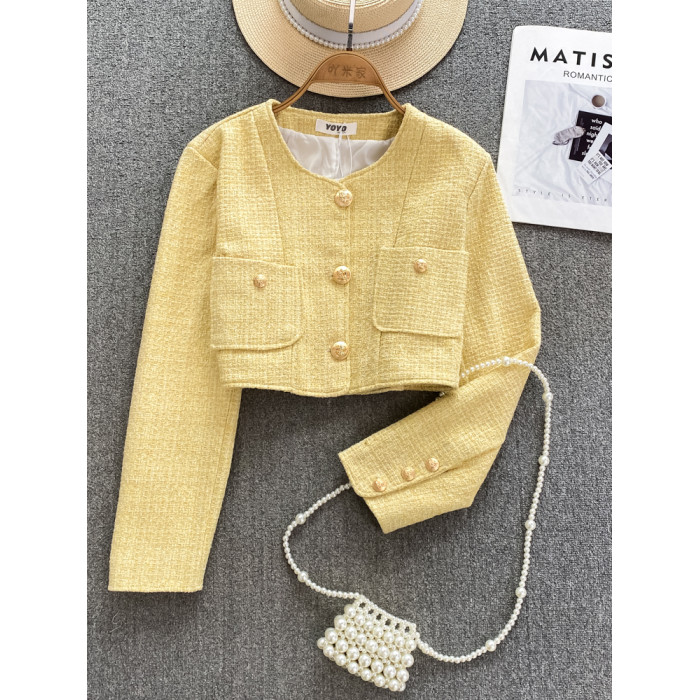 小香風金屬釦粗花呢外套女春秋季新款時尚氣質名媛短款高級感上衣
