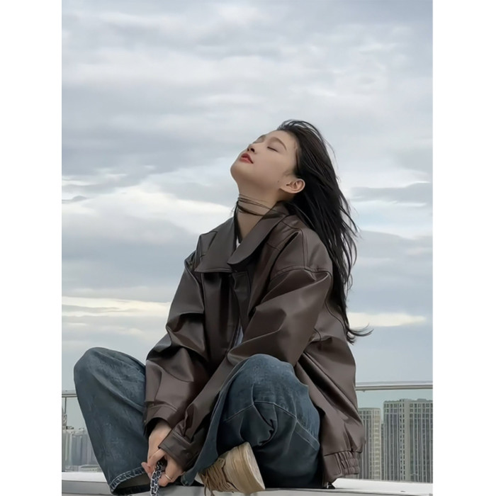 美拉德短款機車皮衣外套女2025年新款春秋季棕色高級感小個子夾克