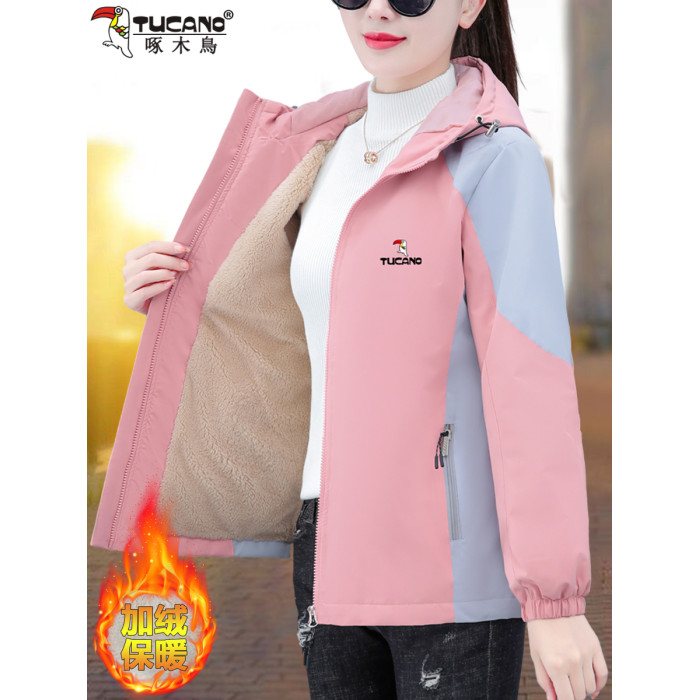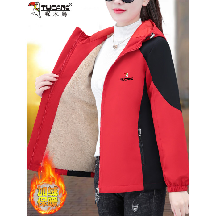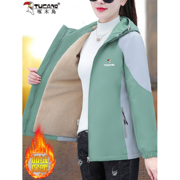 啄木鳥加絨沖鋒衣外套女士2025秋冬新款中年媽媽休閒百搭夾克上衣