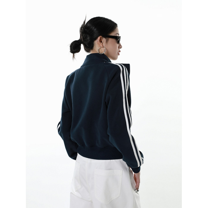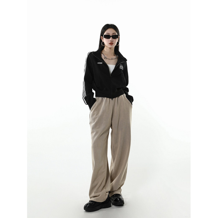 ICH MODE 美式修身短款黑色外套女2026新款春季運動連帽衛衣開衫