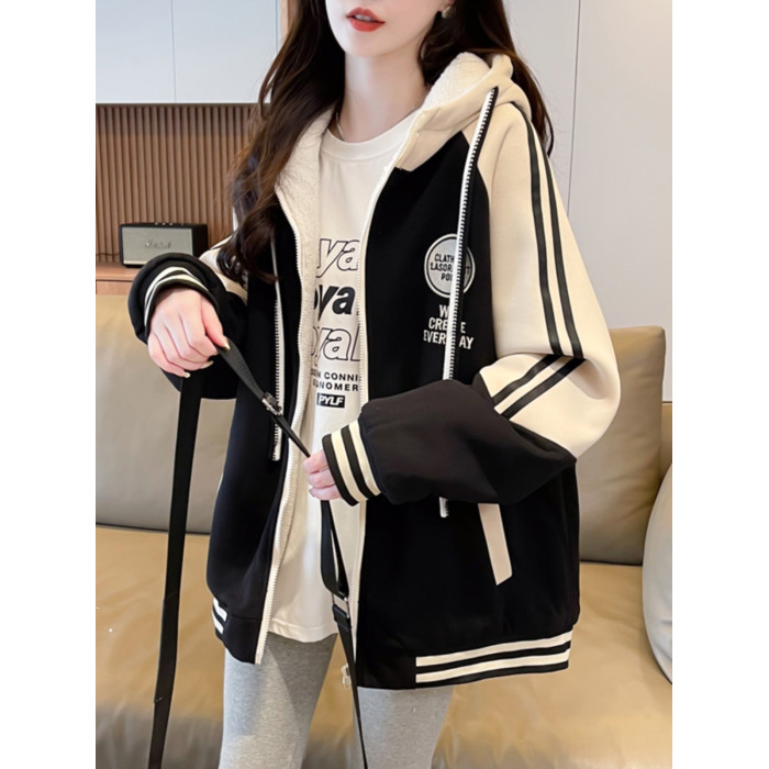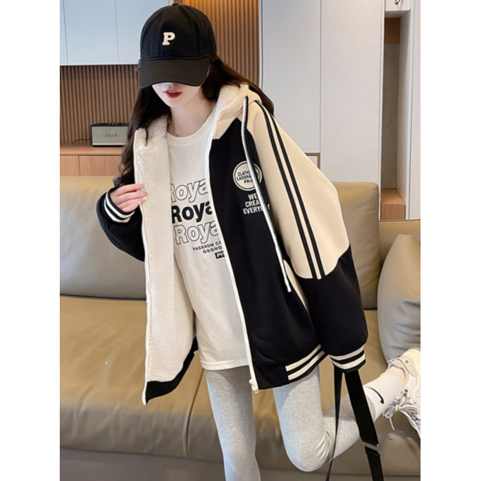 羊羔毛棒球服女春秋冬季加絨加厚外套2025新款初高中學生大童夾克